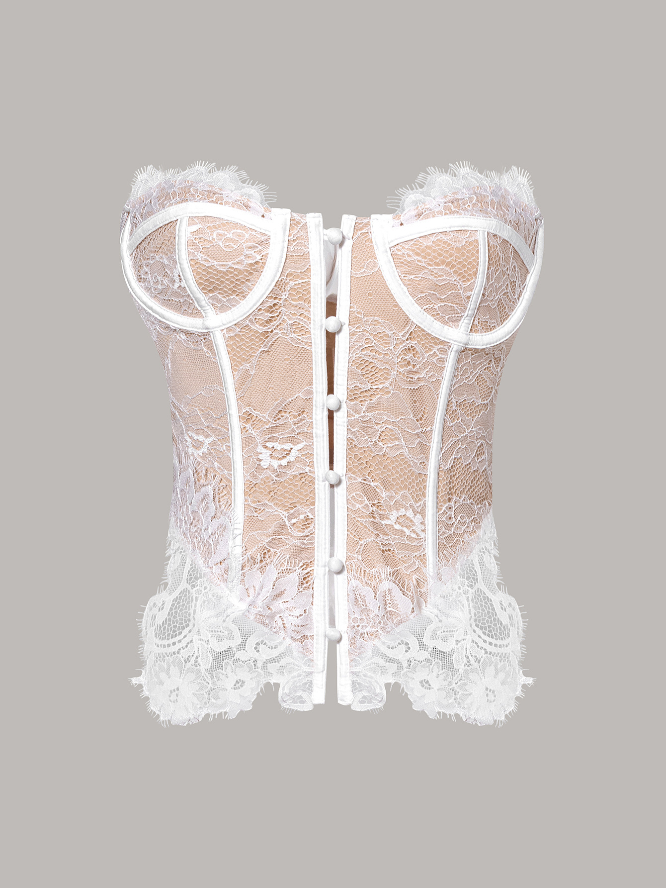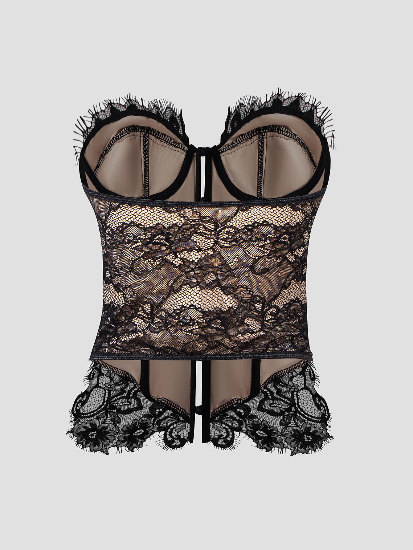 FREEDOMBEAUTY | Cross-border European and American lace hollow back sling vest women's summer low-cut fish bone thin sexy top tube top bundle