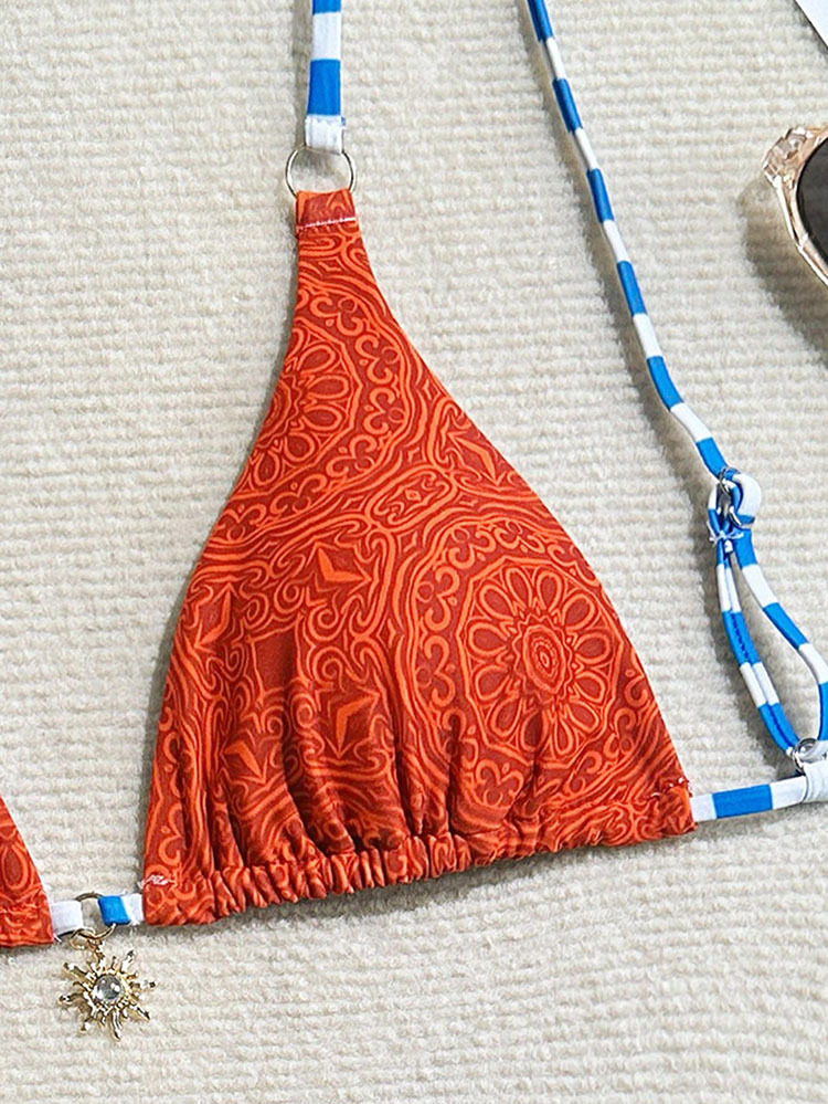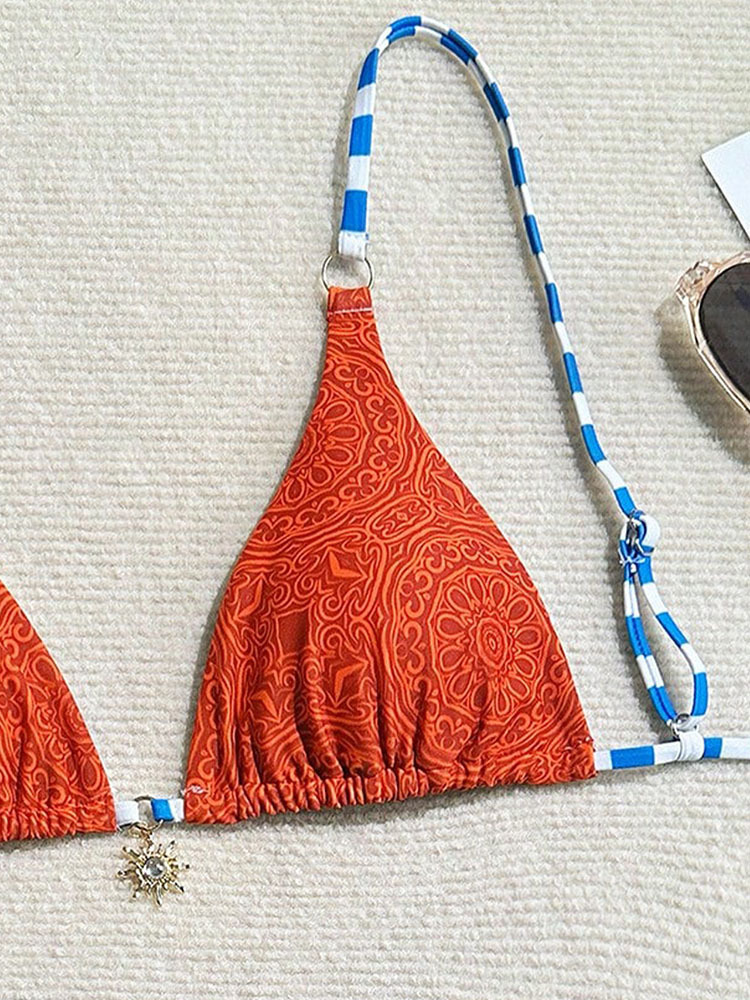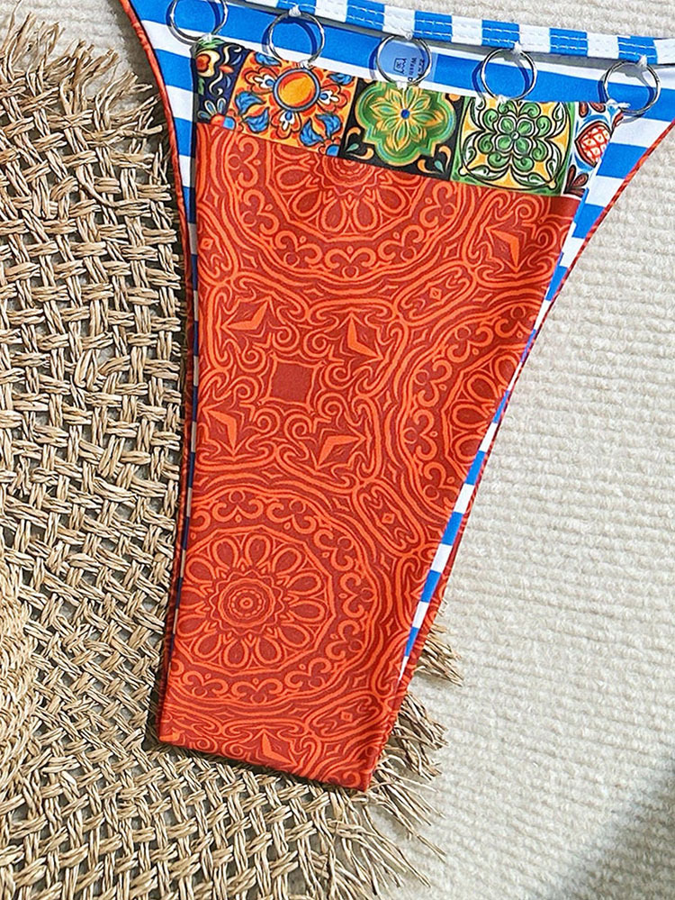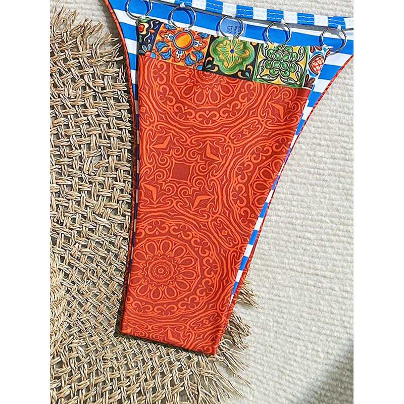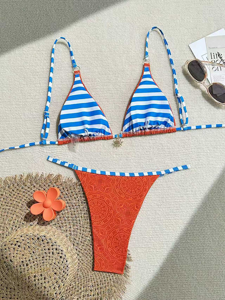 FREEDOMBEAUTY | 2025 new European and American color matching split swimsuit women's sexy lace-up bikini beach hot spring swimsuit