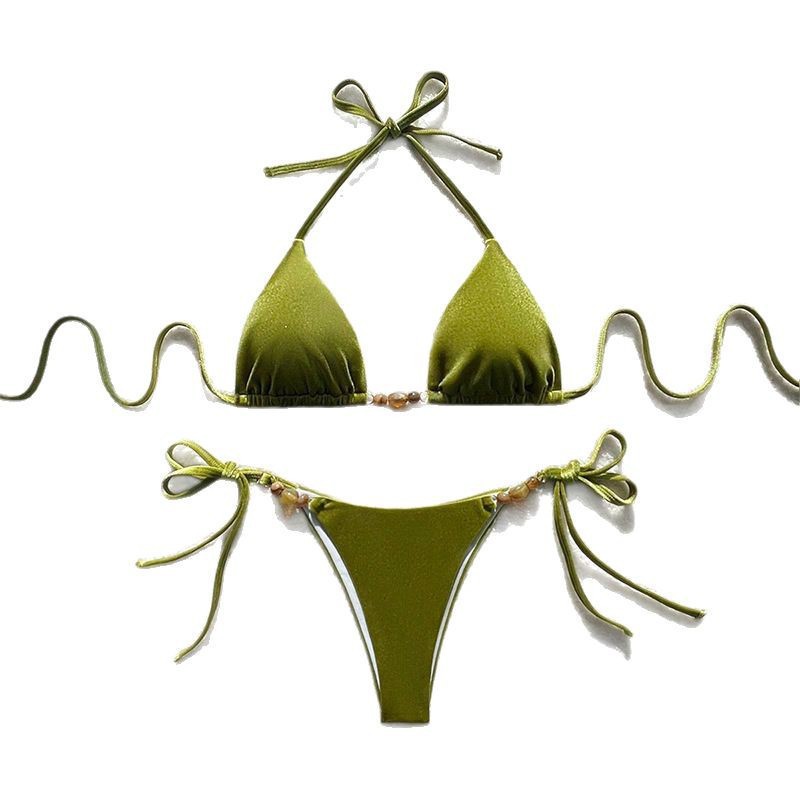 FREEDOMBEAUTY | 2025 new European and American solid color bikini strap-up three-point sexy beach hot spring swimsuit bikini