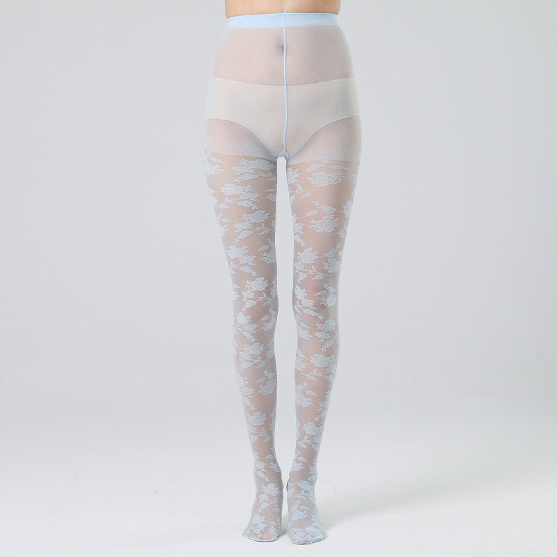 FREEDOMBEAUTY | 3d roses black stockings jacquard net stockings hollow fishnet stockings women's thin pantyhose shaping high elastic shaping