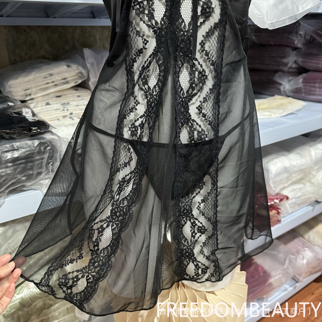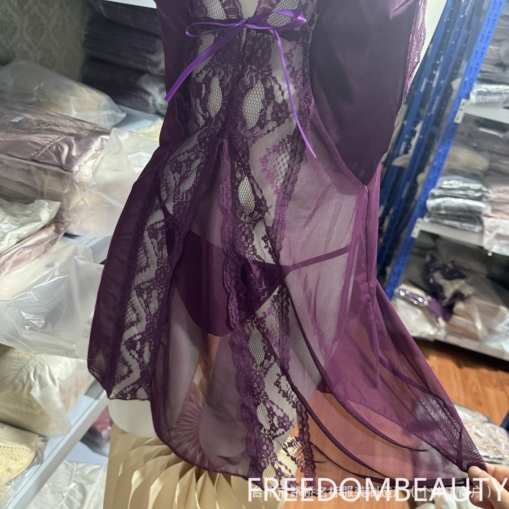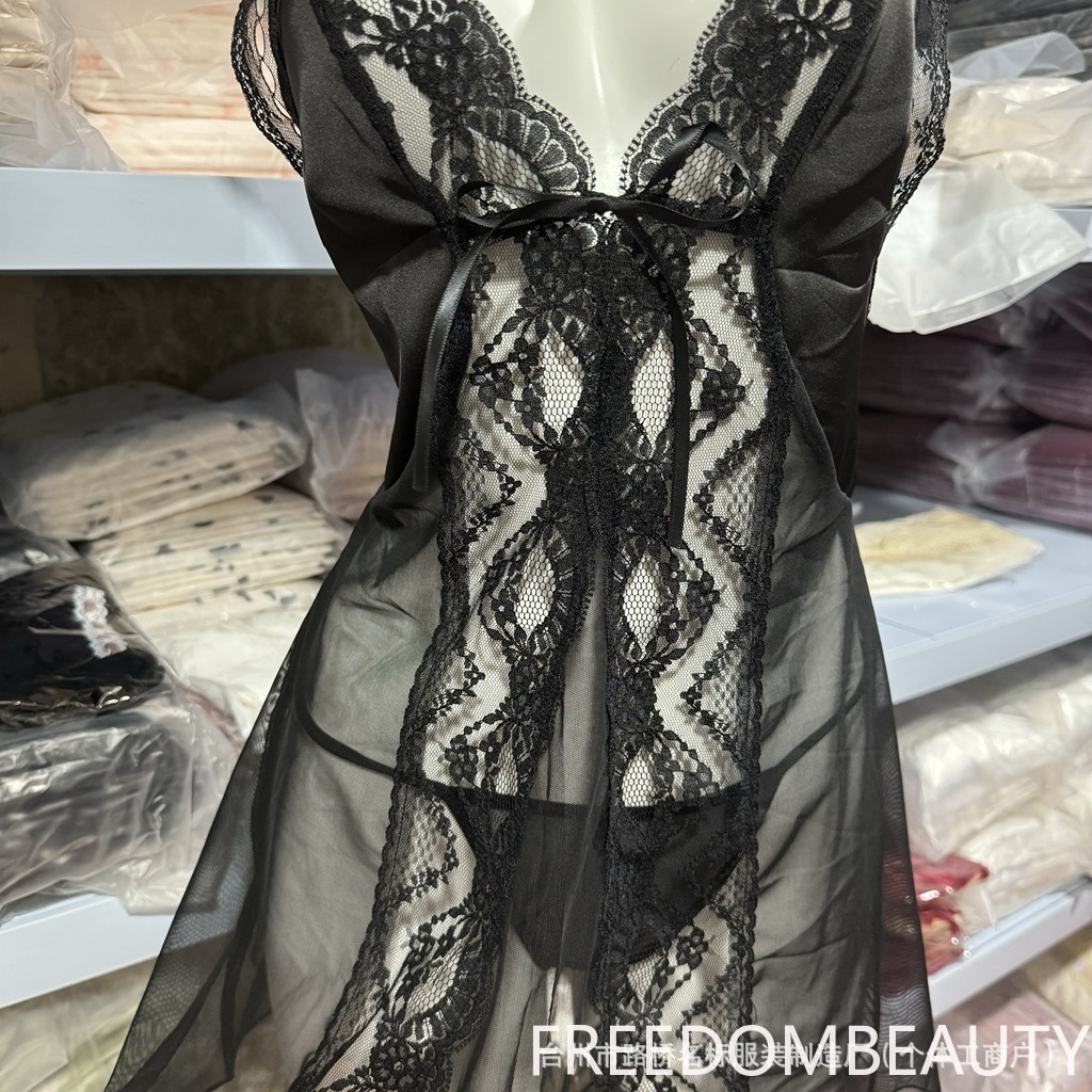 FREEDOMBEAUTY | 5096 Home Lingerie Sexy Lace Perspective Pajamas Midnight Seduction Suspender Pajamas Bed Fun Free