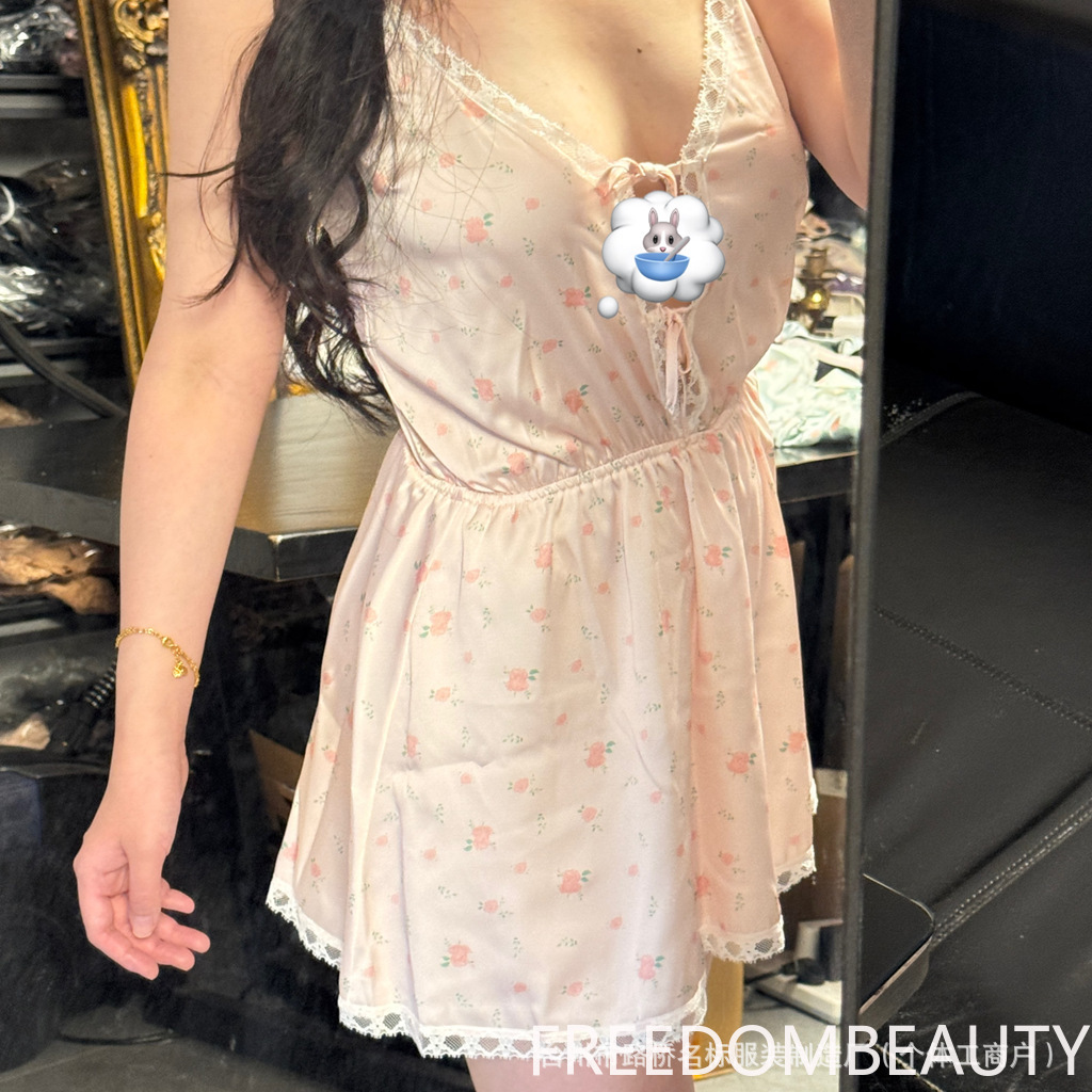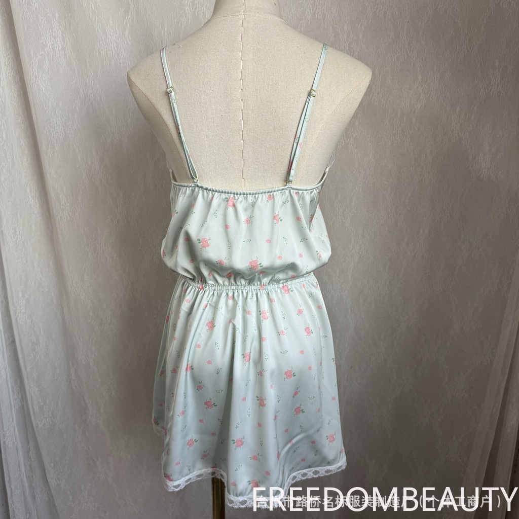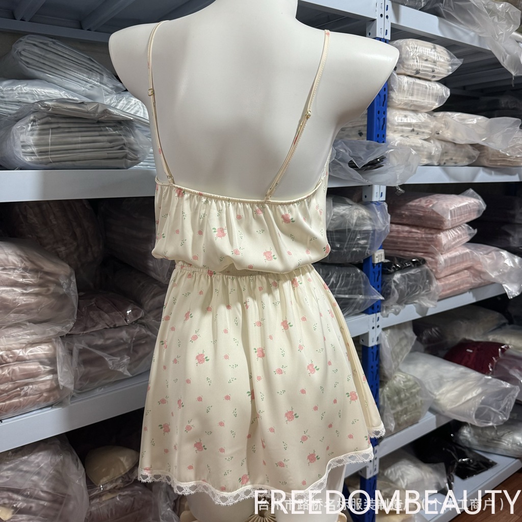 The chest pad can be removed, and the satin printed girly breath loungewear can be removed.