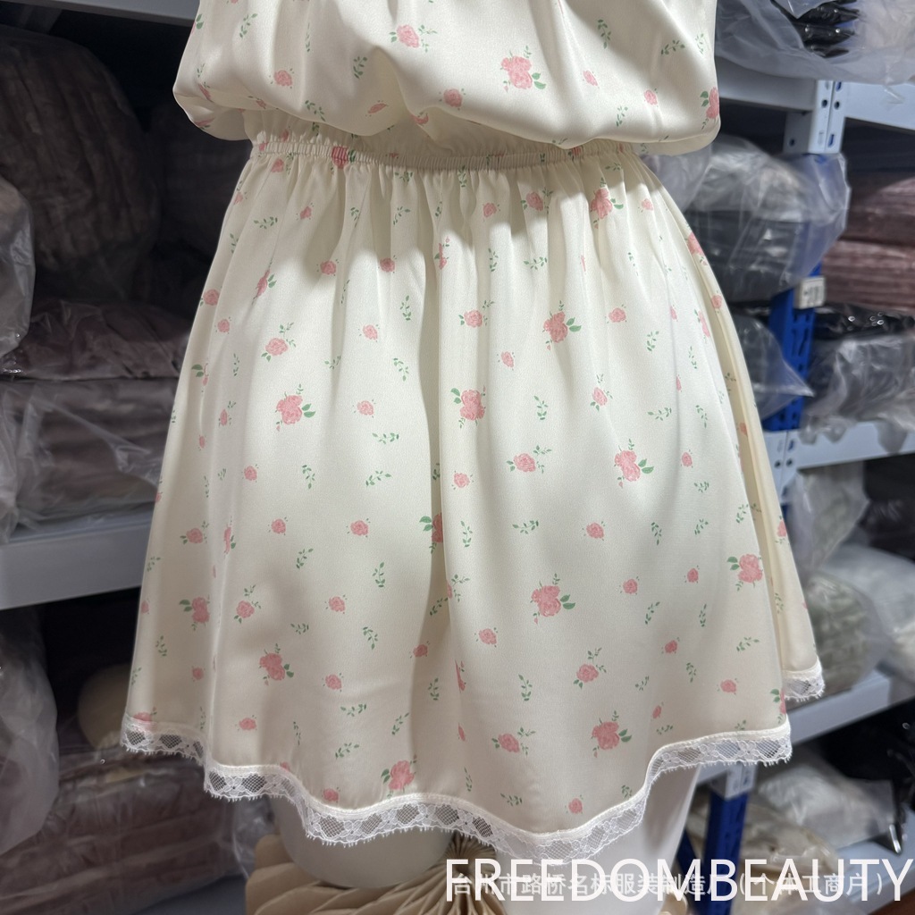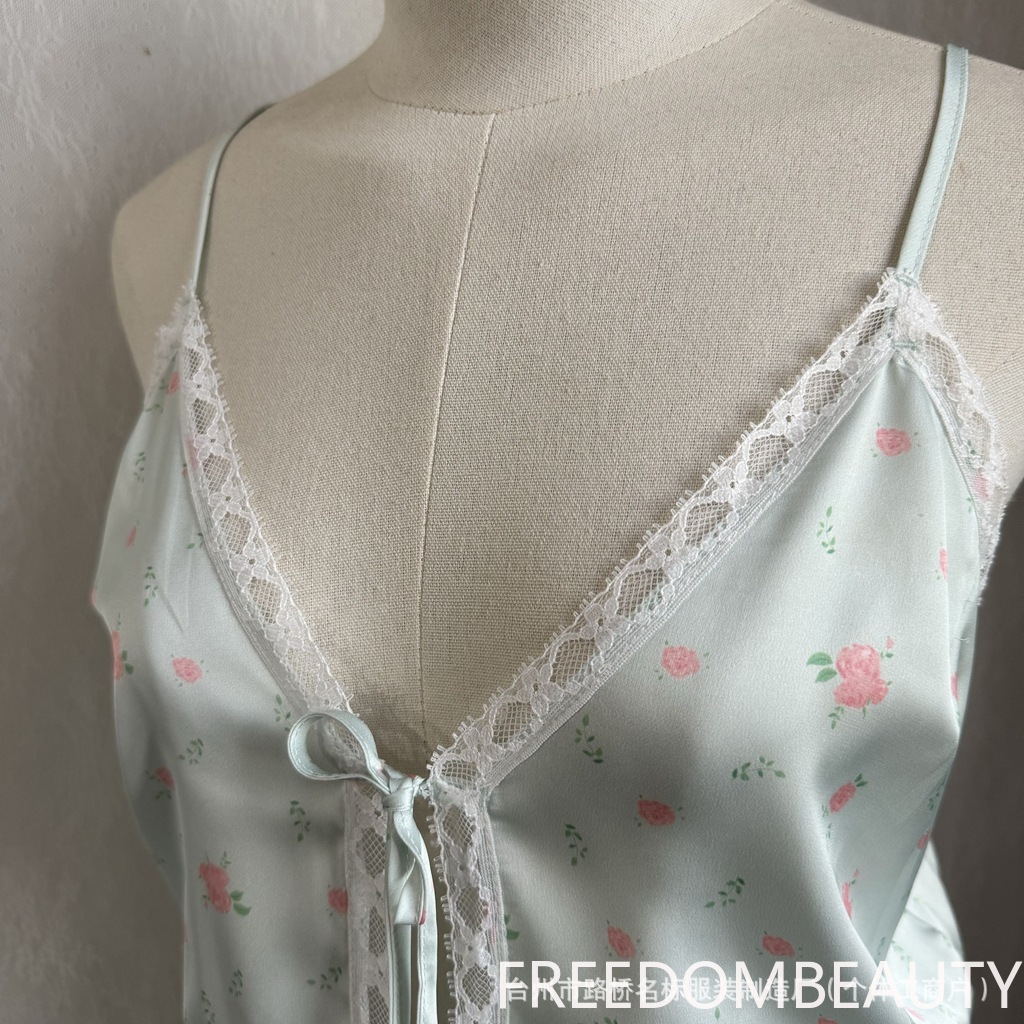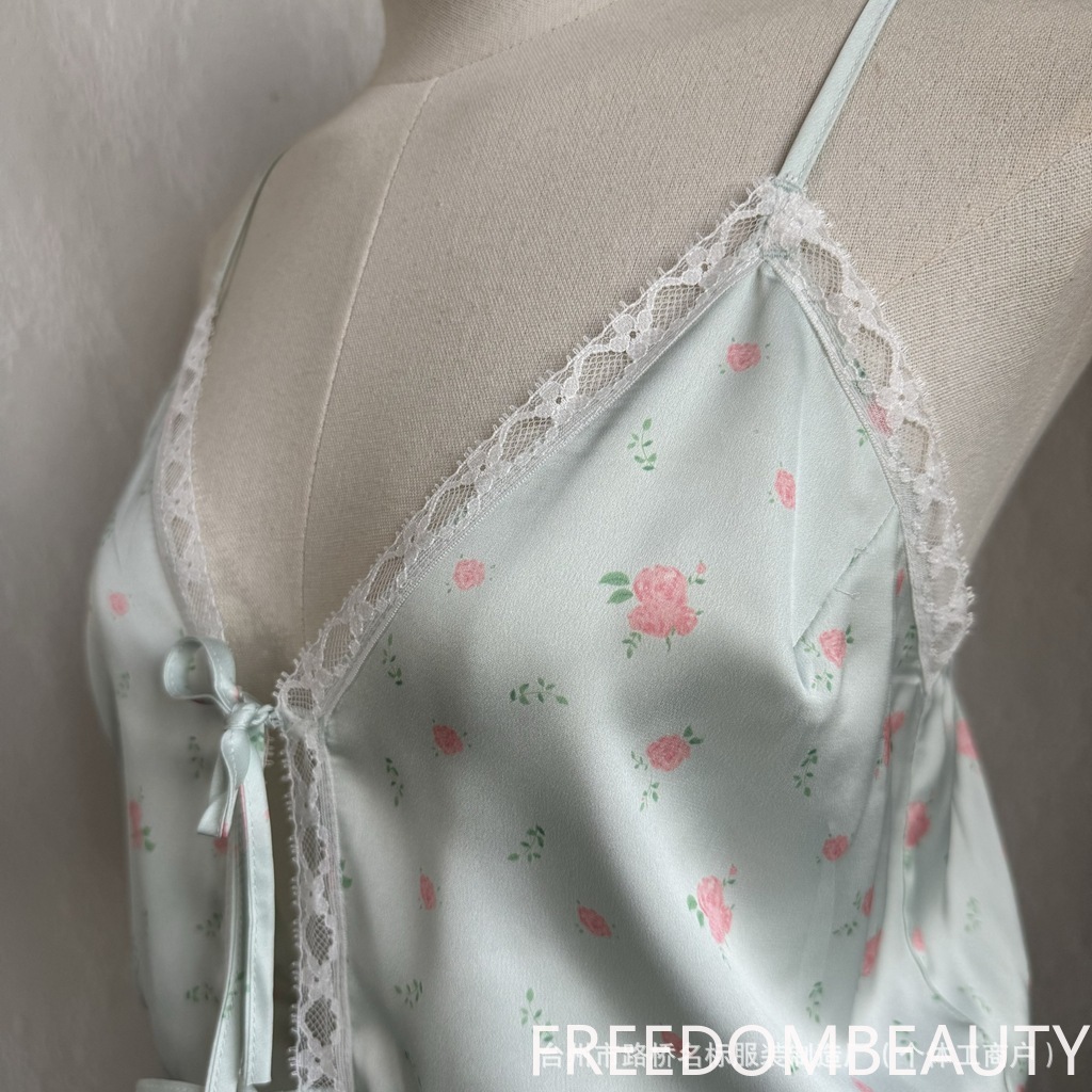 The chest pad can be removed, and the satin printed girly breath loungewear can be removed.