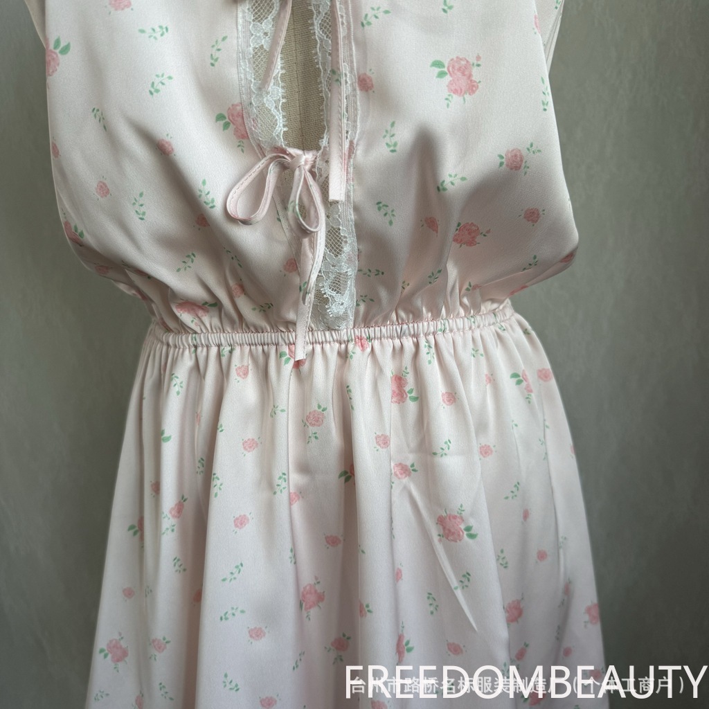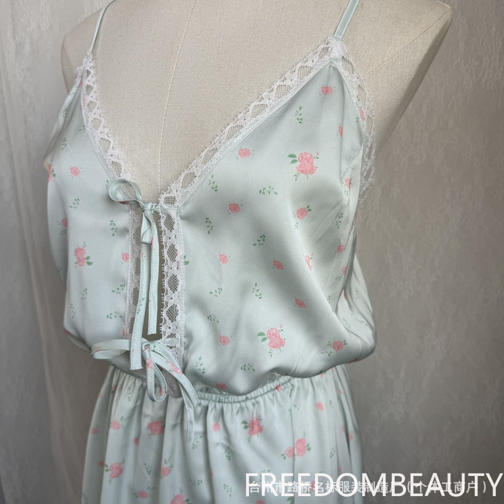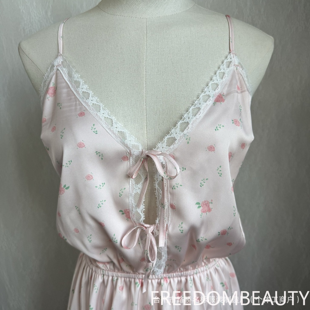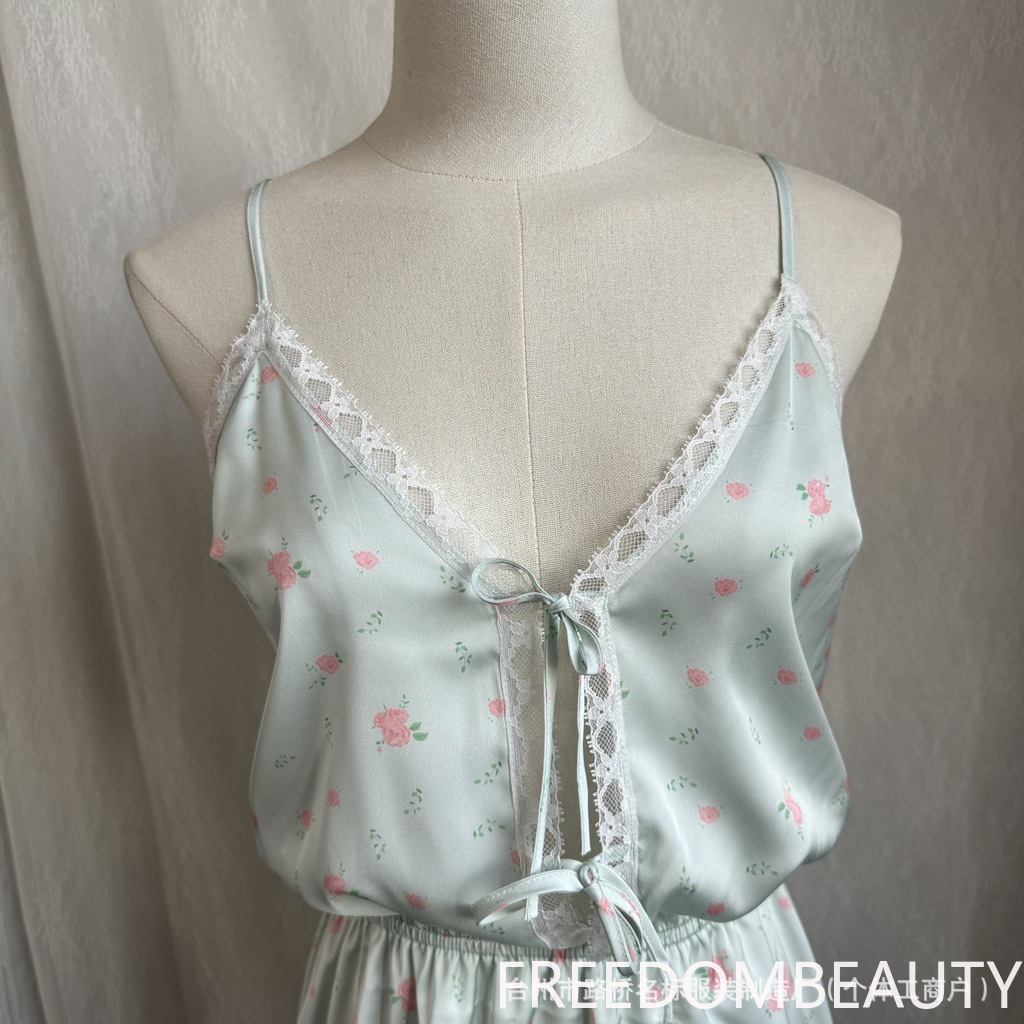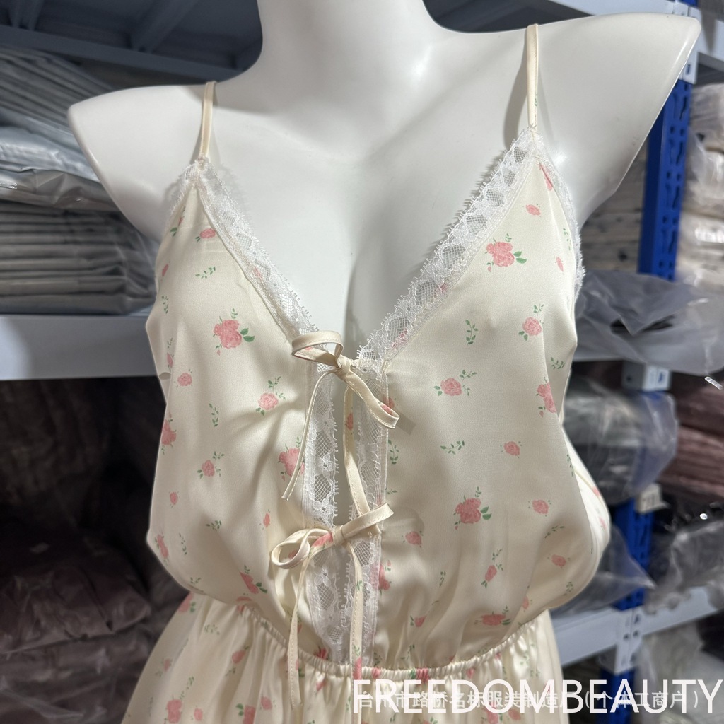 FREEDOMBEAUTY | 71060 Summer ice silk nightdress with chest pad thin ins wind floral lace edge cute pajamas loungewear Nana
