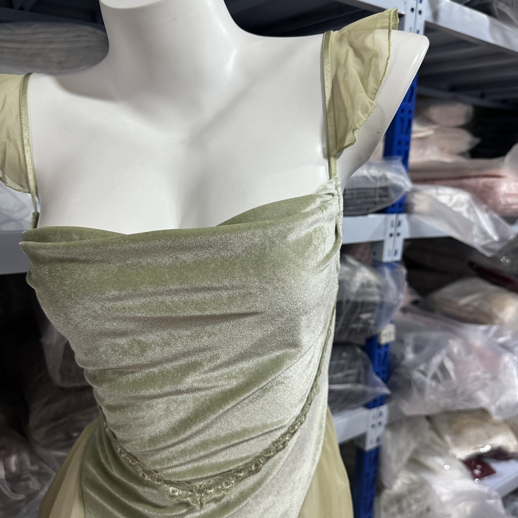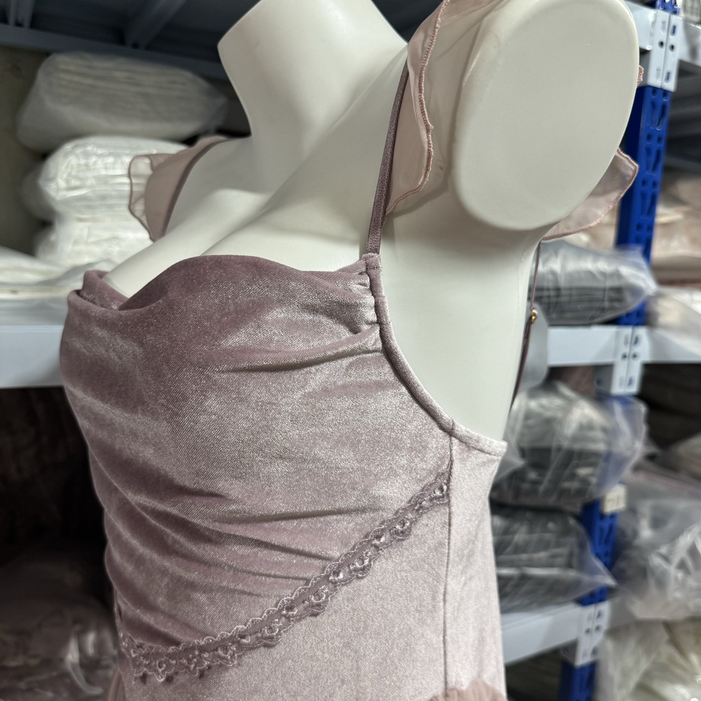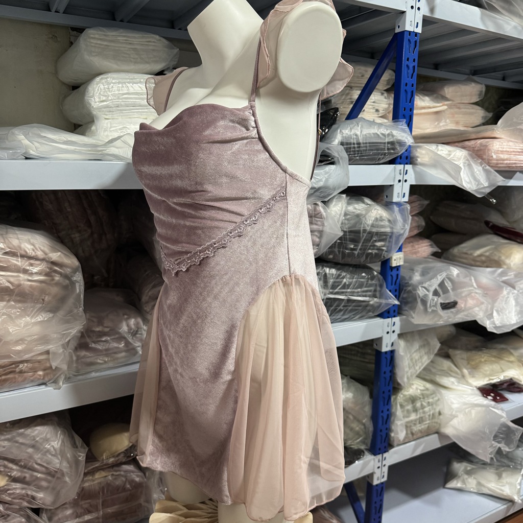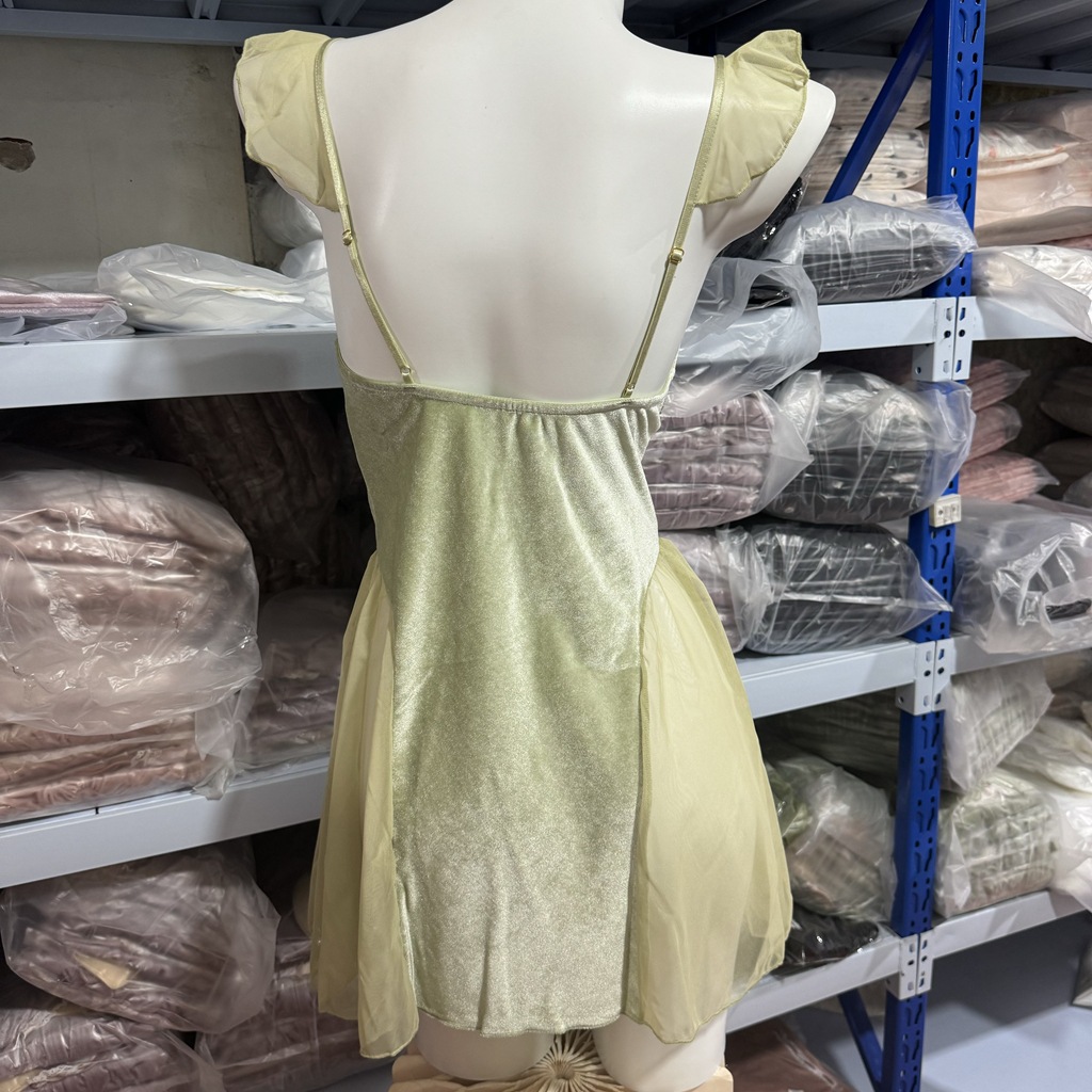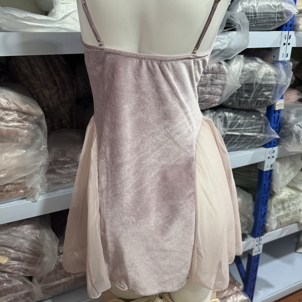 FREEDOMBEAUTY | 8012 New Sexy Women's Velvet Zhao Ruth Same Mesh Ribbon Dress Dress Pajamas