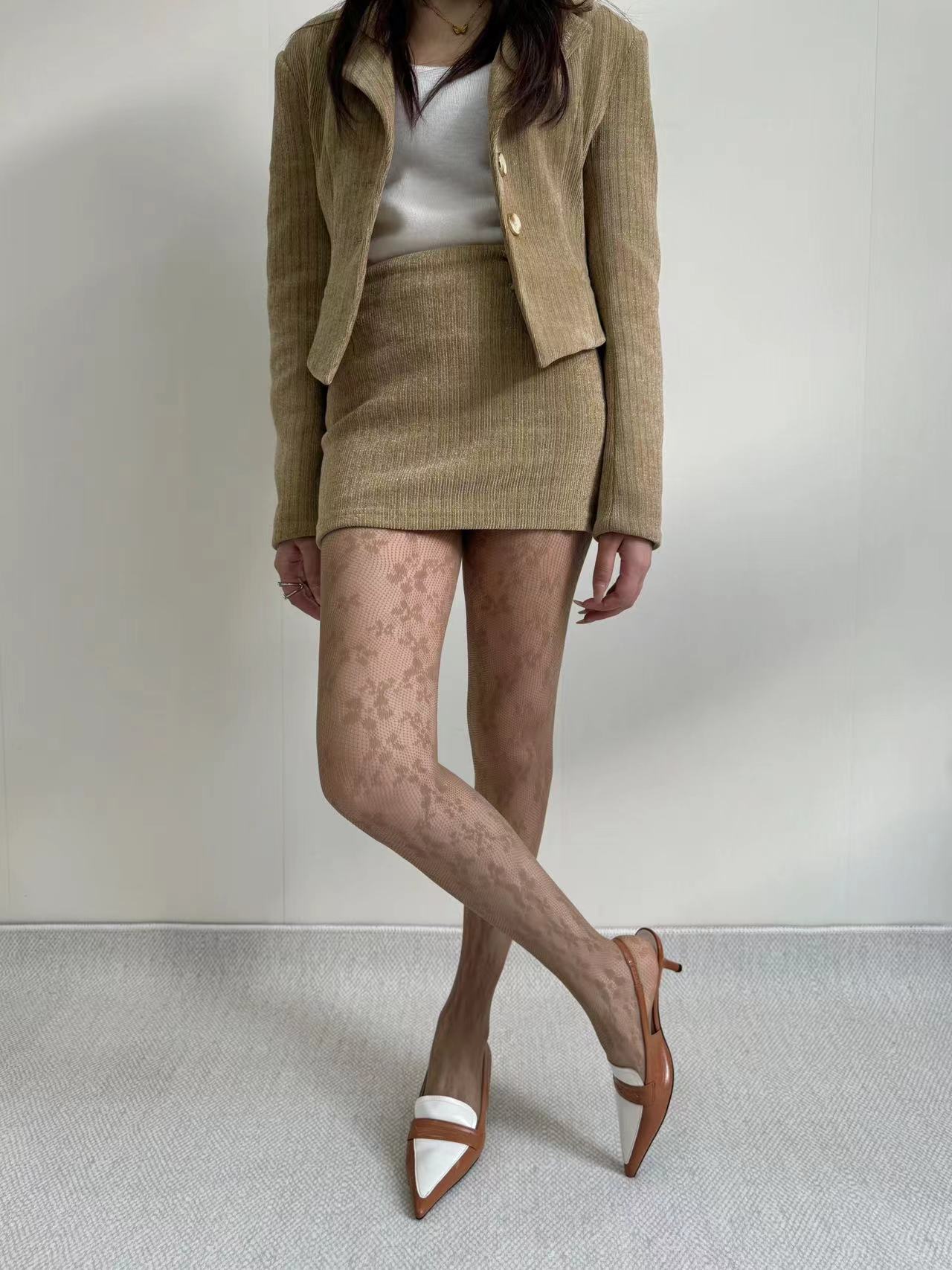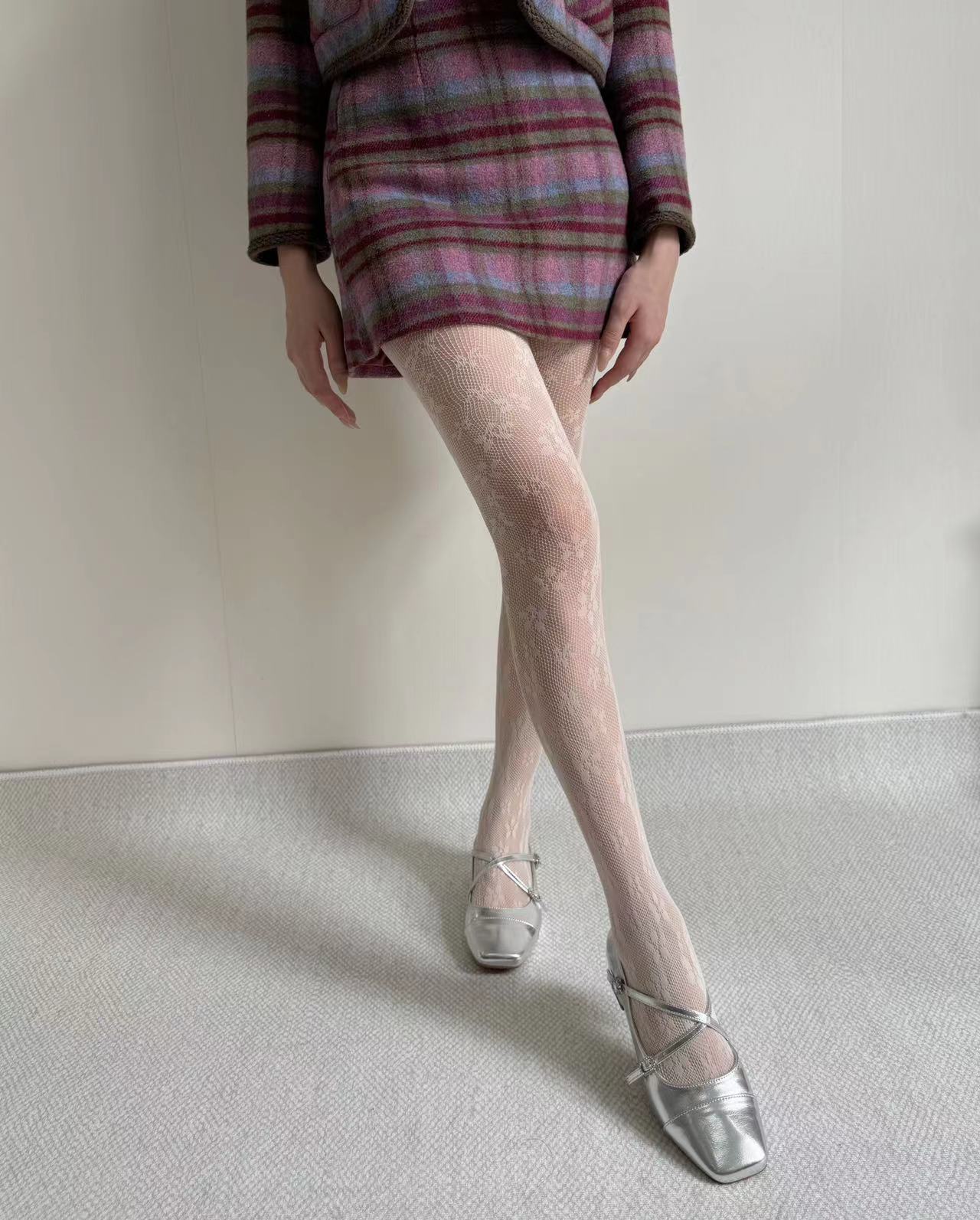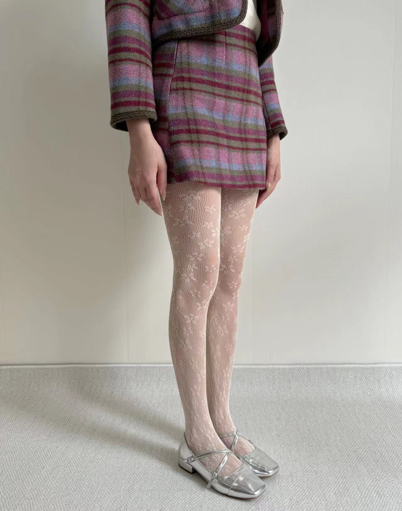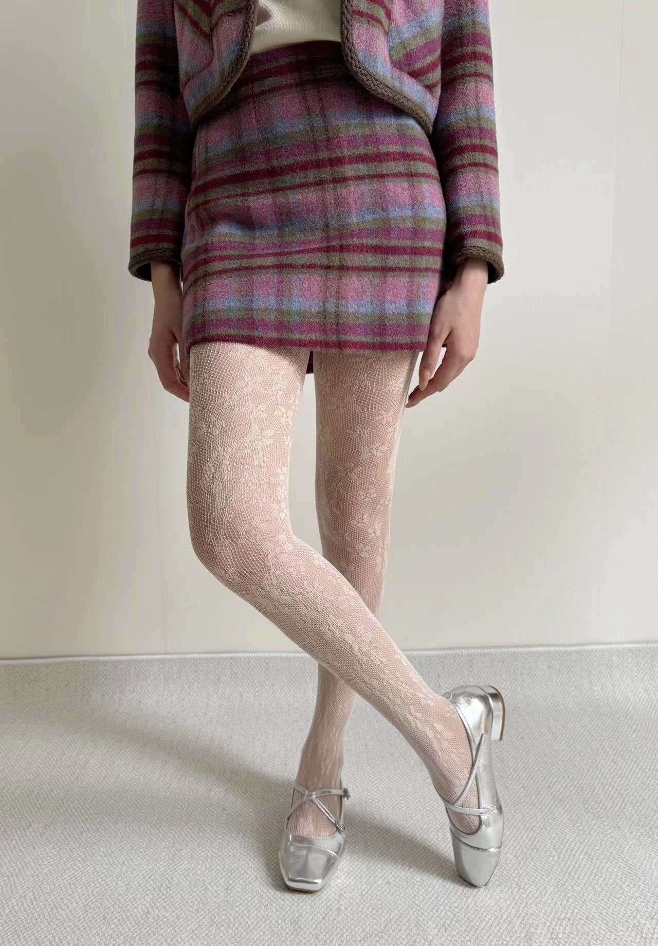 FREEDOMBEAUTY | Autumn and winter fishing net socks Japanese retro small flower jacquard coffee color anti-hook primer pantyhose stockings women