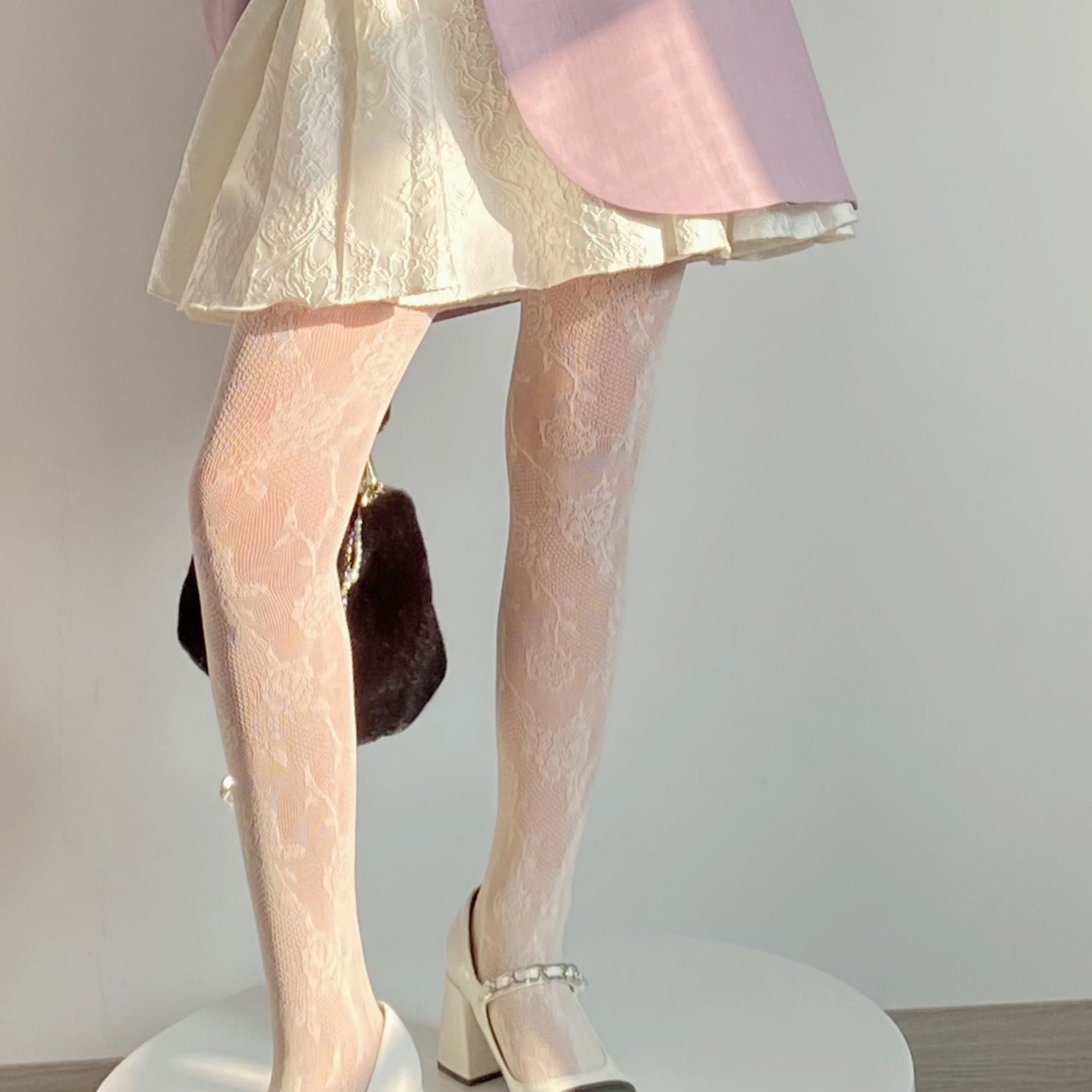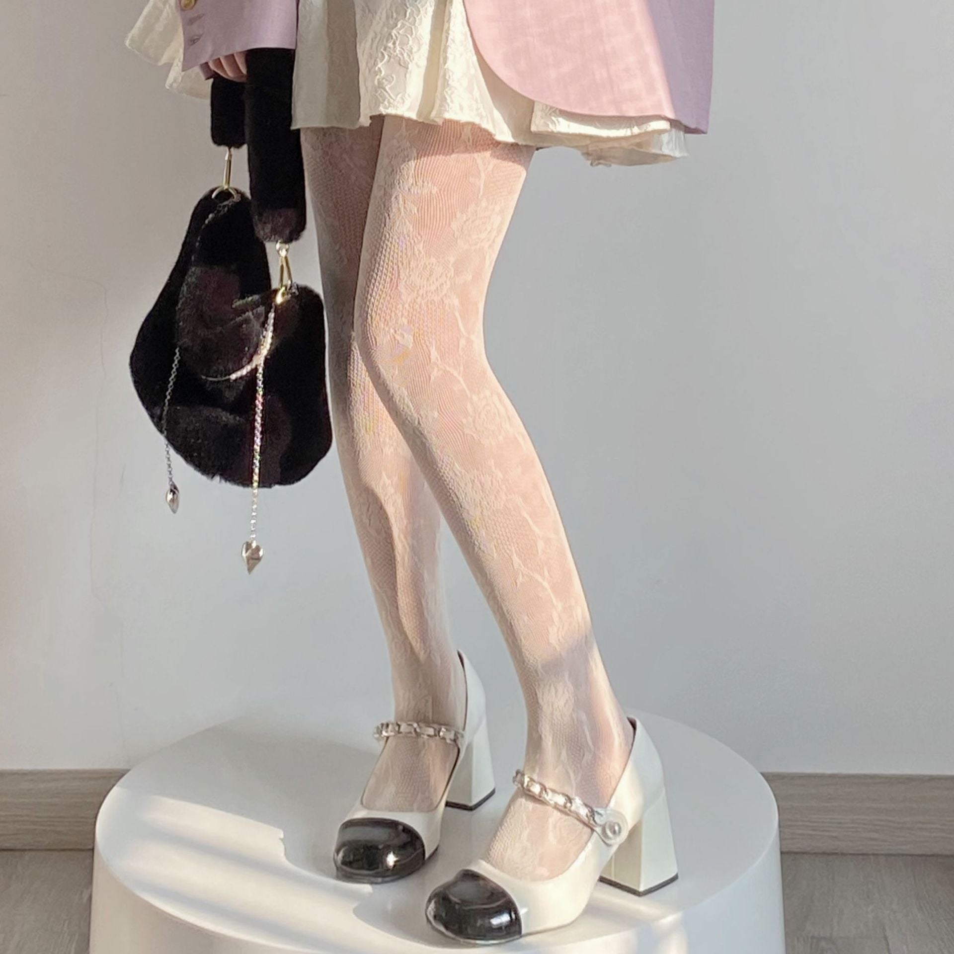 FREEDOMBEAUTY | Autumn and Winter Pure Wind Sweetheart Spice Girls White Silk Vintage Mesh Rose Stockings Fishnet Socks Bottom Pantyhose