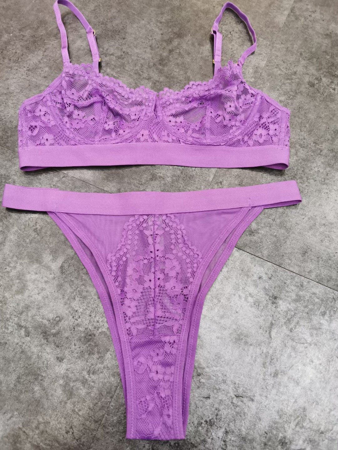 FREEDOMBEAUTY | Bra ultra-thin lace underwear sexy seduction rimless triangle cup thong bra sexy lace underwear