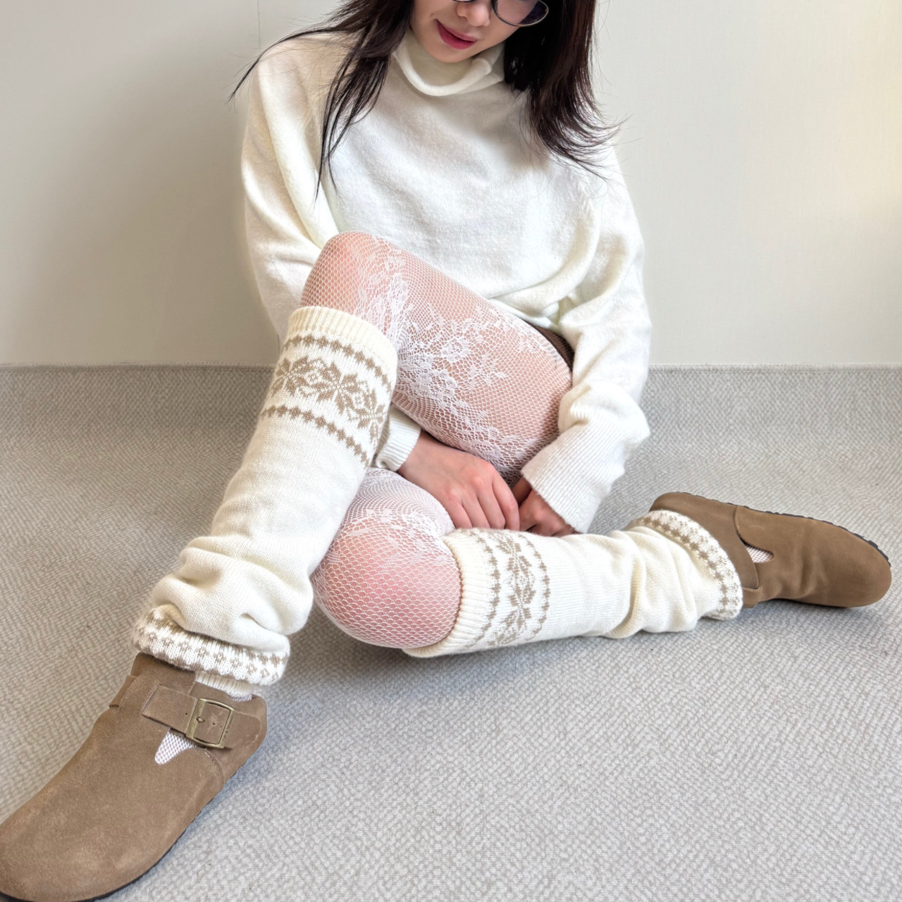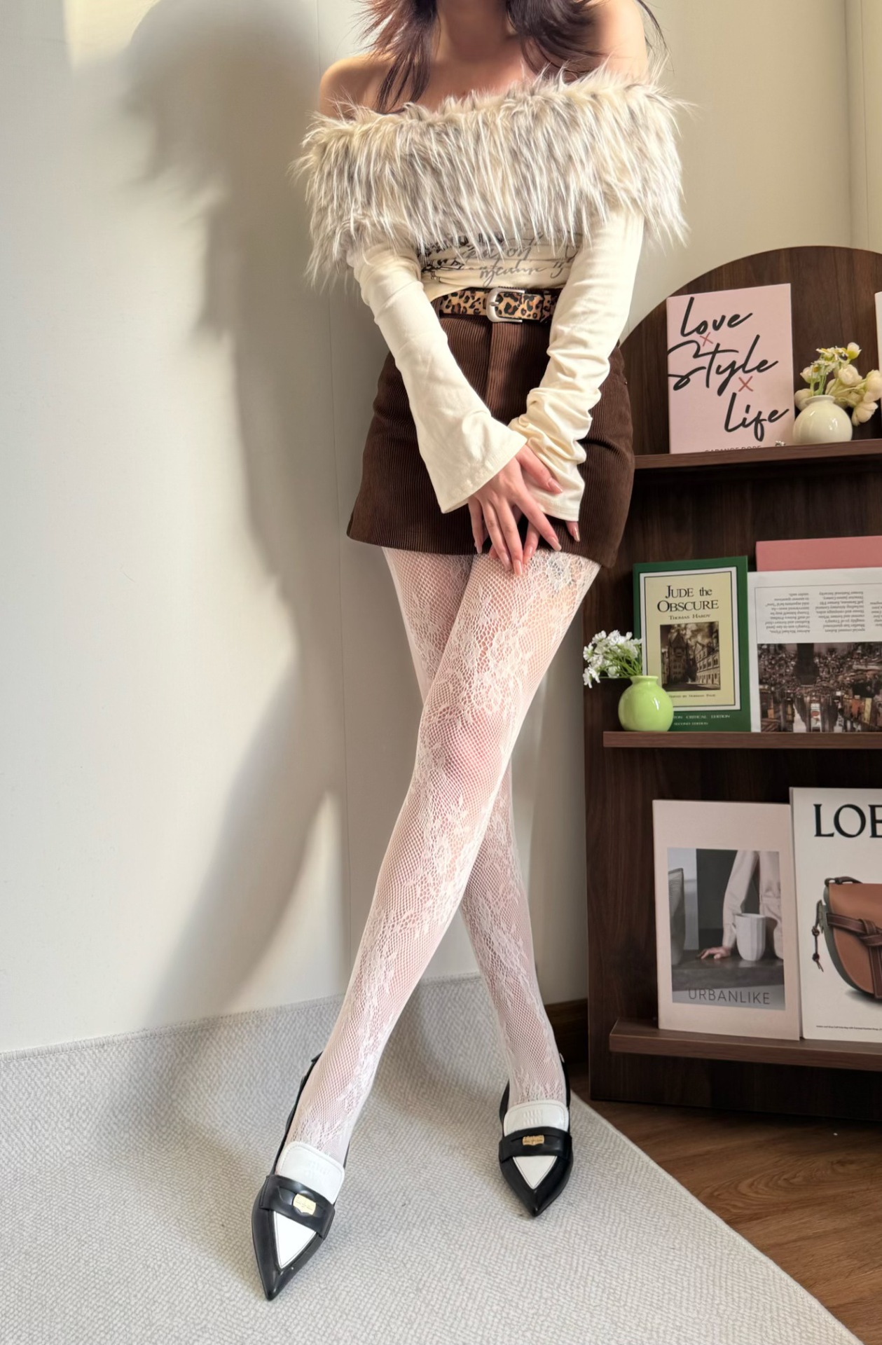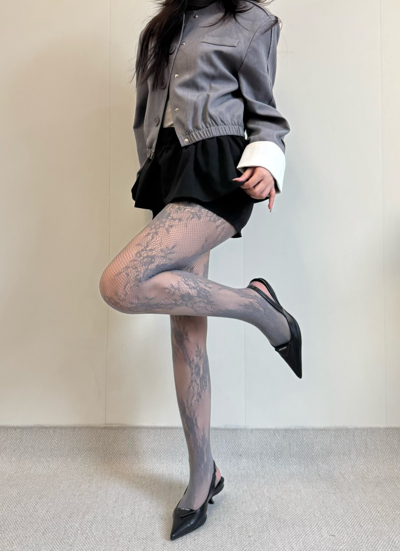 FREEDOMBEAUTY | Early spring new retro elegant hollow flower lace jacquard fishnet socks Spice girl anti-hook bottom stockings women