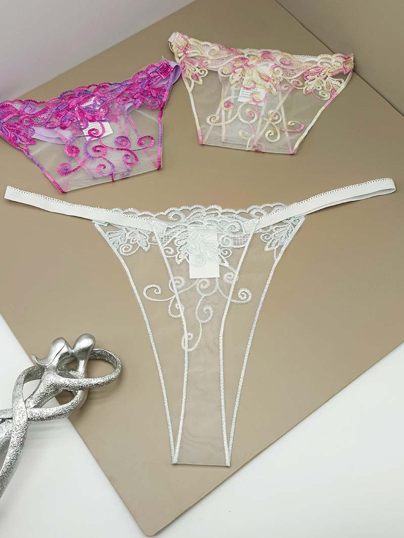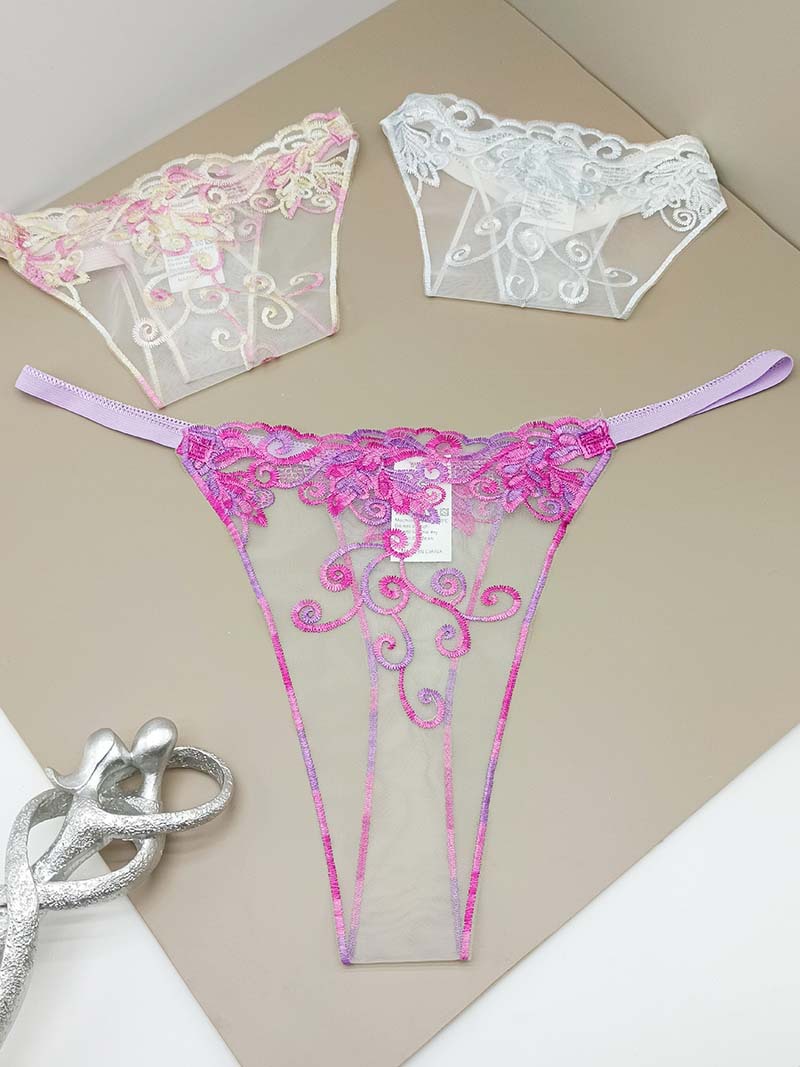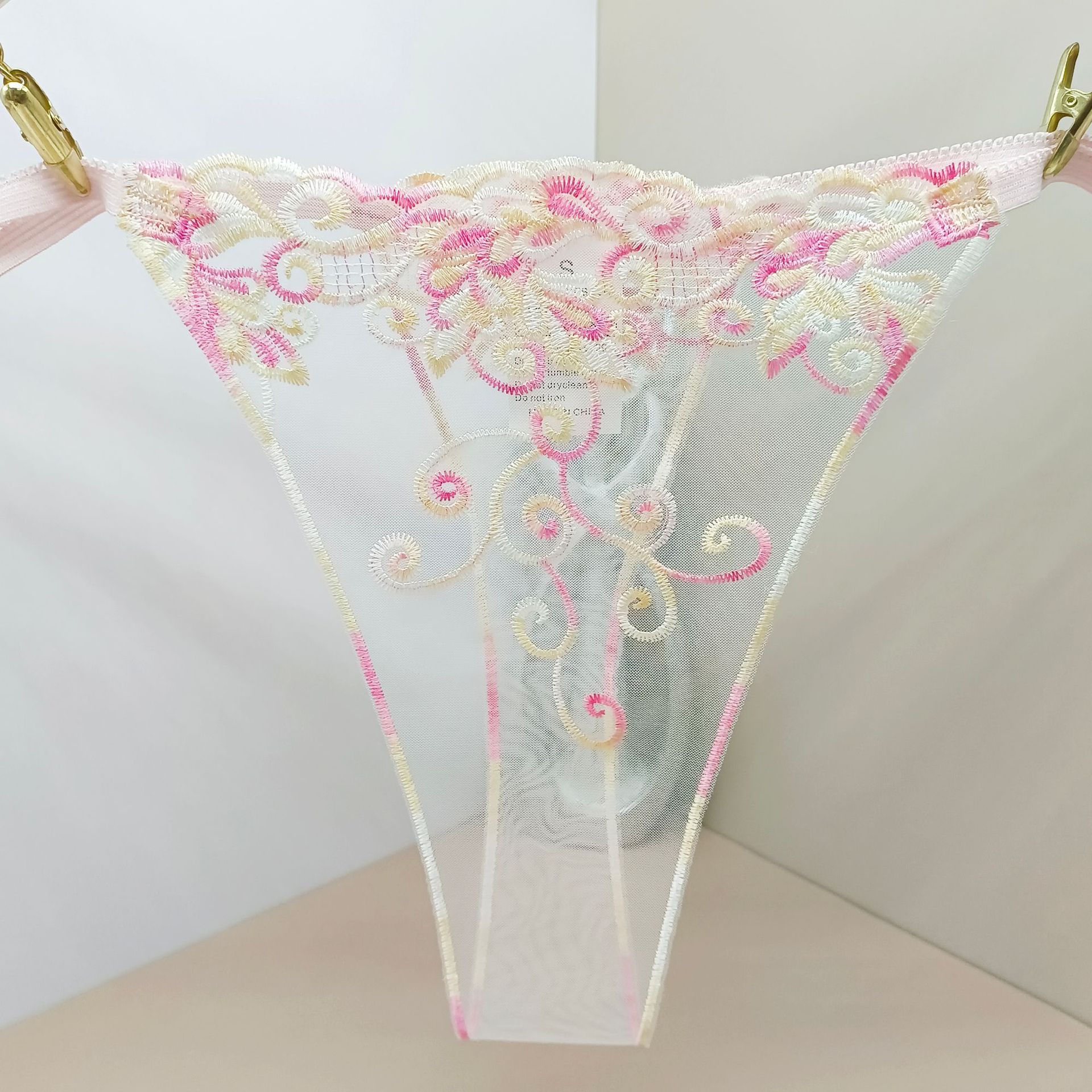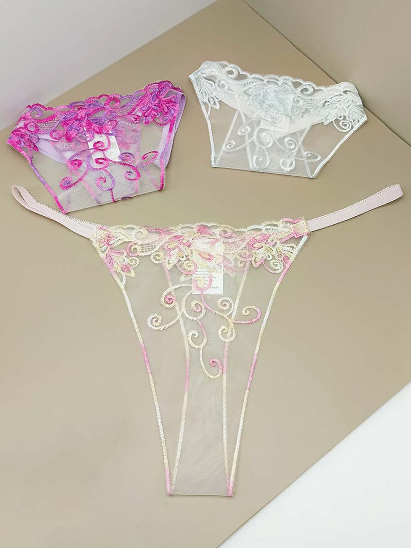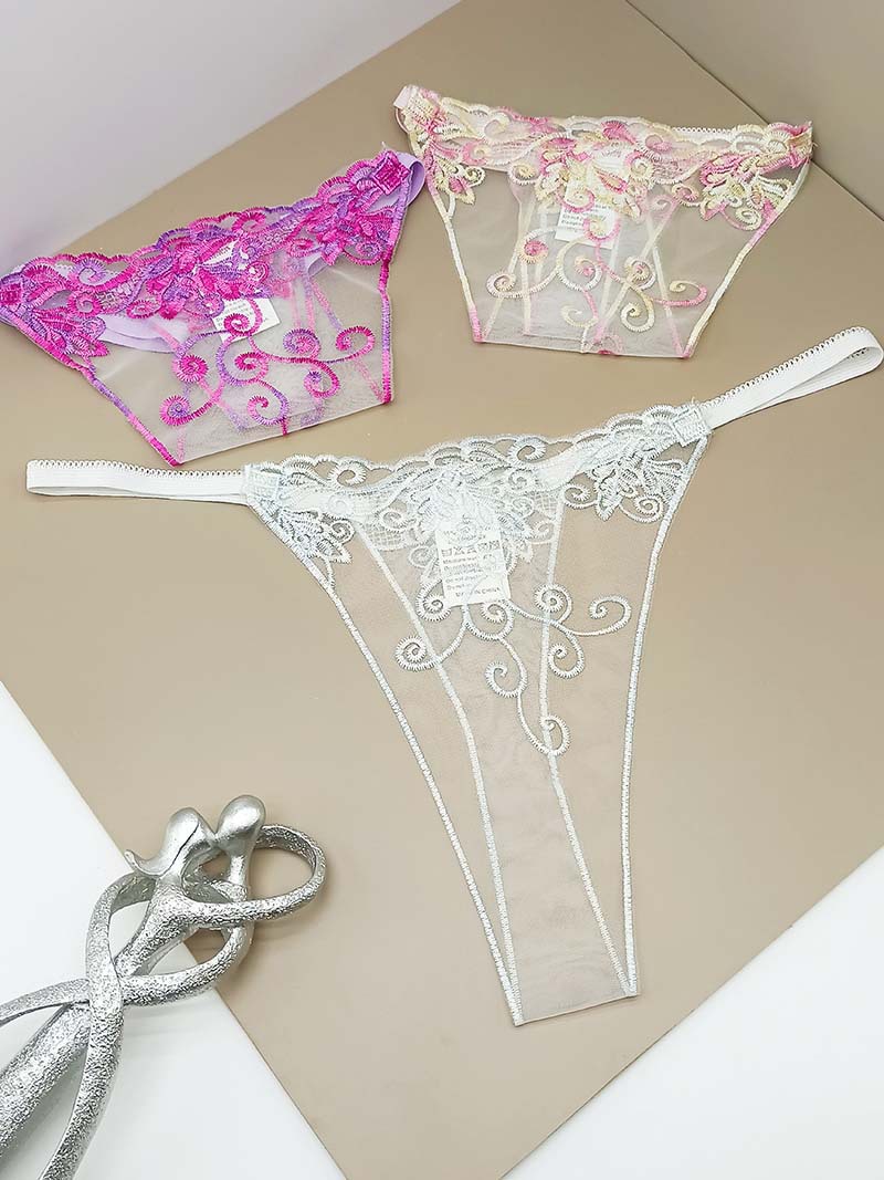 FREEDOMBEAUTY | Embroidery Sexy Transparent Women's Thong Perspective European and American Seduction Panties Cross-border Mesh Embroidery