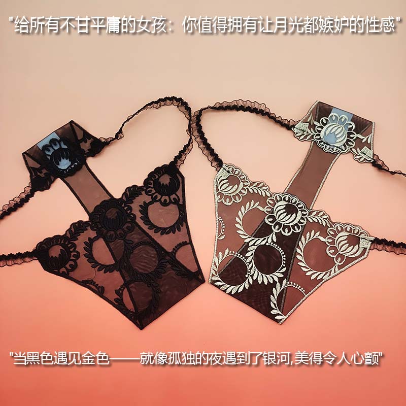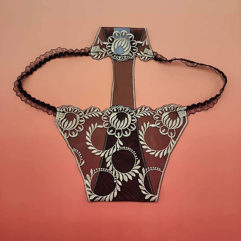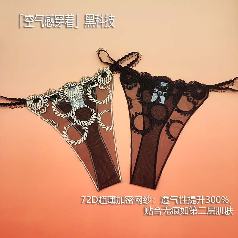 FREEDOMBEAUTY | European and American foreign trade pure desire style lace women's underwear comfortable and sexy women's thong low waist temptation mesh embroidery