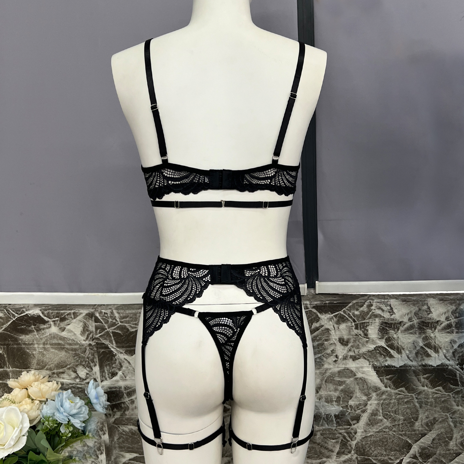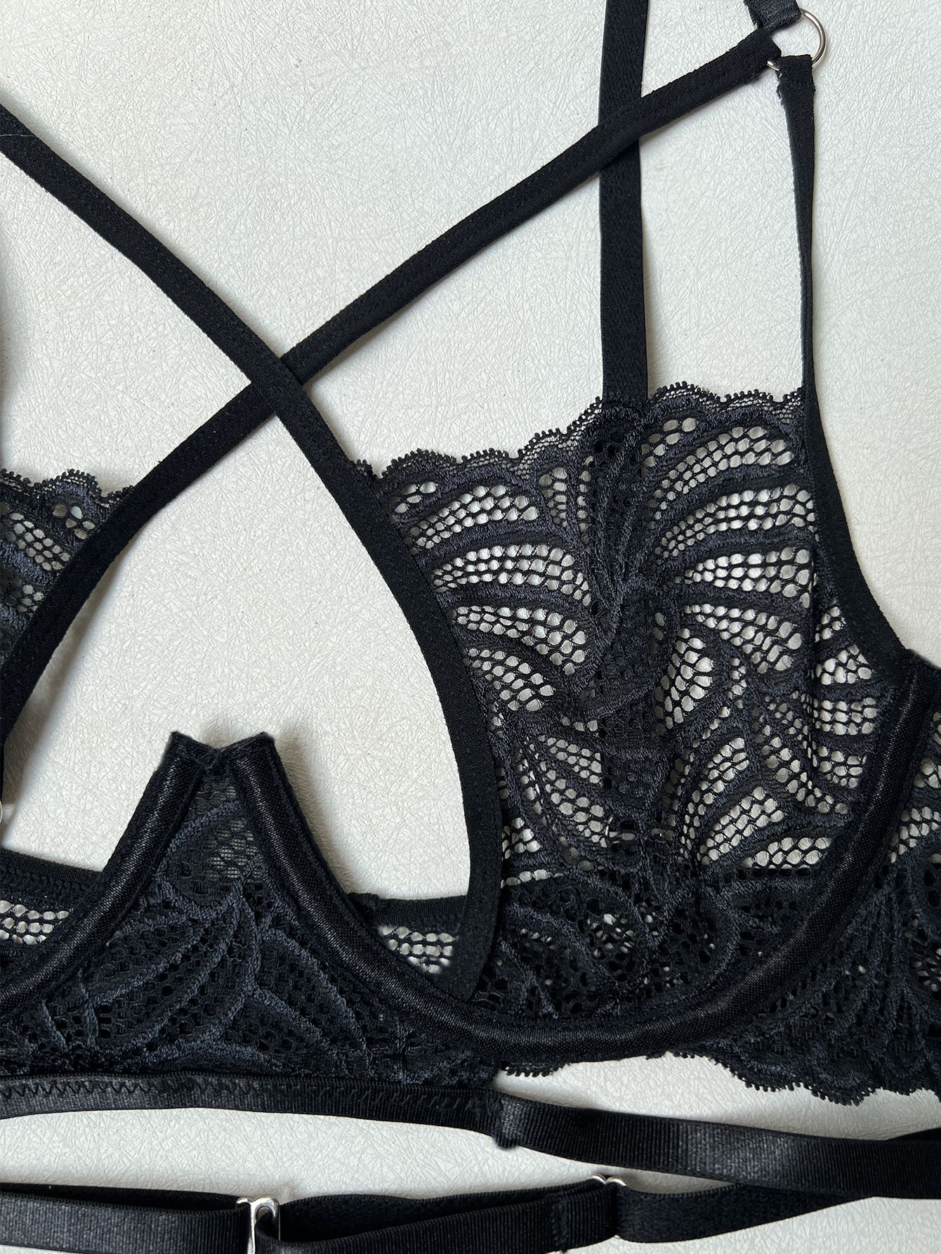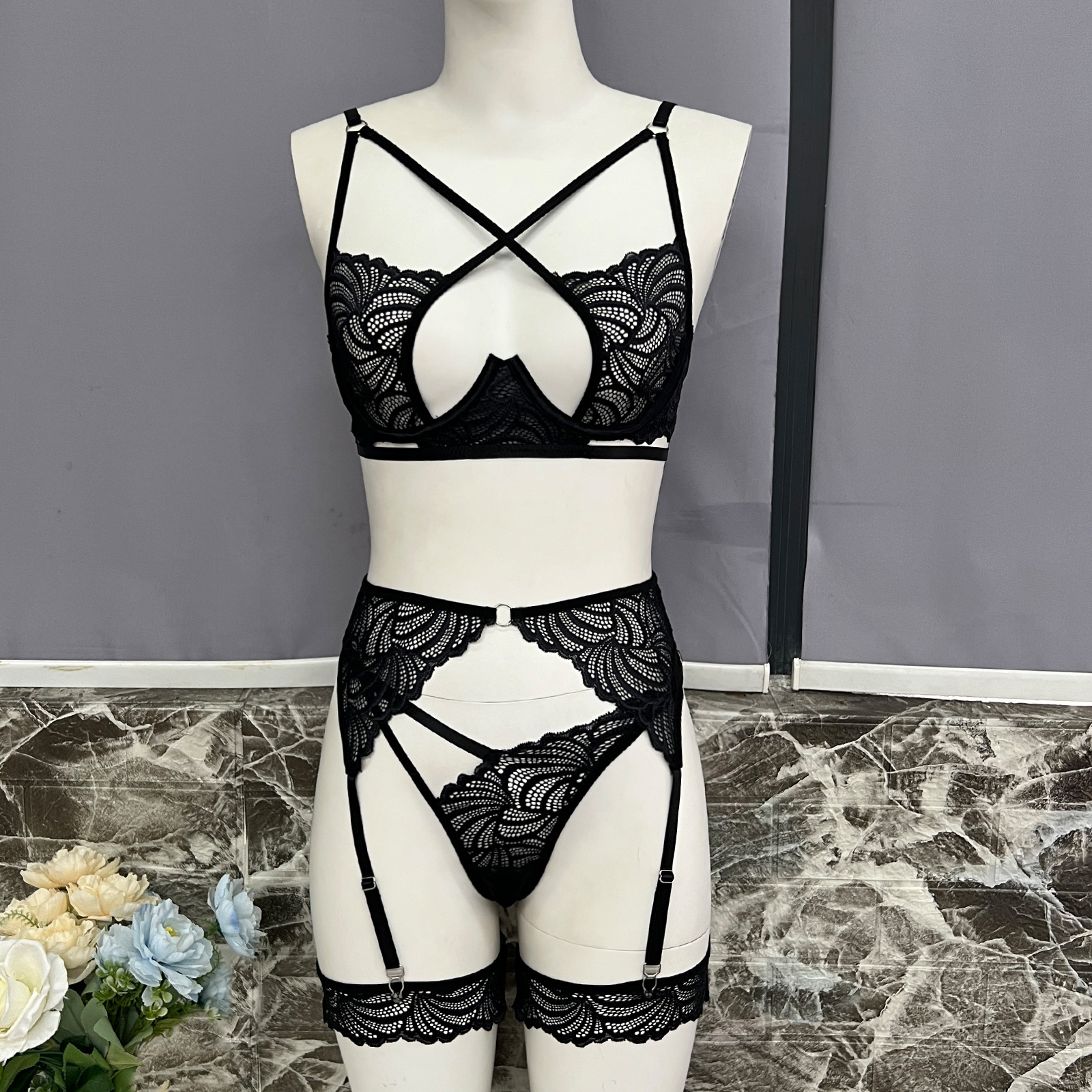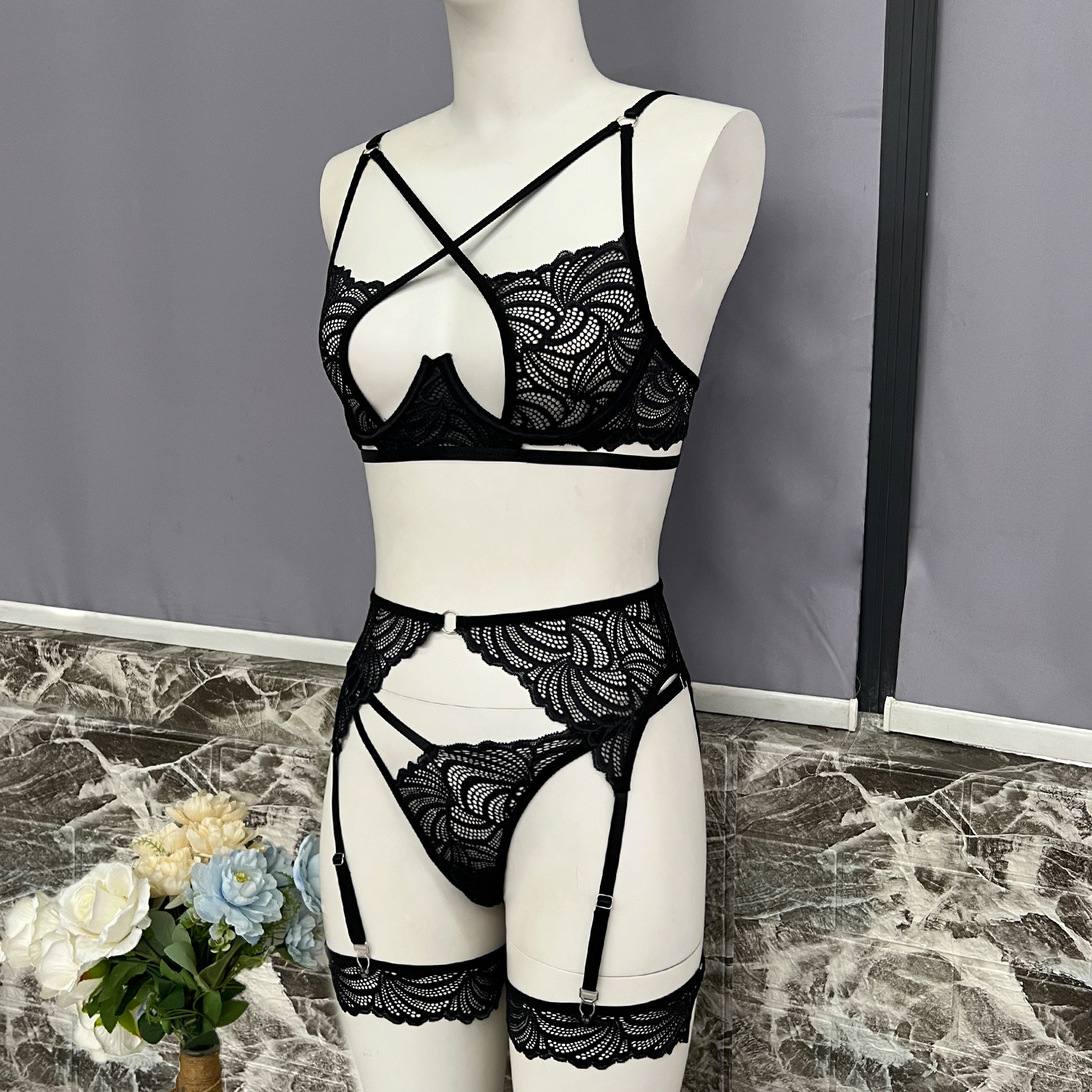 FREEDOMBEAUTY | European and American love situation new bra sexy lace steel ring gathering cross webbing hollow love underwear