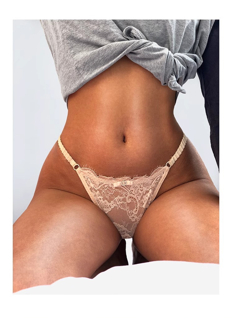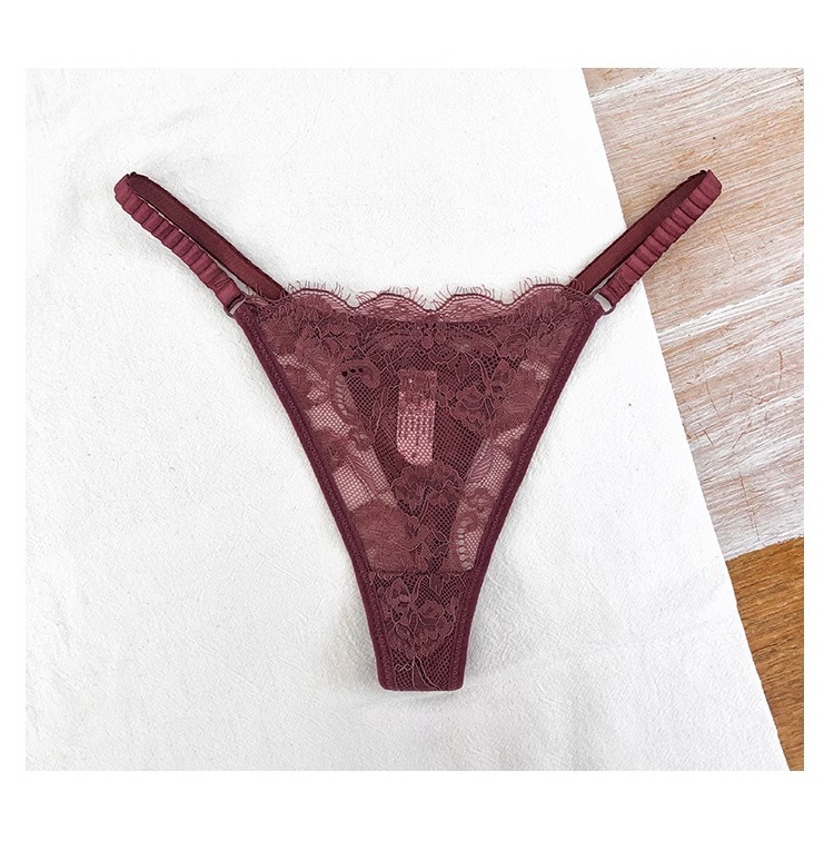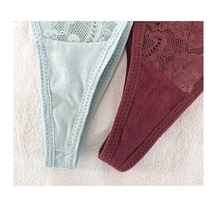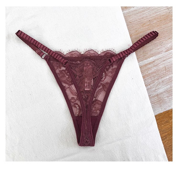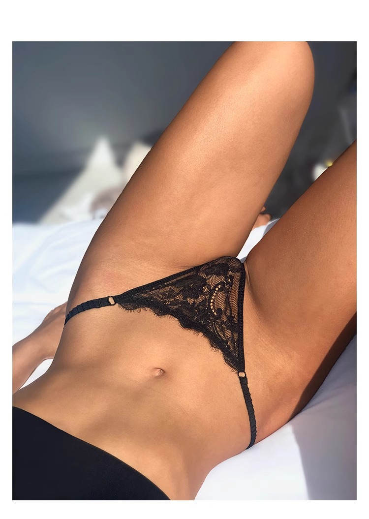 FREEDOMBEAUTY | European and American panties lace strap hollow thong women's cotton grade low waist perspective sexy eyelashes perspective hot T pants