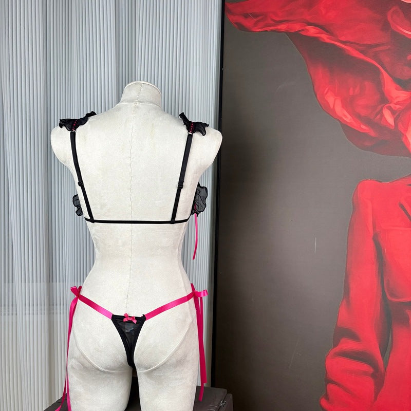 FREEDOMBEAUTY | FQ2096S Bow Hollow Free Sex Underwear Set Women's Big Breast Lotus Leaf Edge Perspective Mesh Pure Desire T