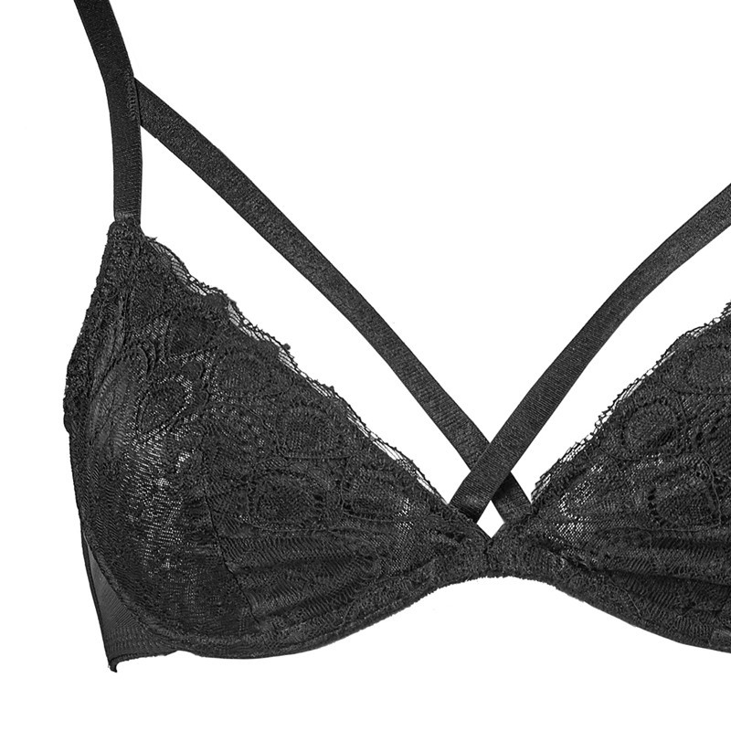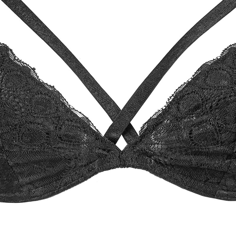 FREEDOMBEAUTY | FQ2655 Black Lace Tulle Mesh Rim Bra Panties Sexy Low Waist Hollow Thong Suit Female Pure Lust