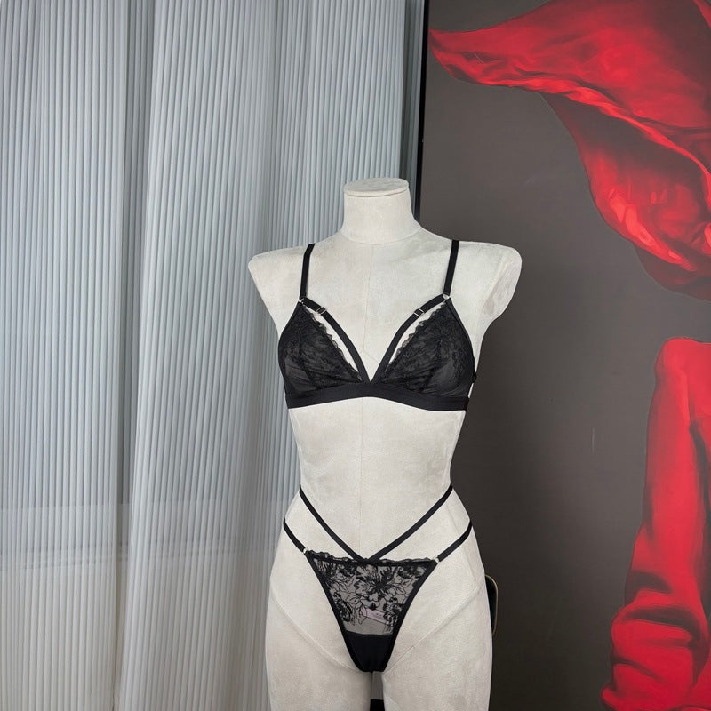 FREEDOMBEAUTY | FQ2872 Embroidery Triangle Cup Mesh Lined Neck Body Chain Low Waist T Pants Women's High Quality Underwear Cross-border Red