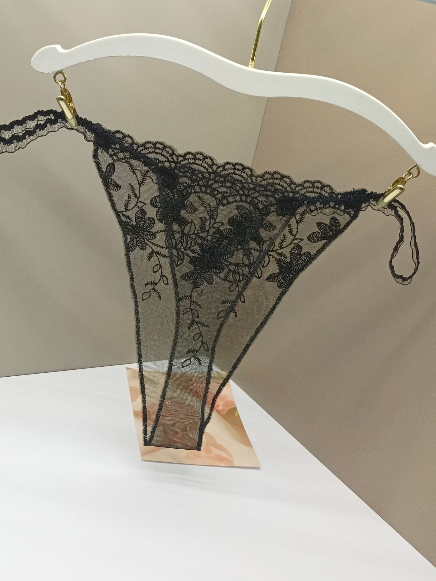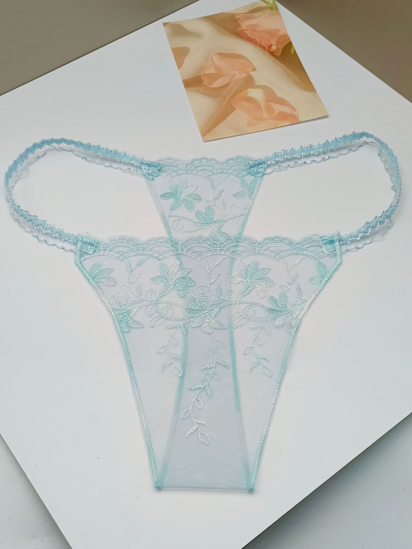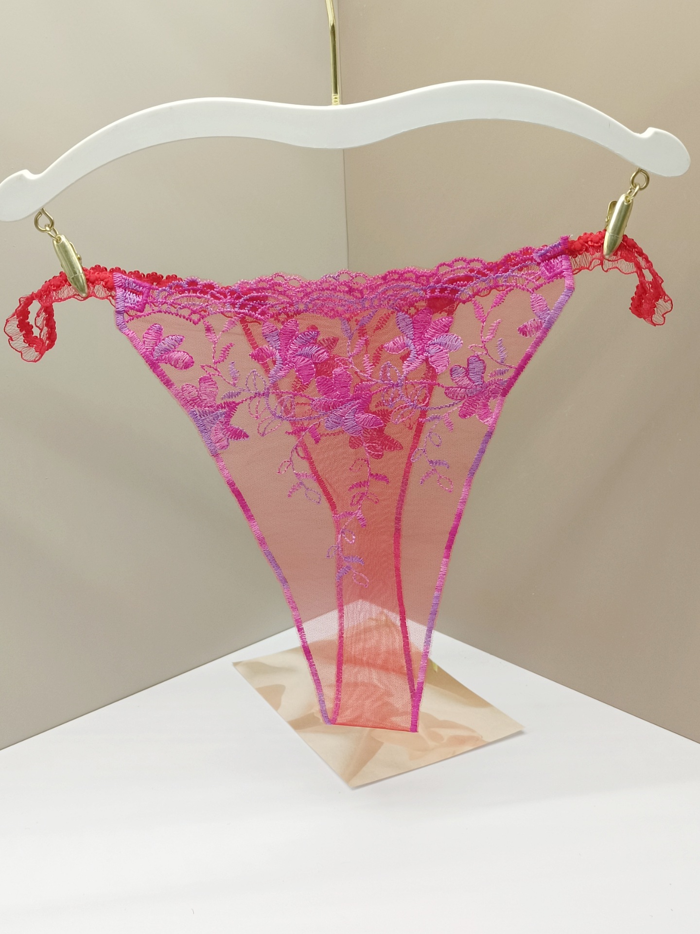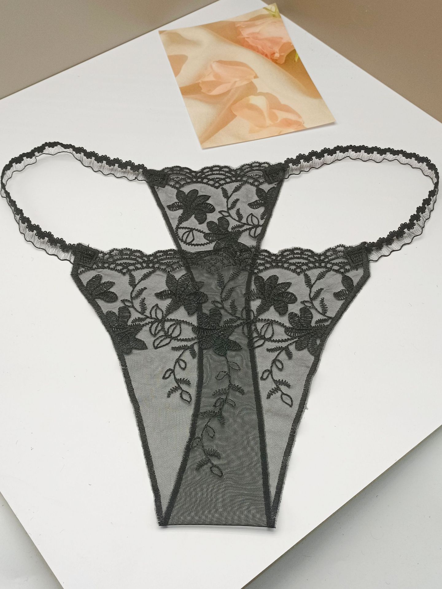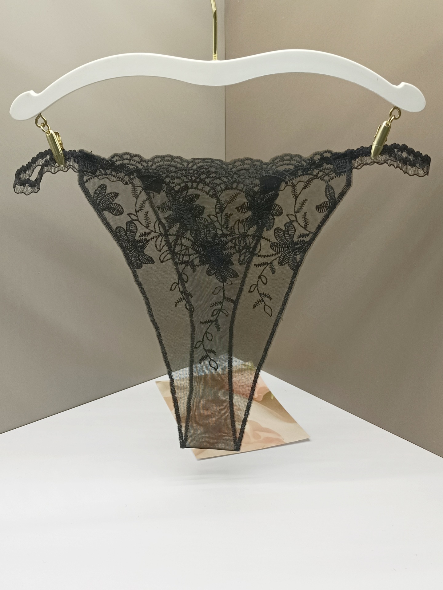 FREEDOMBEAUTY | New pattern embroidery three-color mesh color matching sexy perspective light women's crotchless lace T-pants
