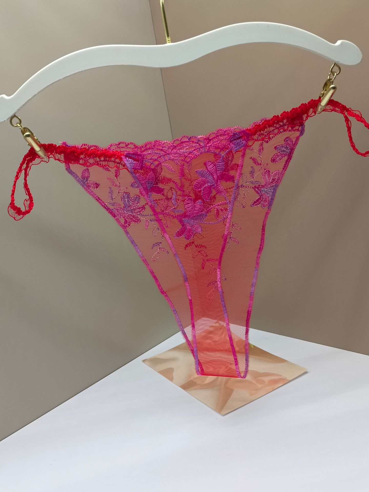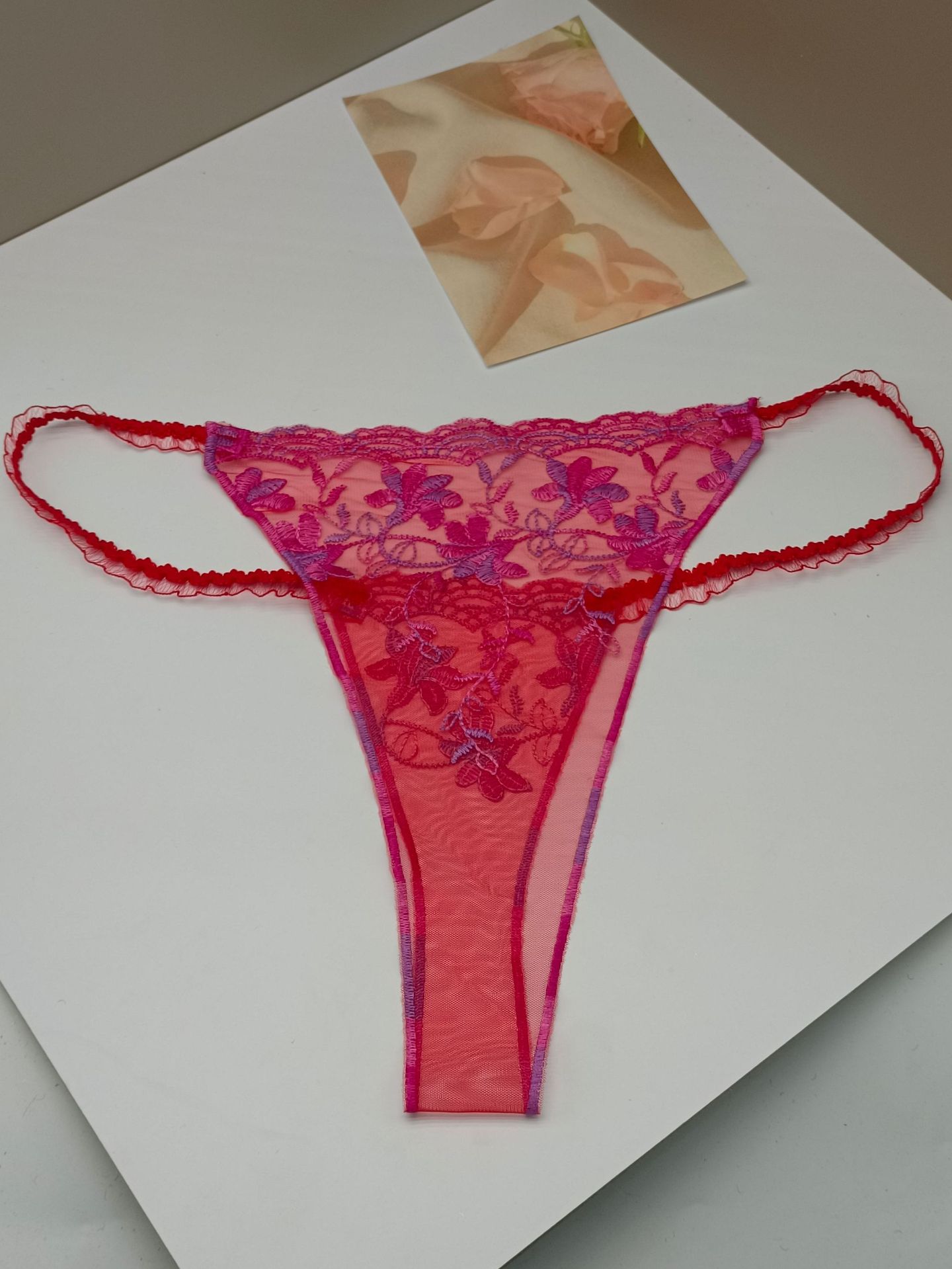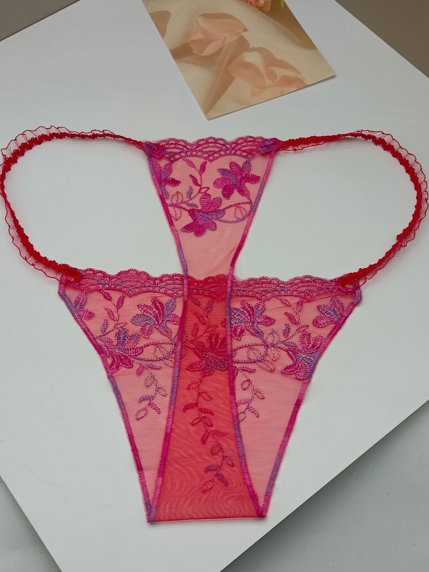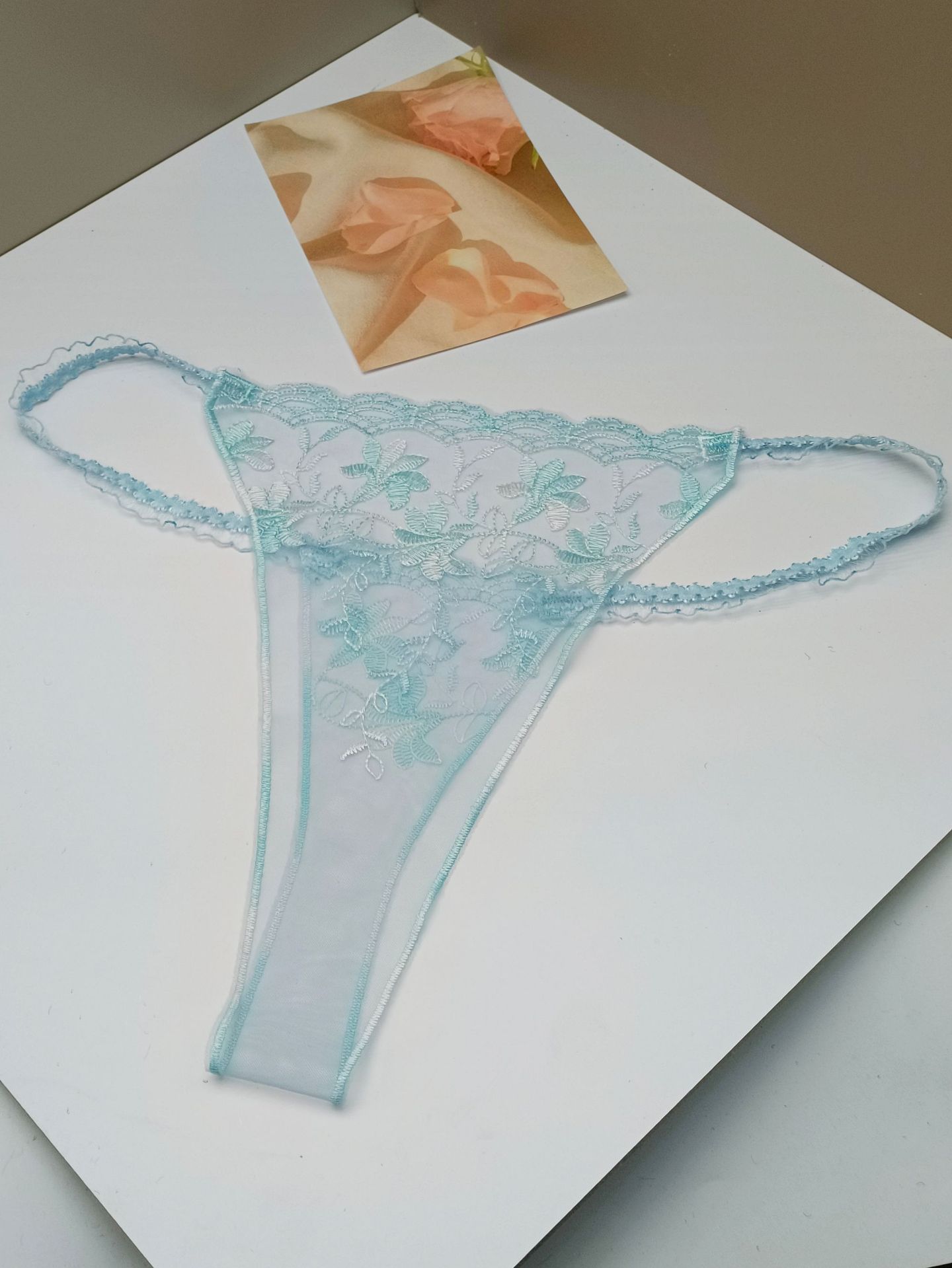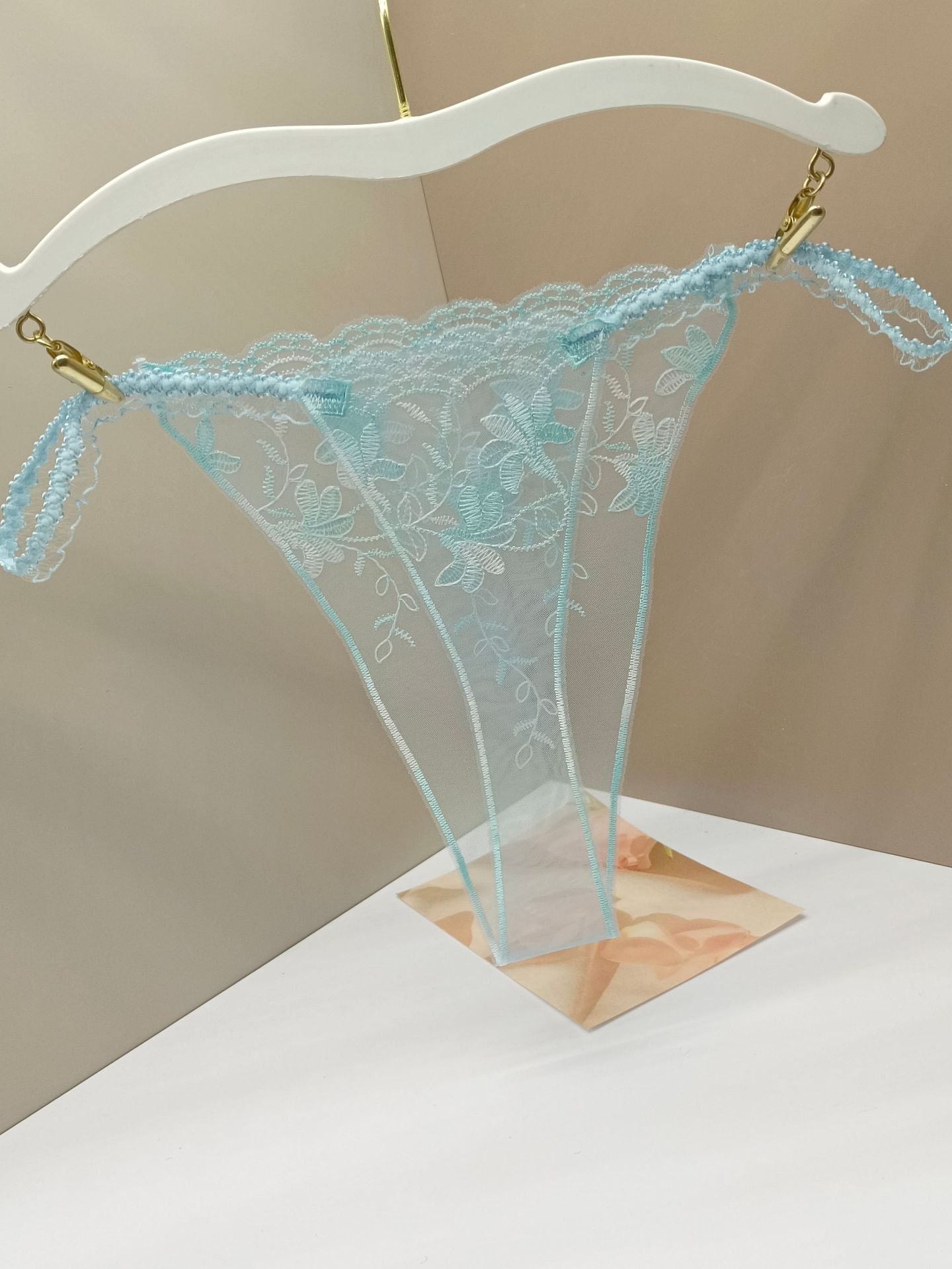 FREEDOMBEAUTY | New pattern embroidery three-color mesh color matching sexy perspective light women's crotchless lace T-pants