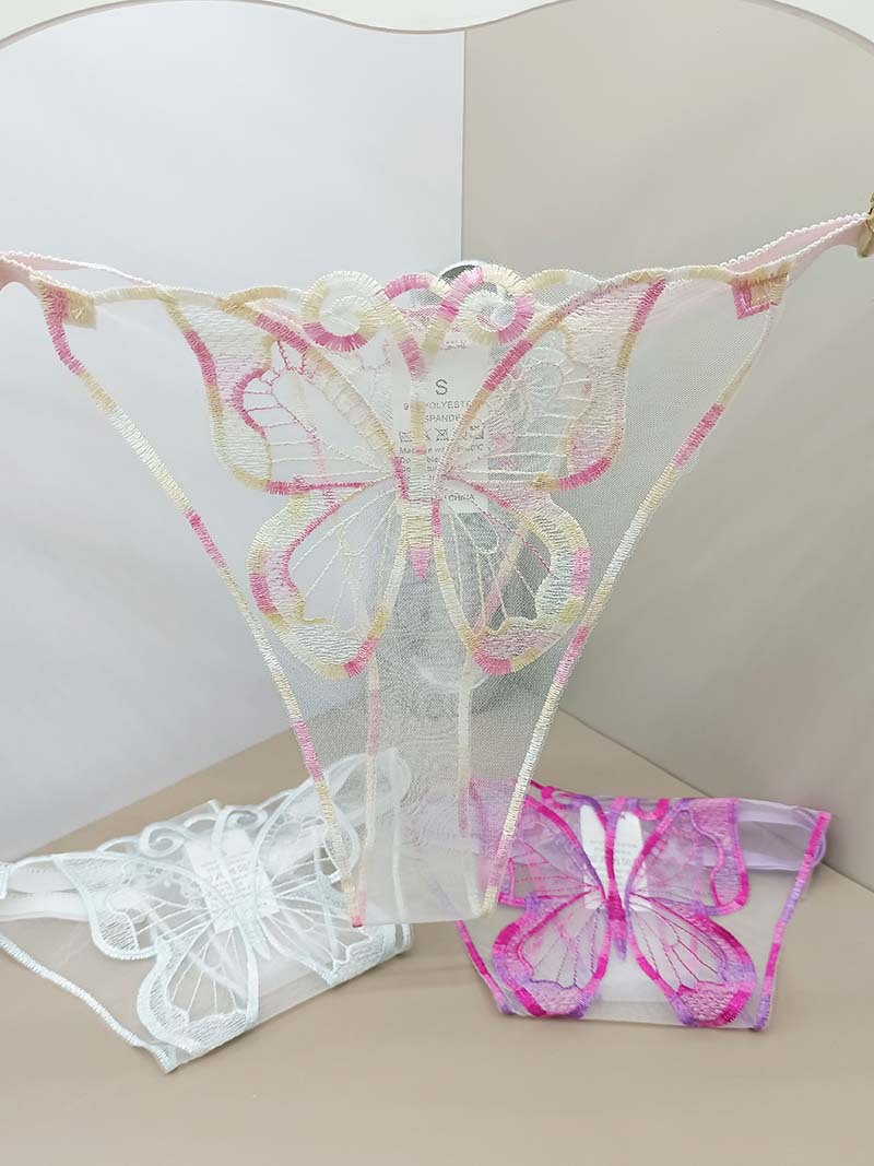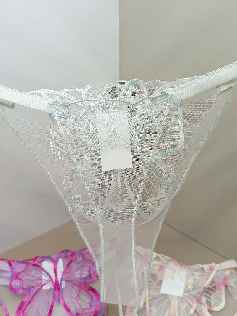 FREEDOMBEAUTY | New women's sexy perspective lace temptation three-piece mesh embroidery butterfly embroidery sex thong cross-border