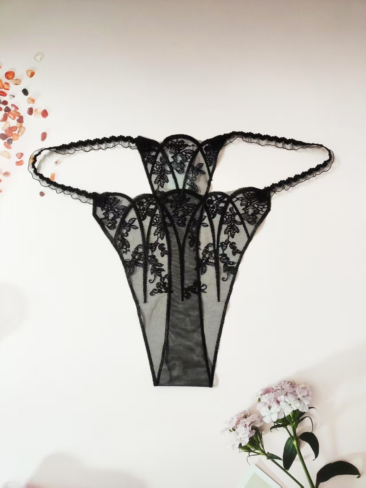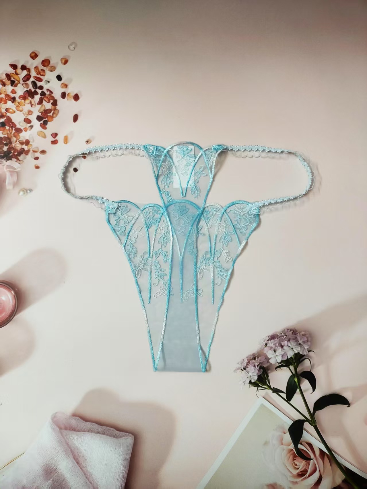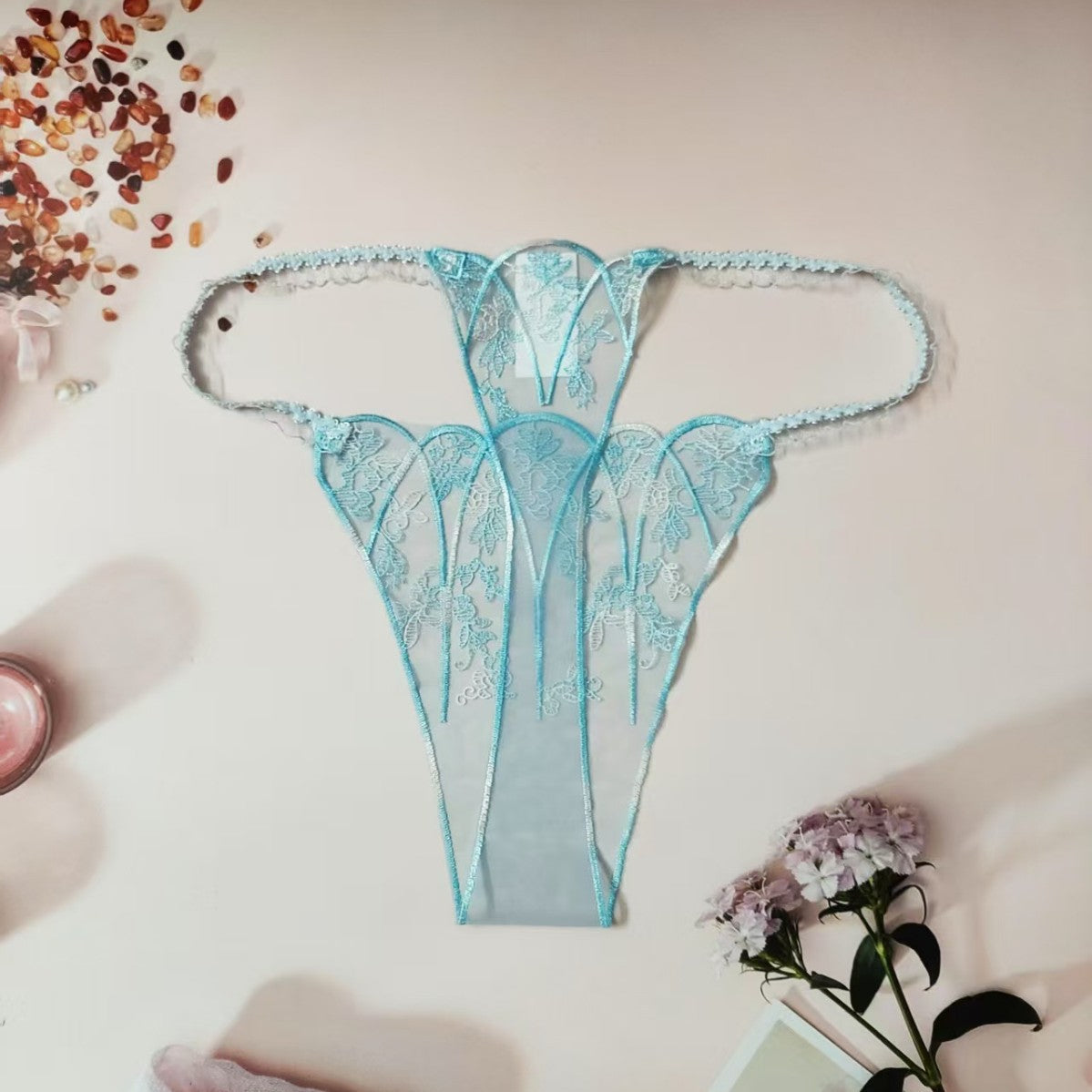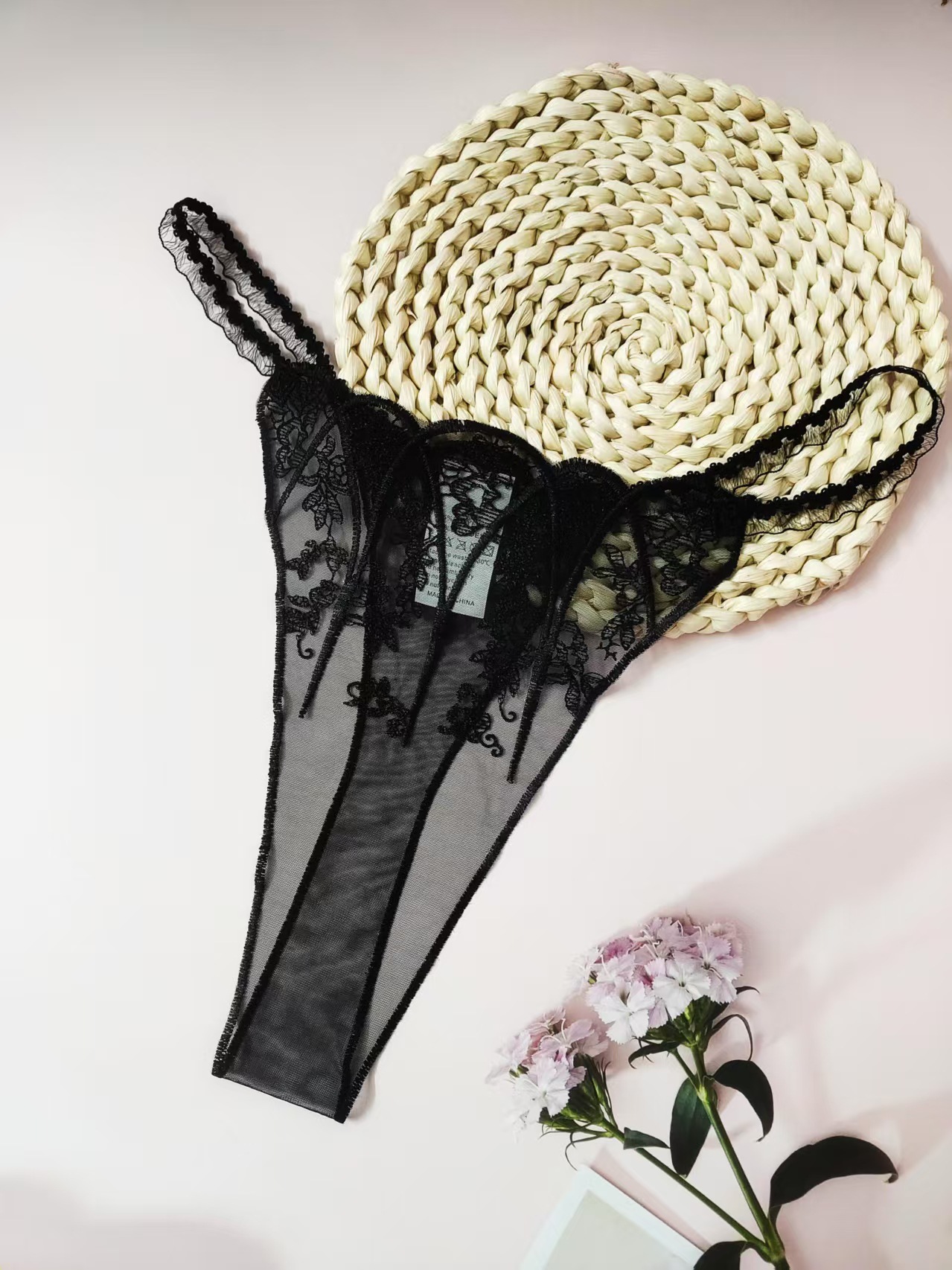 FREEDOMBEAUTY | New women's triangular mesh lace hollow sexy European and American mesh mountains embroidery color matching cross-border perspective T-character