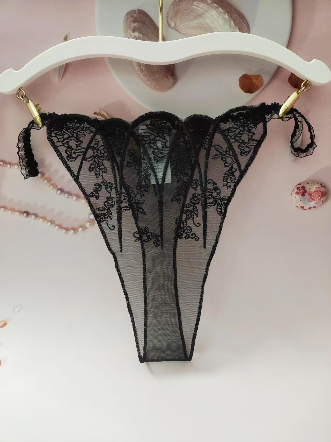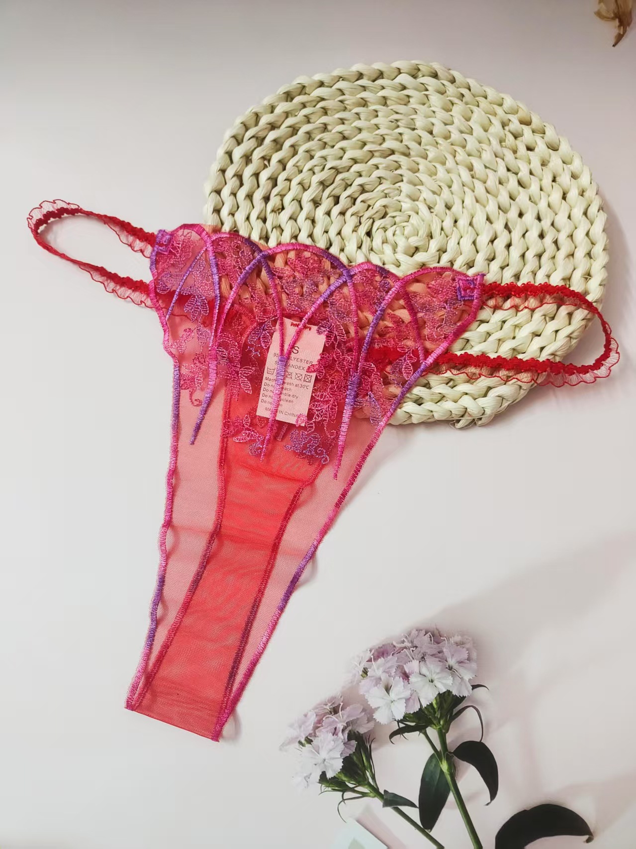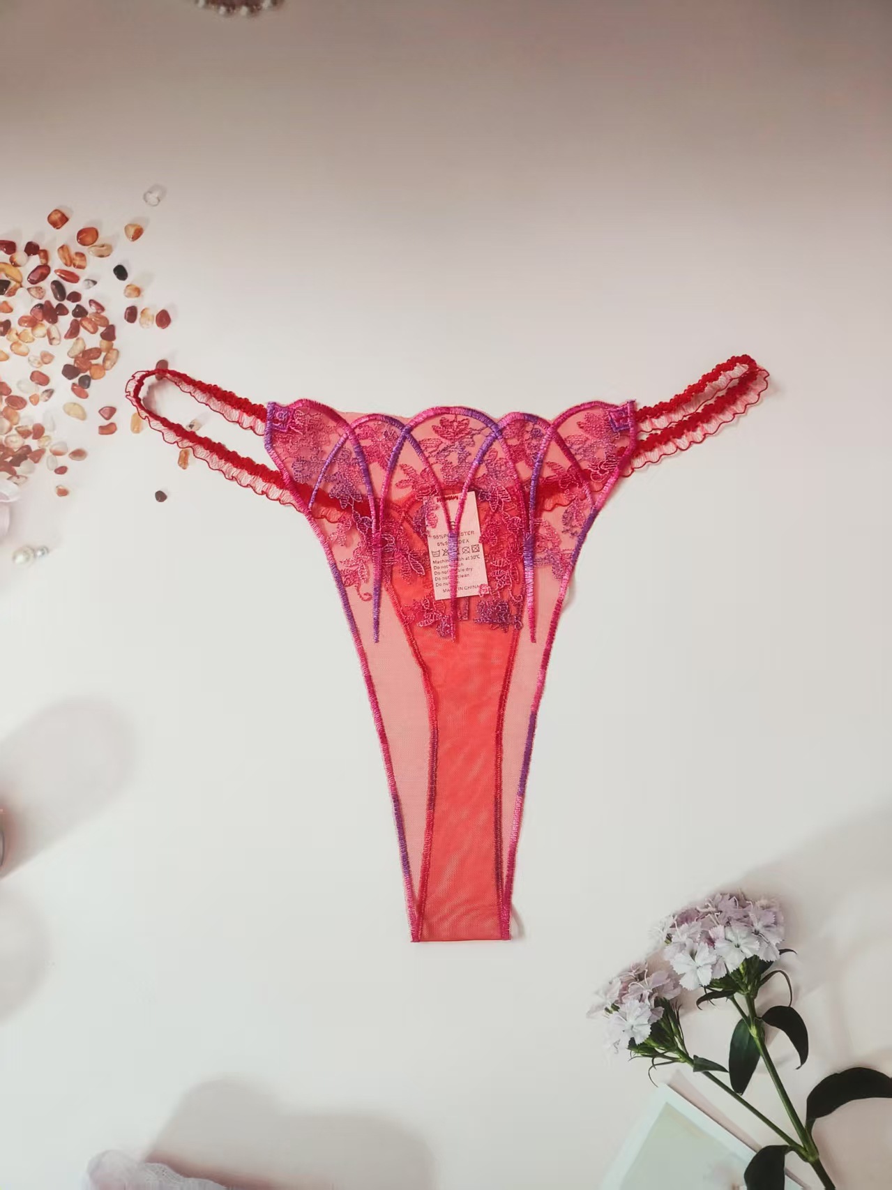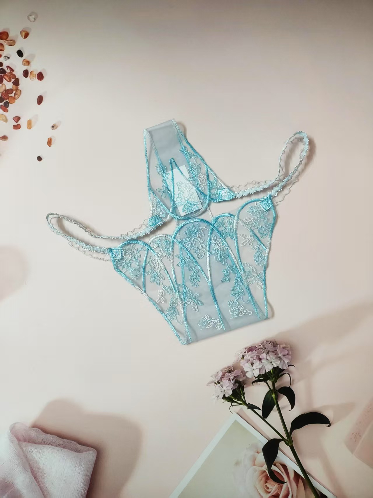 FREEDOMBEAUTY | New women's triangular mesh lace hollow sexy European and American mesh mountains embroidery color matching cross-border perspective T-character