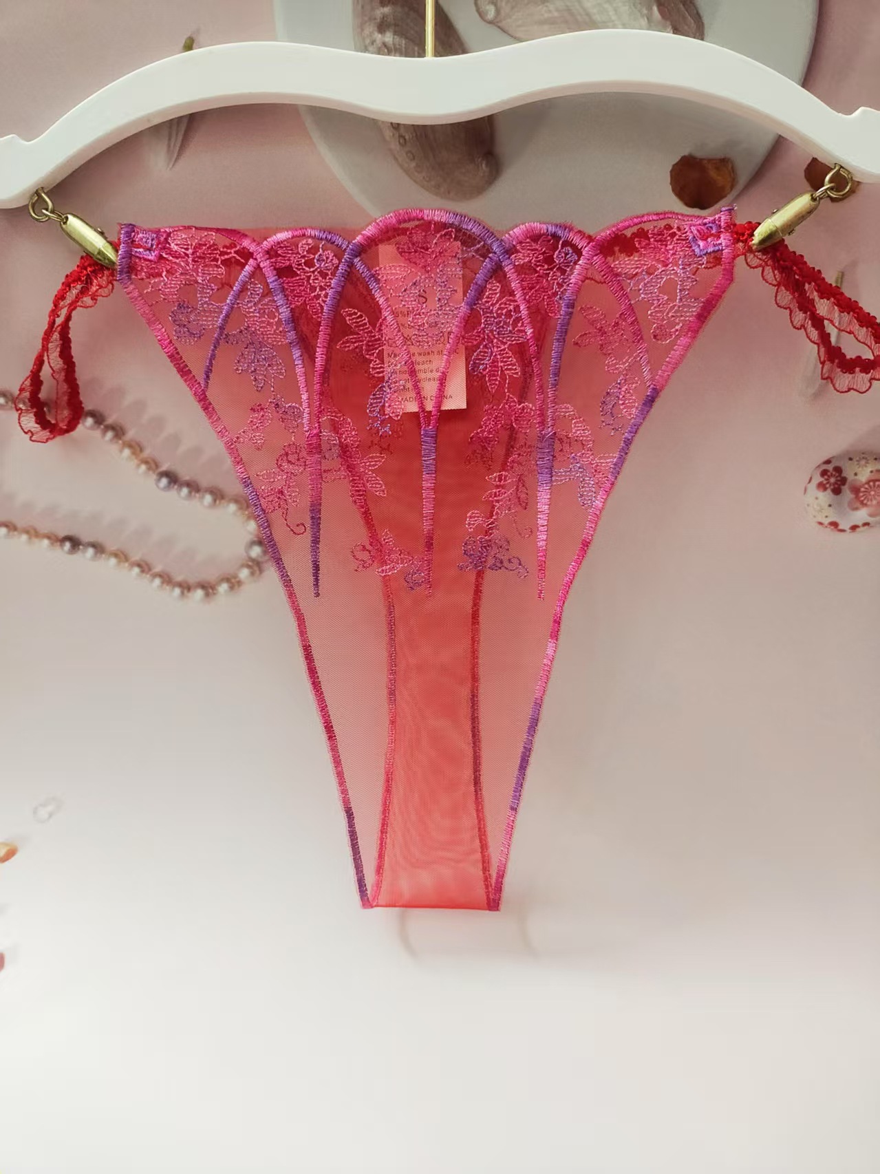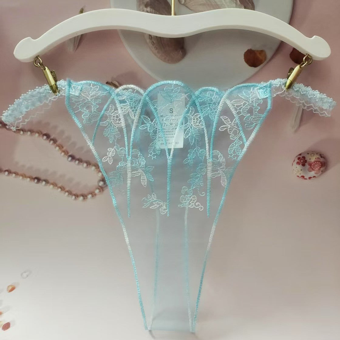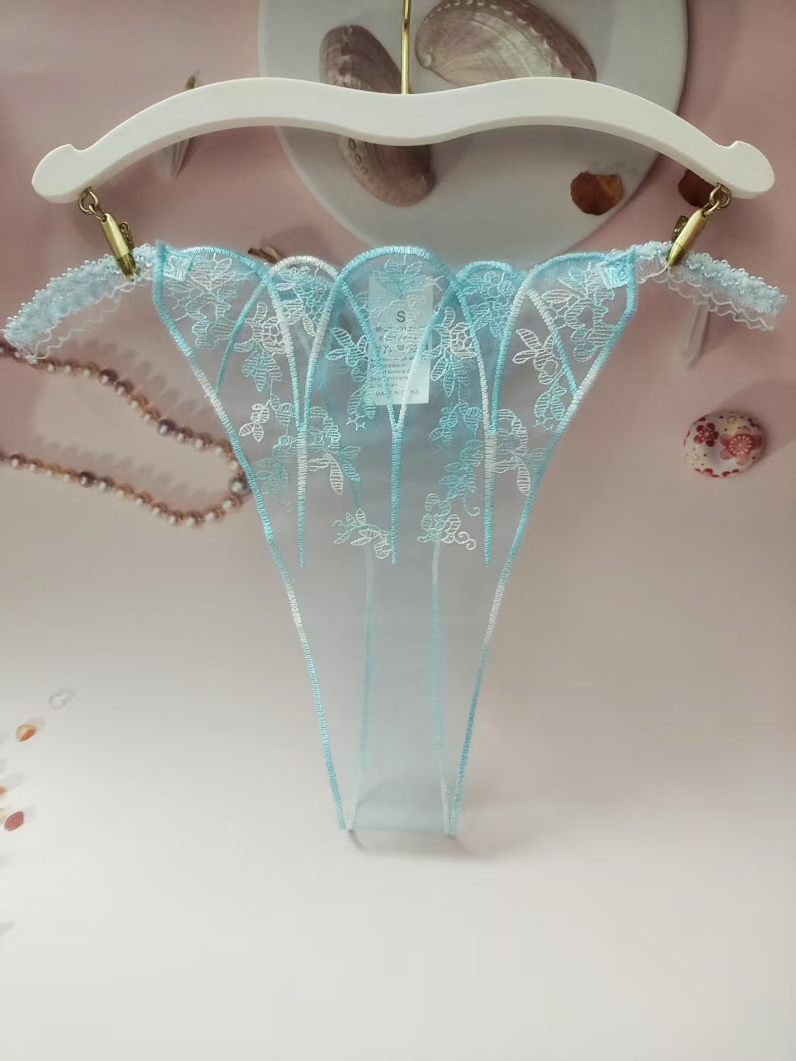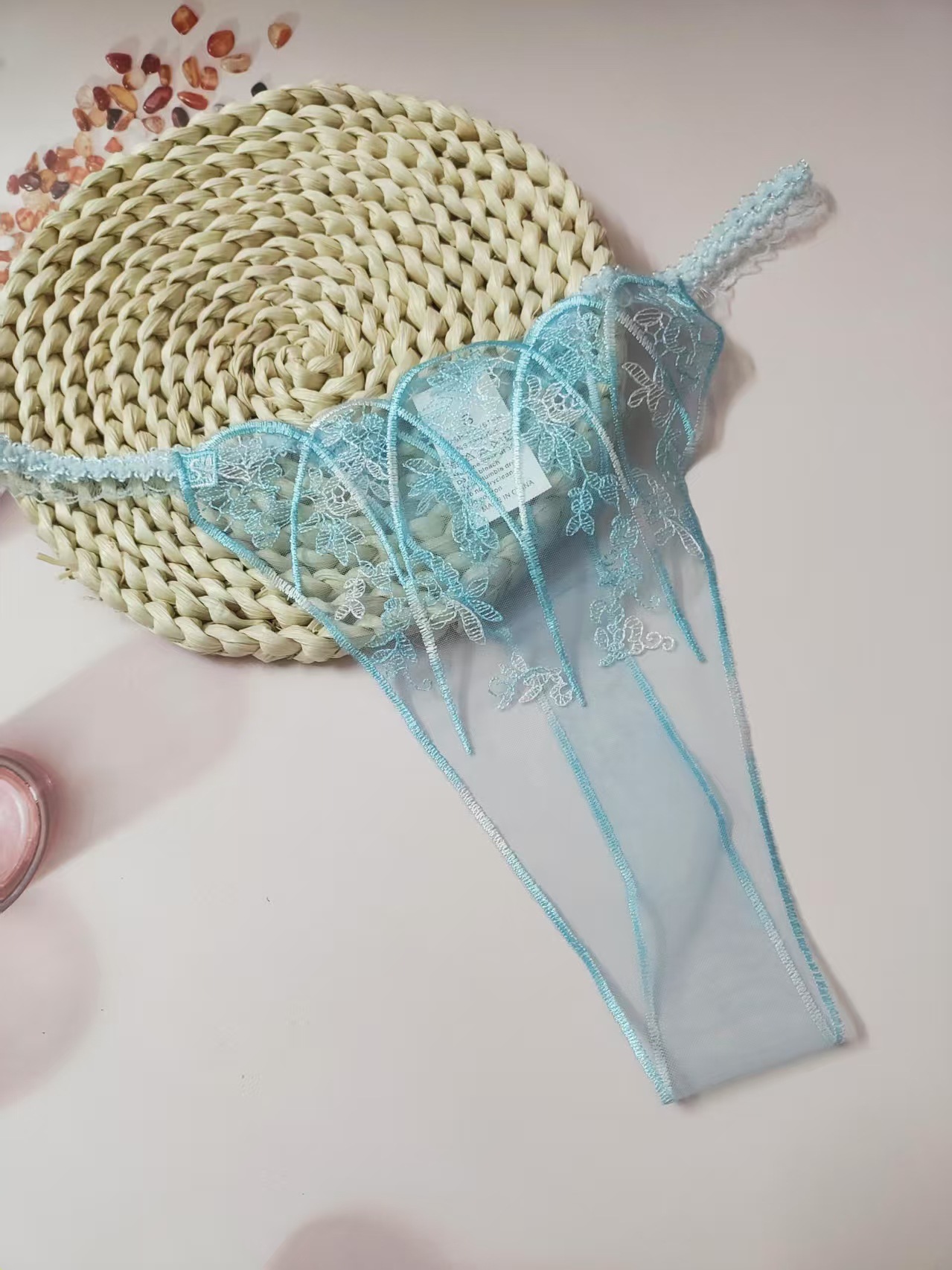FREEDOMBEAUTY | New women's triangular mesh lace hollow sexy European and American mesh mountains embroidery color matching cross-border perspective T-character