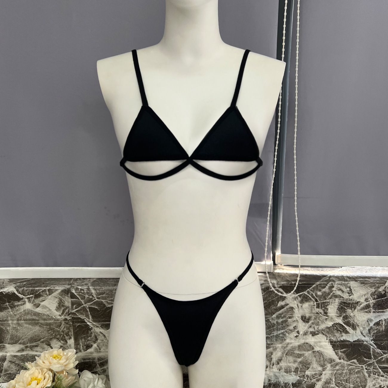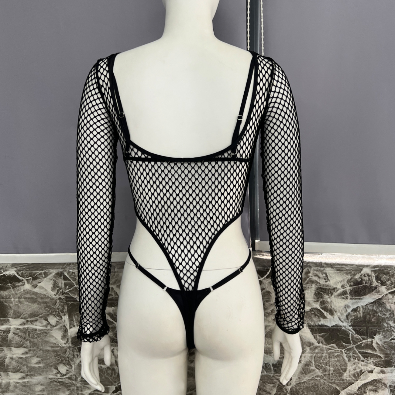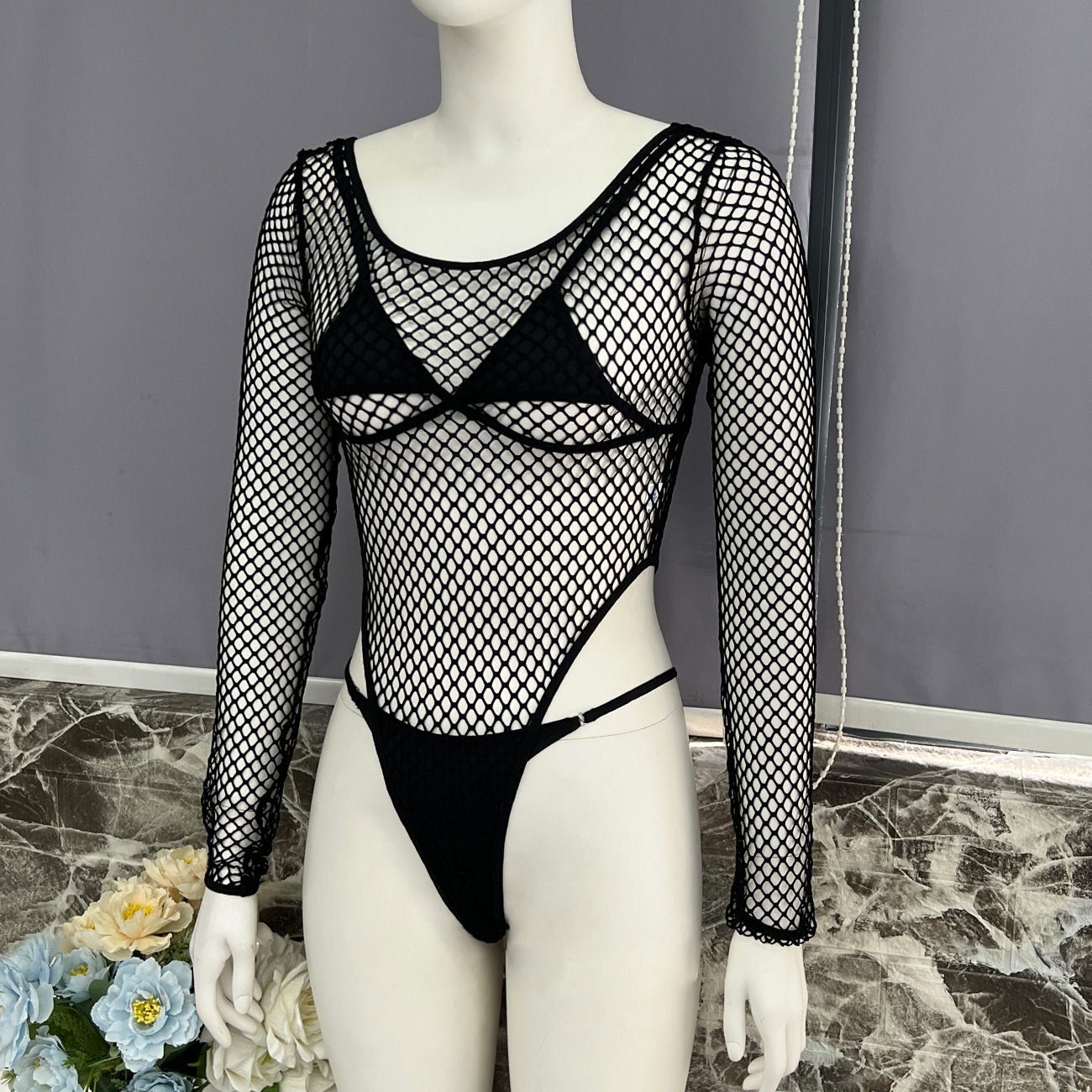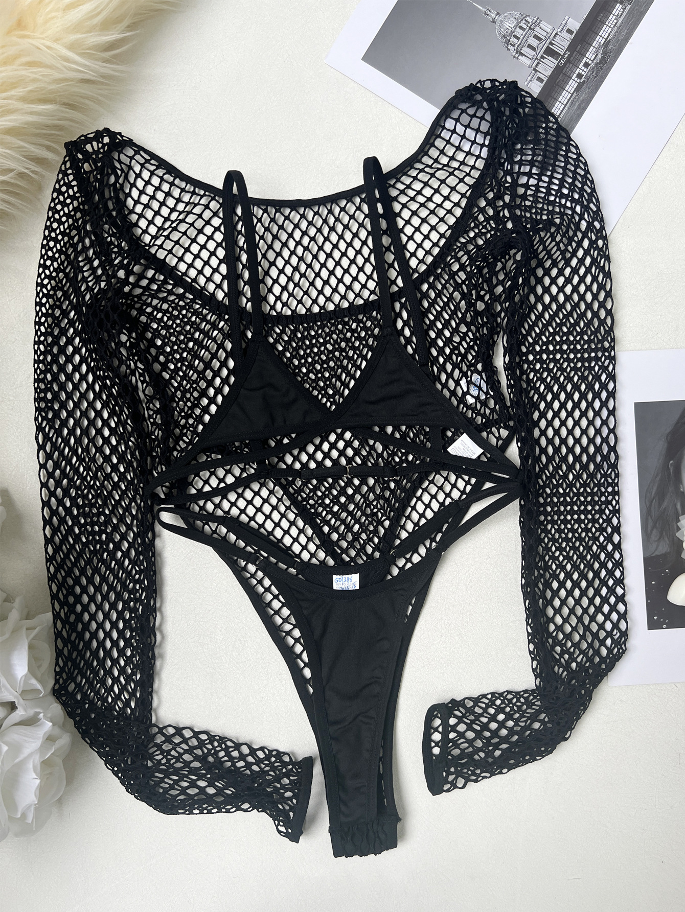 FREEDOMBEAUTY | One piece of European and American women's fishing net leggings + bra + underwear three-piece set