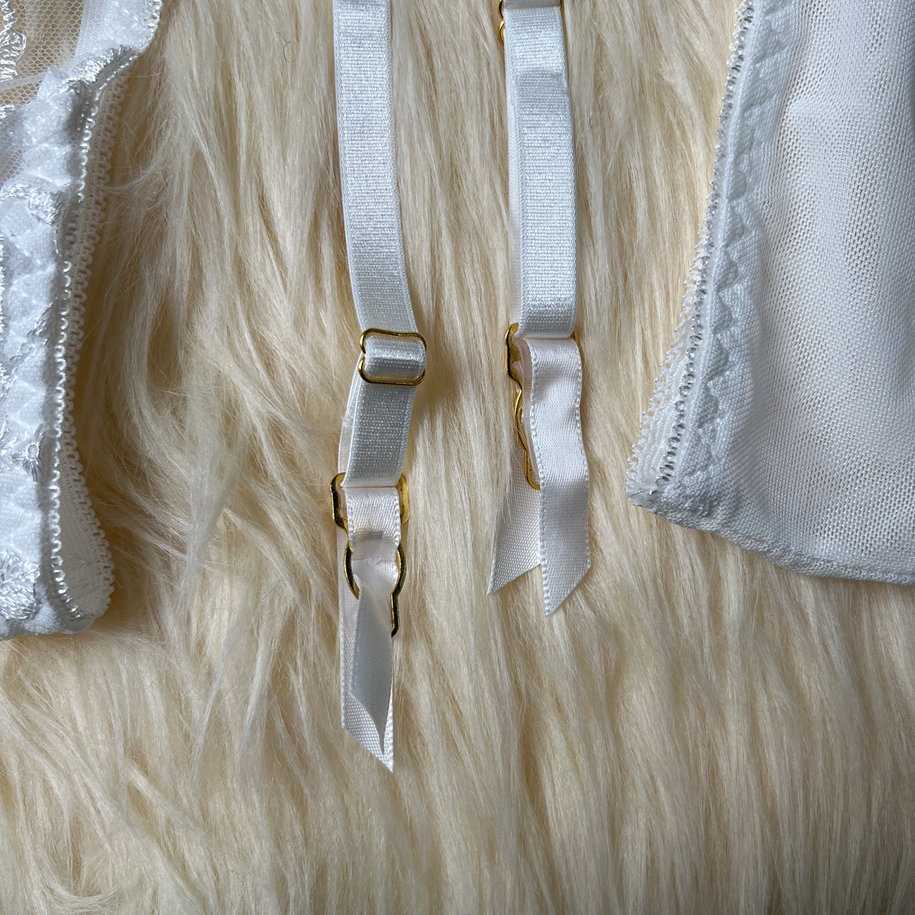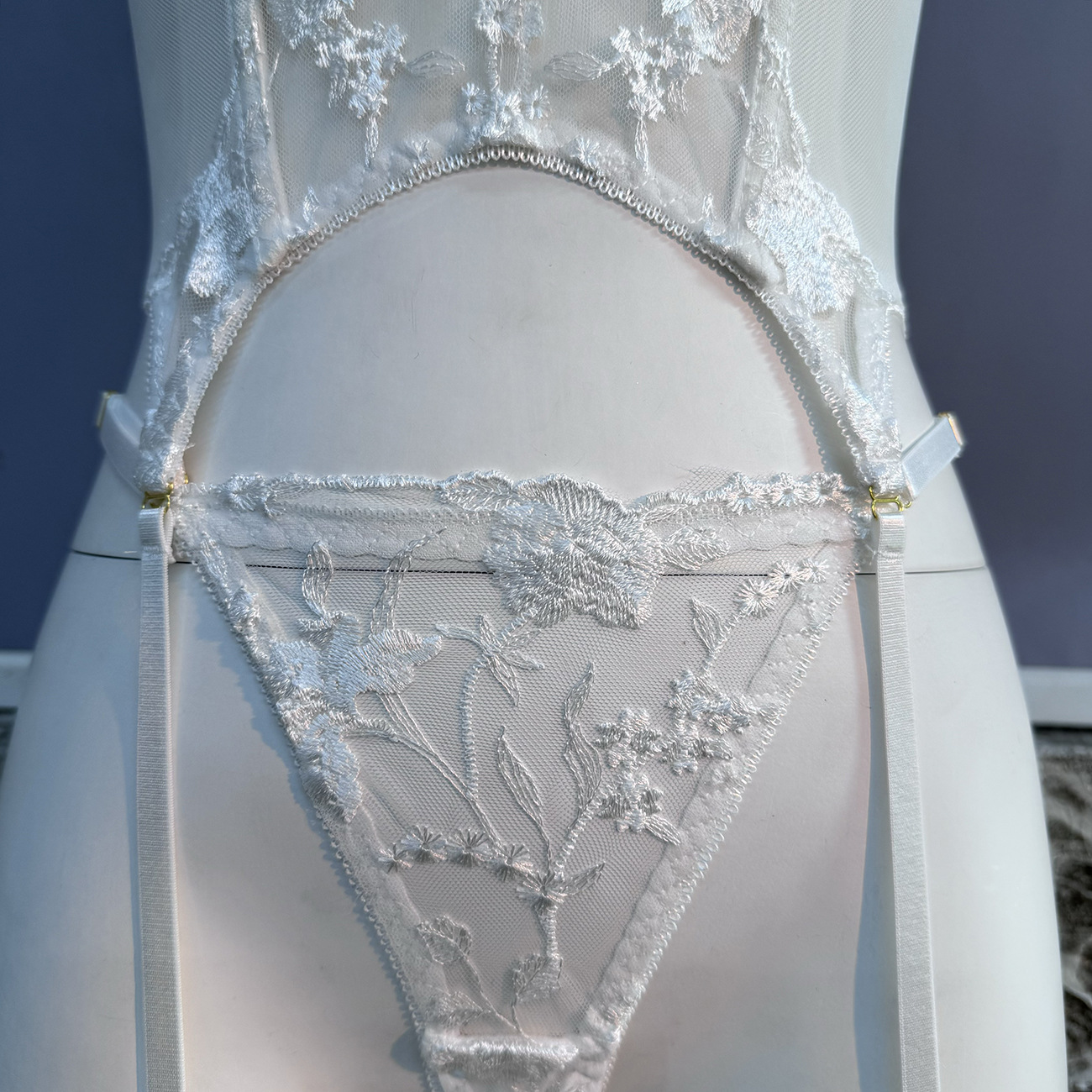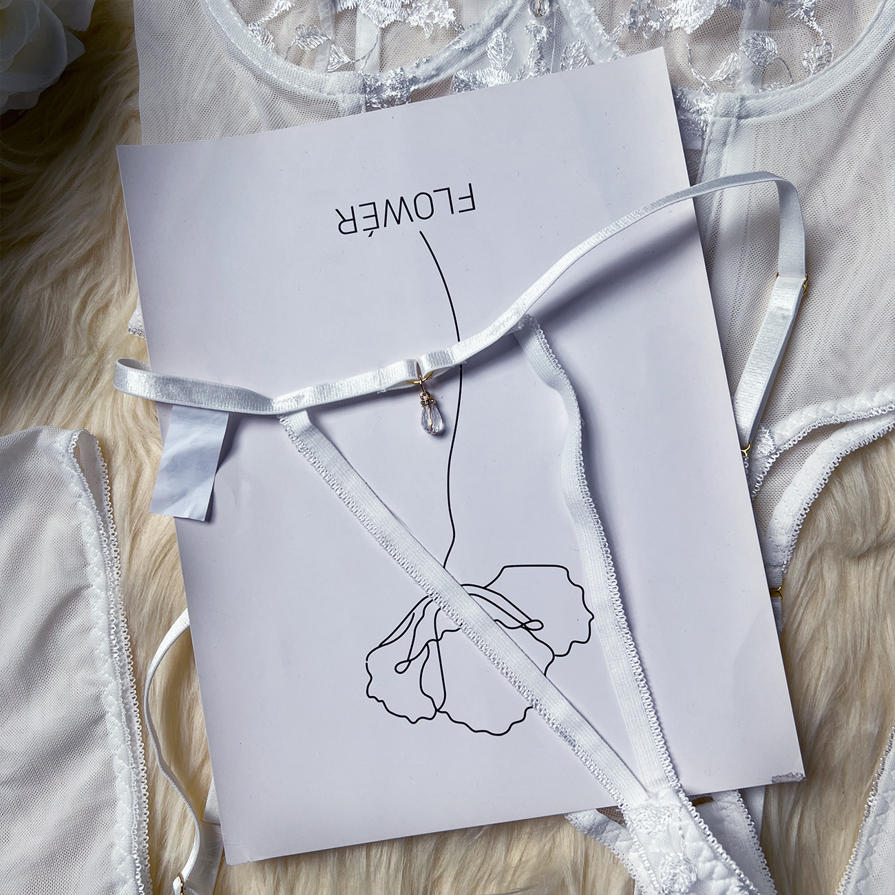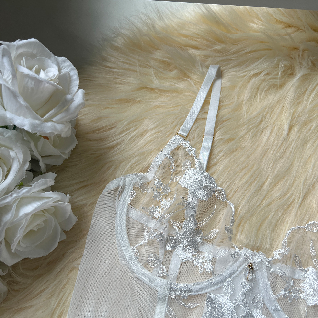 freedombeauty|Popular Sexy Temptation Mesh Heavy Industry Embroidery Mesh 3-piece Bra Set