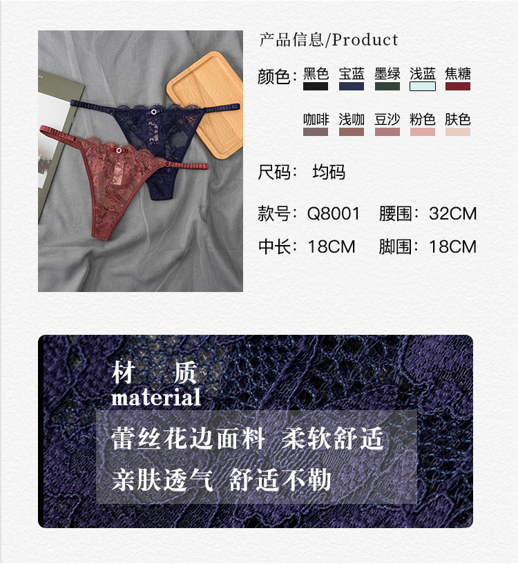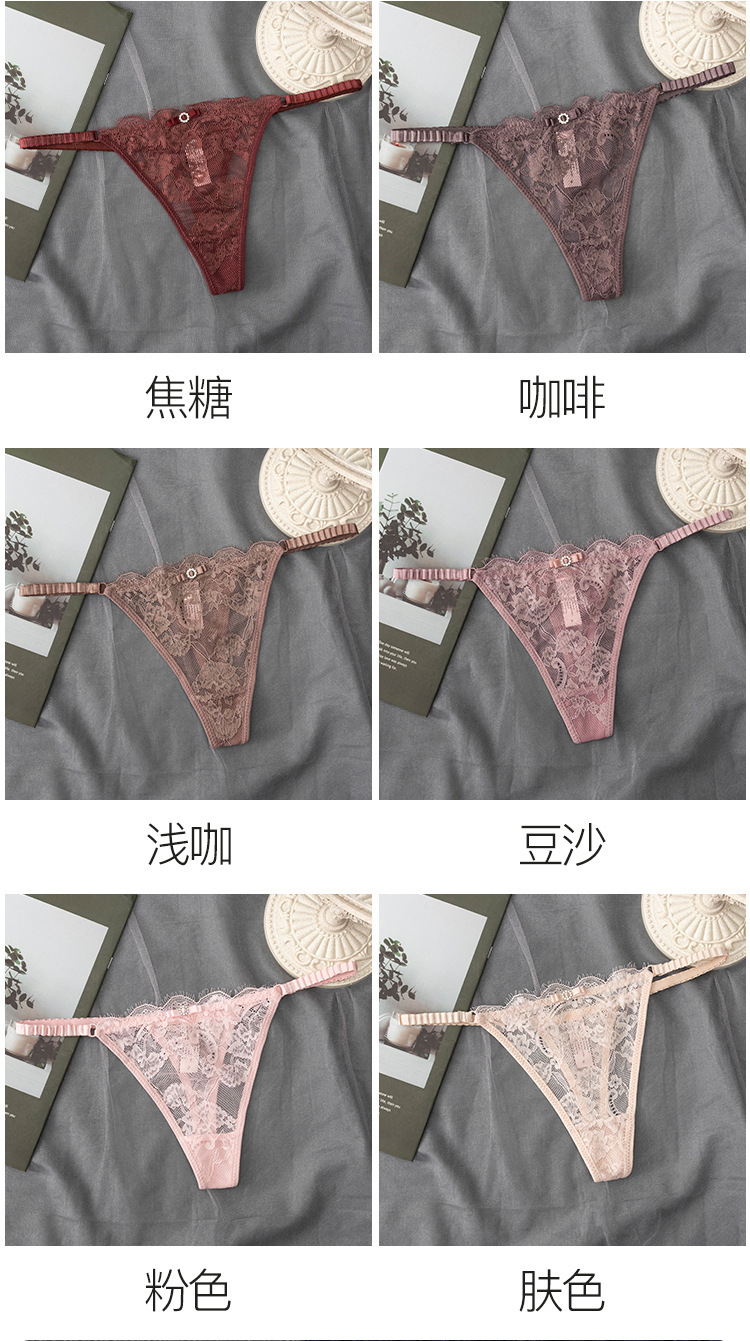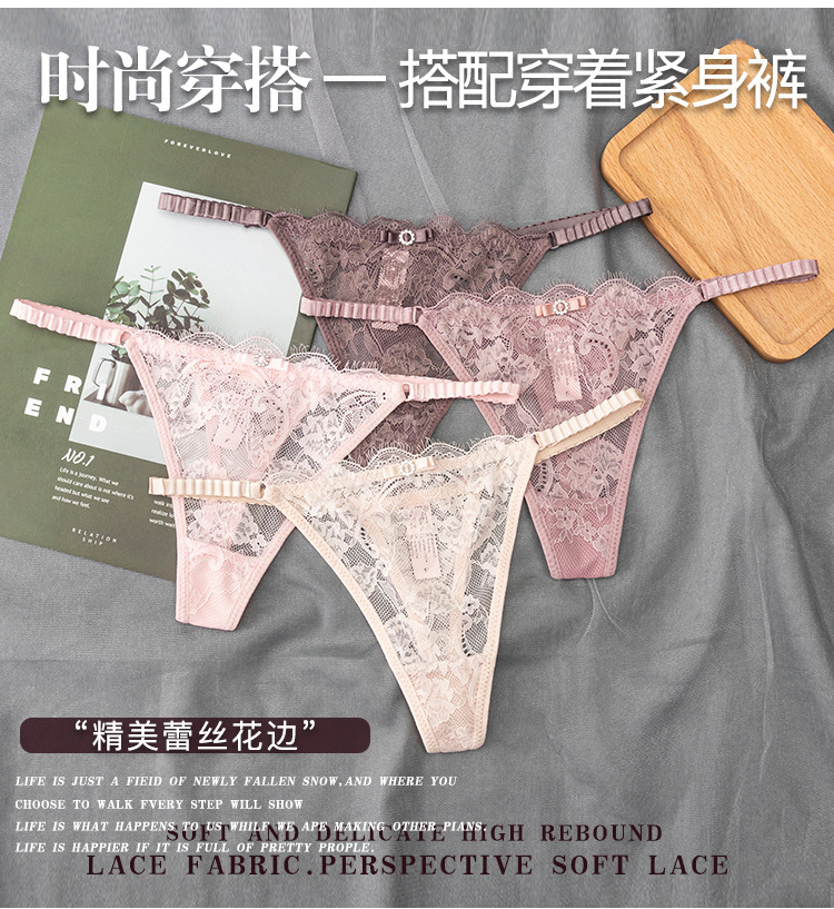 FREEDOMBEAUTY | Sexy lace edge hollow thong female hottie sports breathable embroidery peach hip T pants wholesale