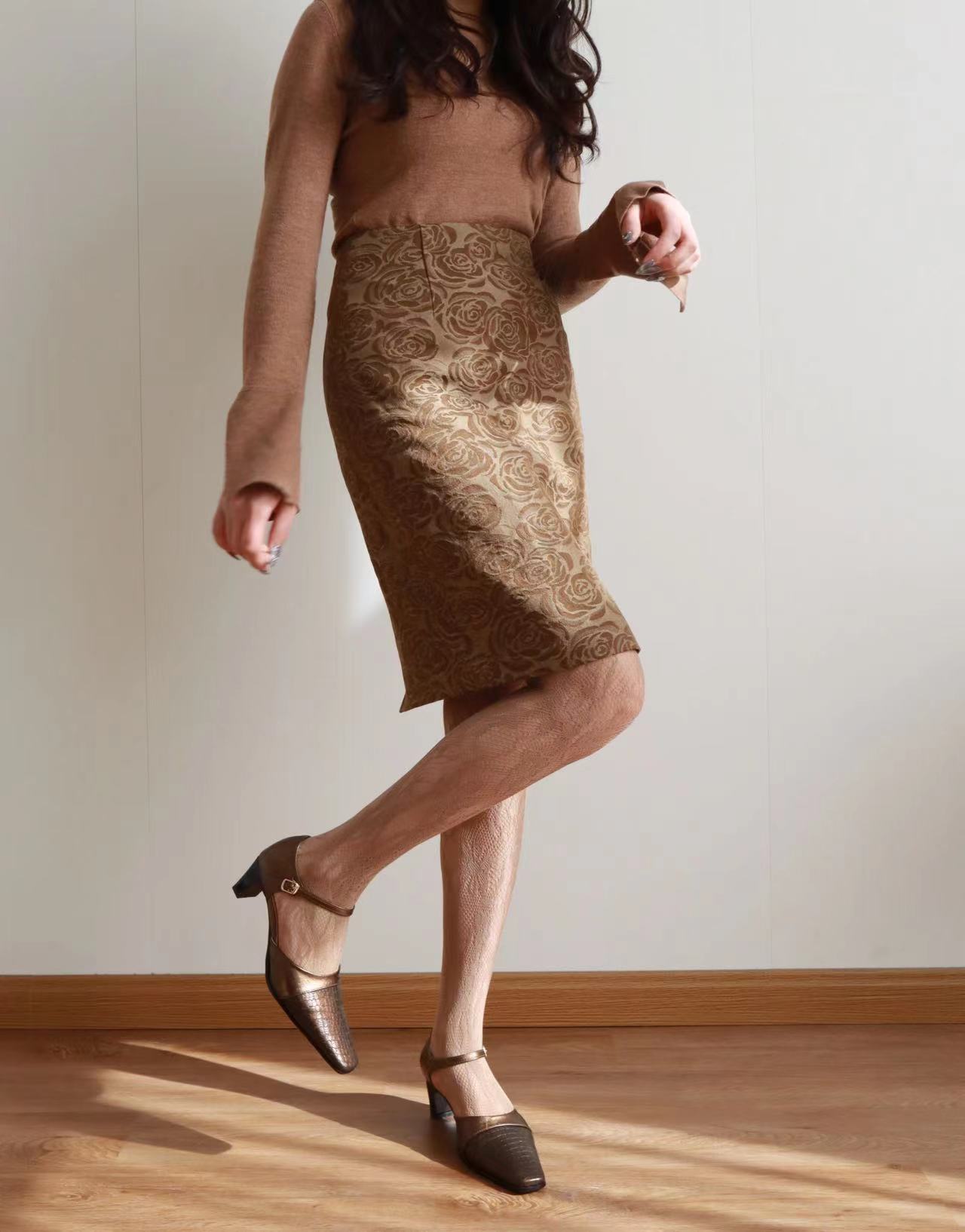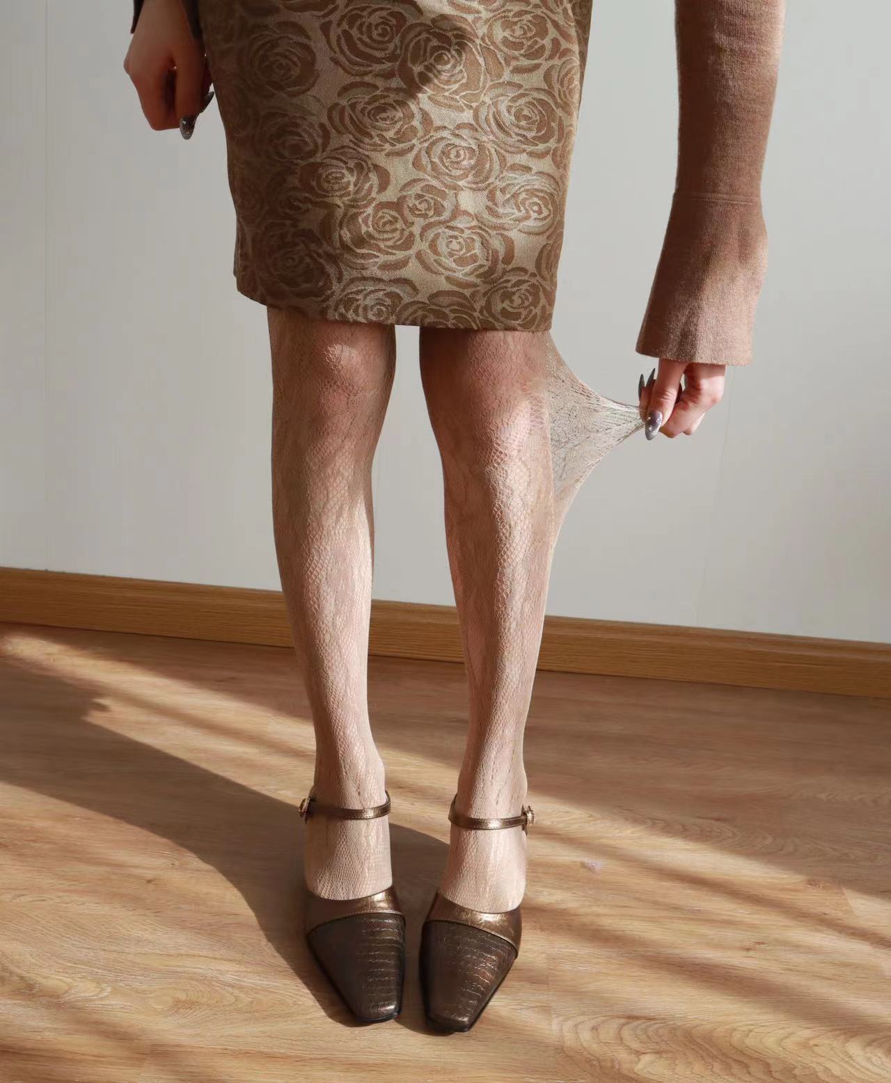 FREEDOMBEAUTY | Spring/Summer 2024 New Vintage French Flower Rose Bouquet Coffee Mesh Socks Jacquard Pantyhose Hollow Brown