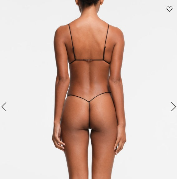 FREEDOMBEAUTY | T223 SKIMS Lace Low Waist Thong Women's T Black Elastic Ultra-thin Cross-Border Bikini Three-Point Sex