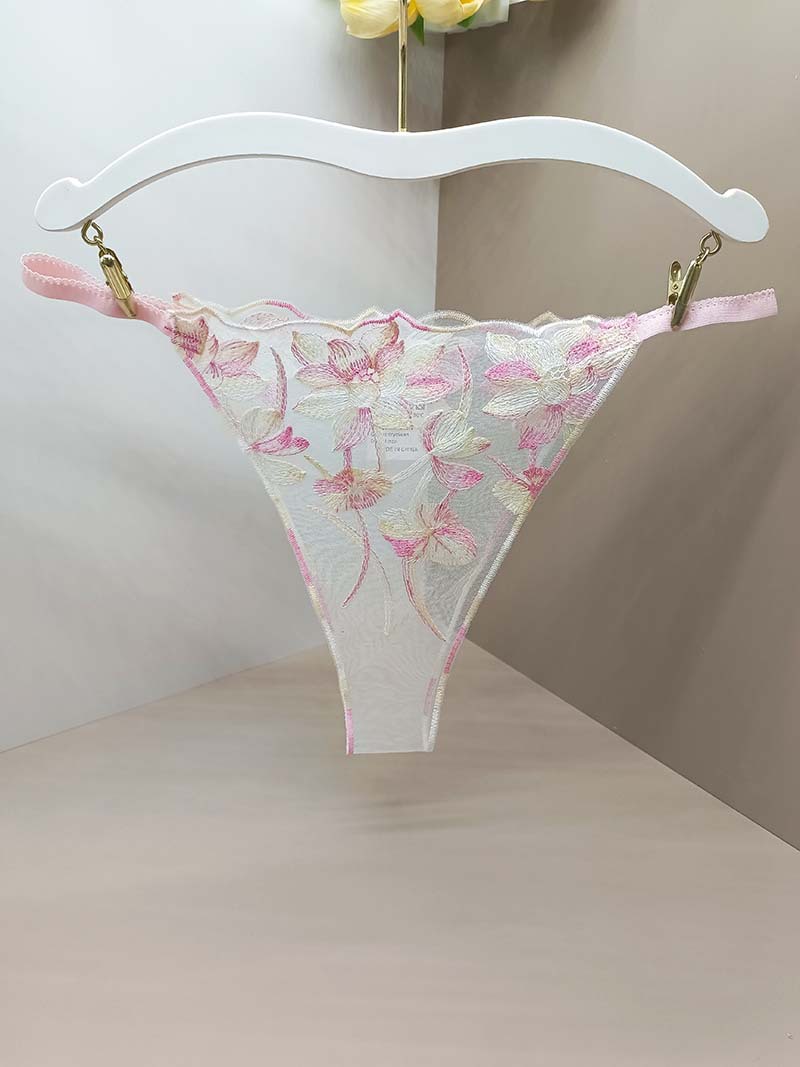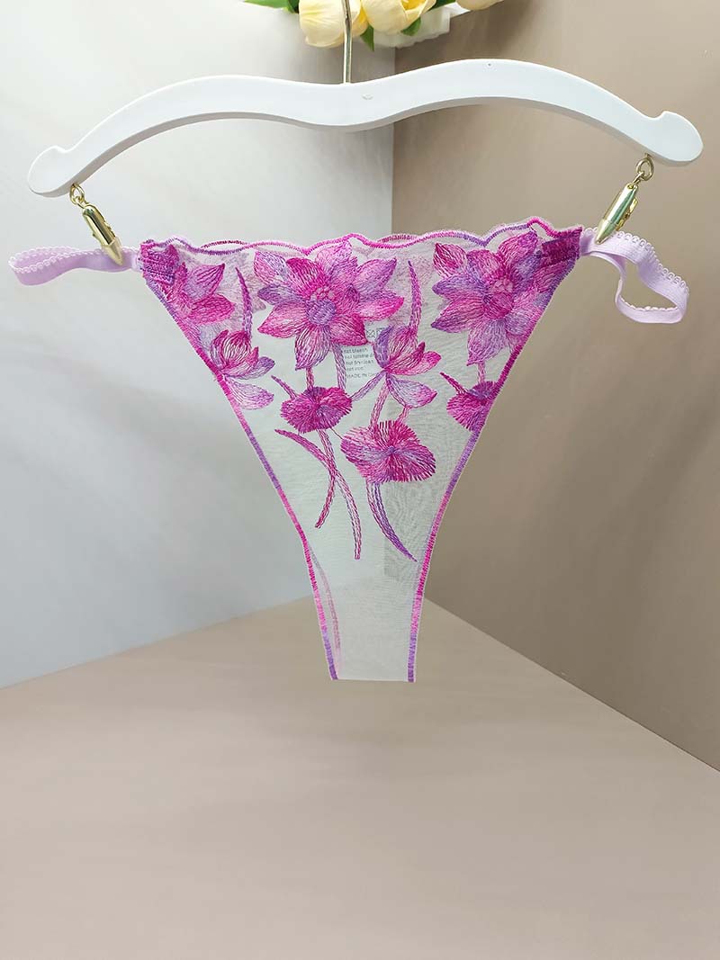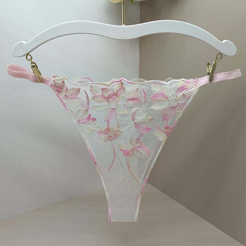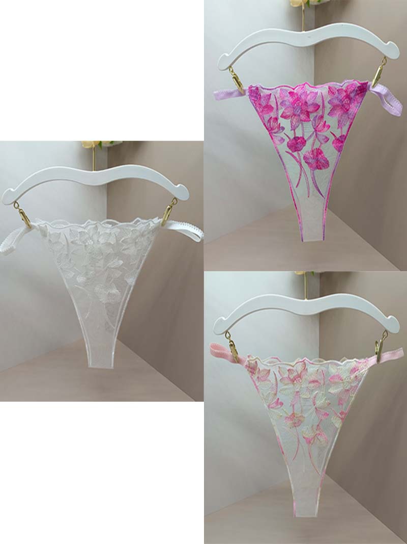FREEDOMBEAUTY | Thong French Sexy Flower Transparent Ladies Lace Fixed Embroidered Panties Cross-Border Code Special Combination T-Pants