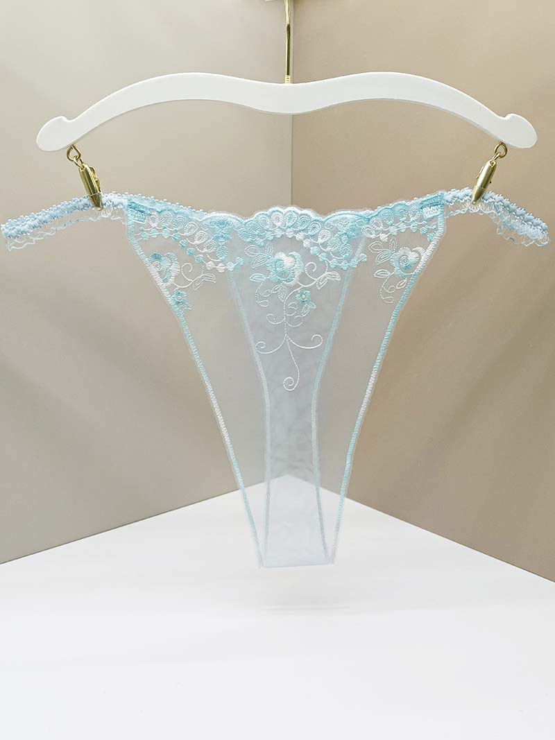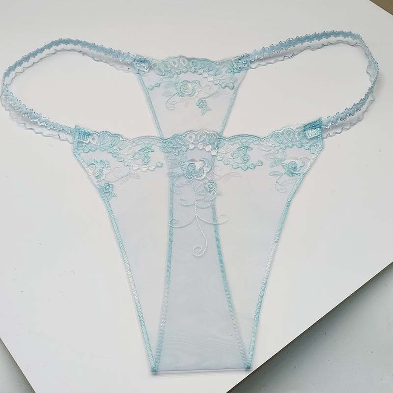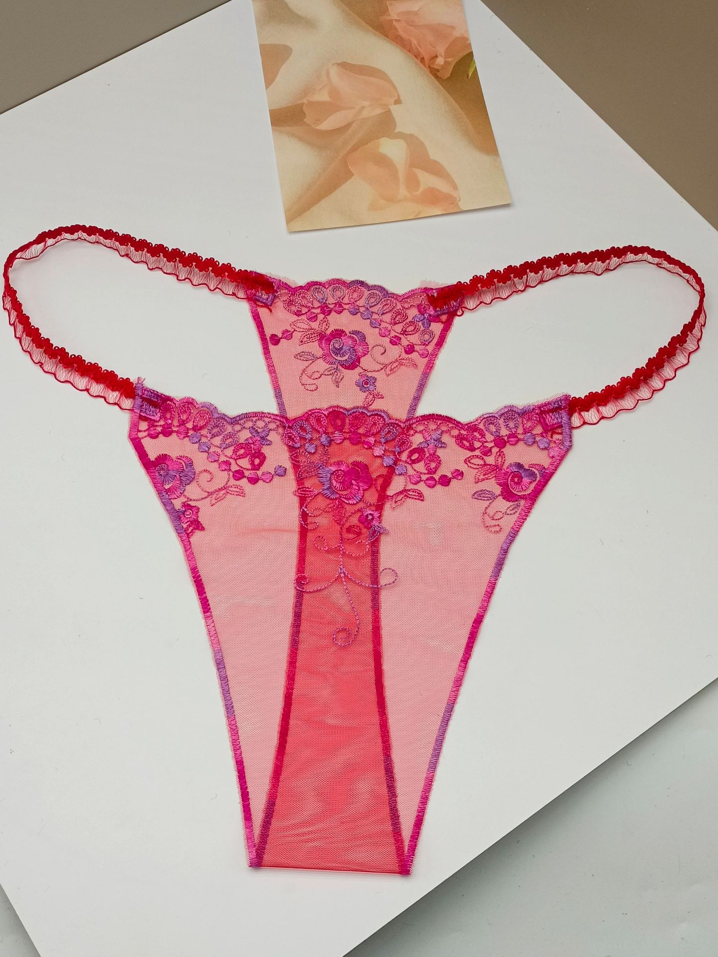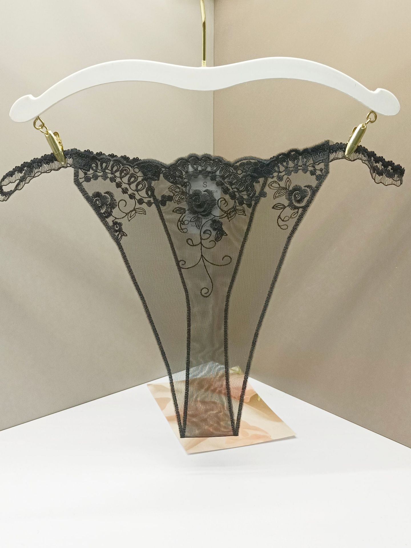 FREEDOMBEAUTY | Three-color mesh women's sexy rose embroidered thong transparent crotchless light t-word pants cross-border