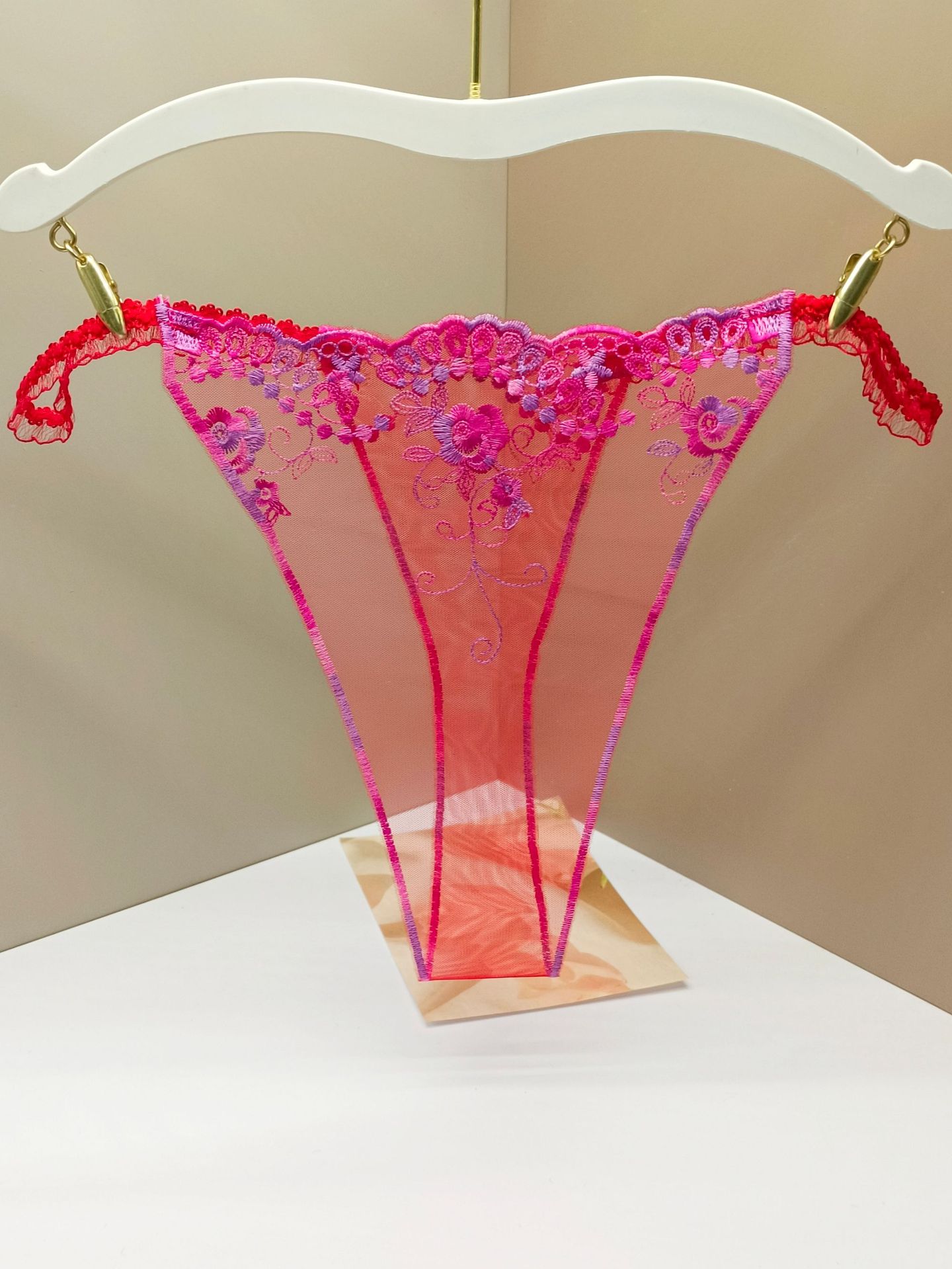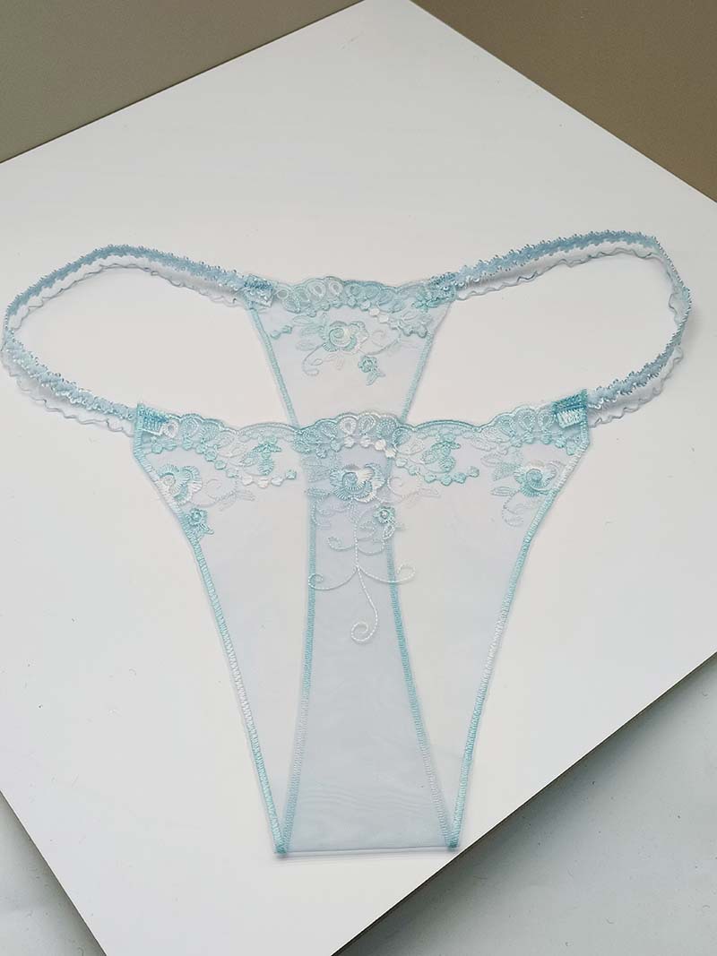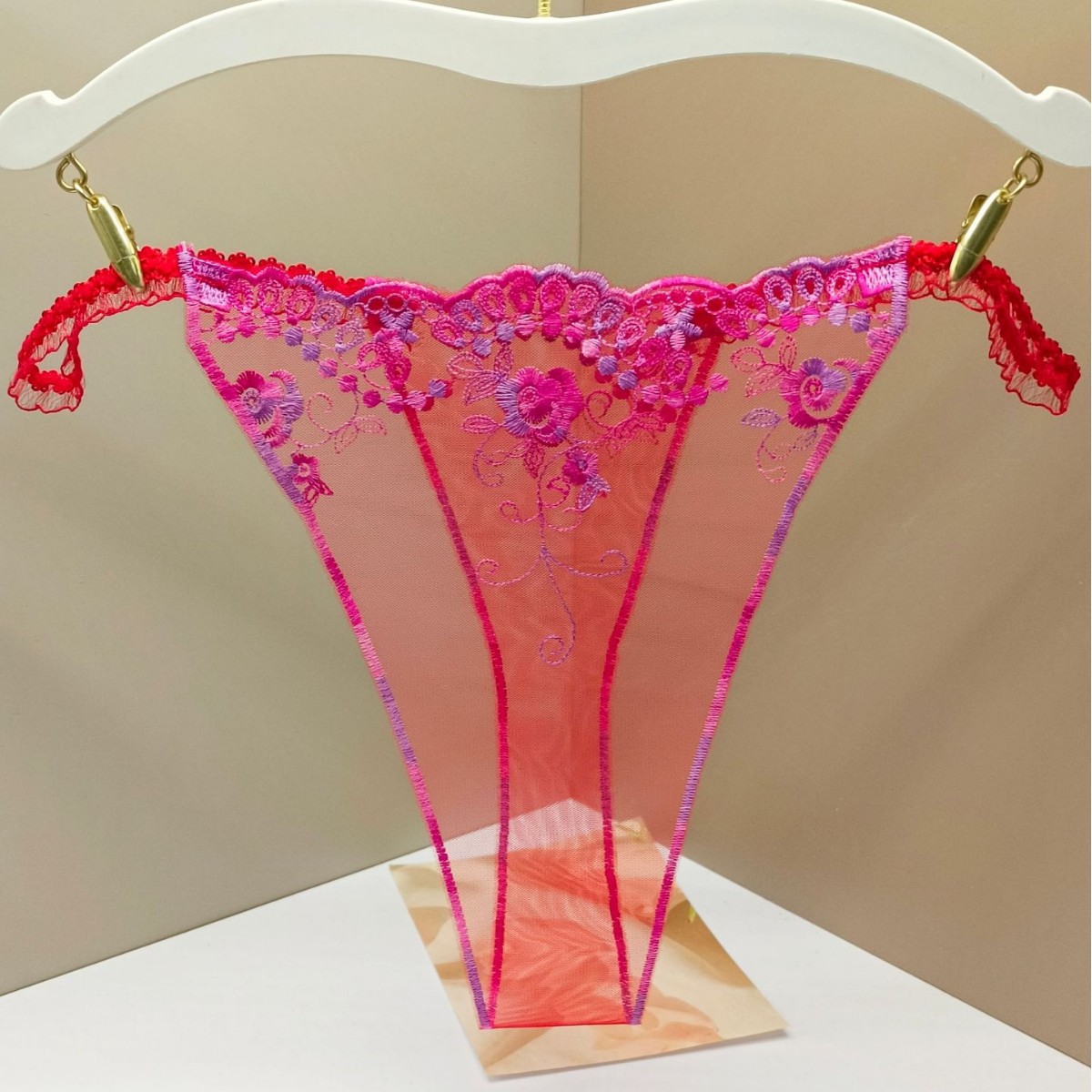 FREEDOMBEAUTY | Three-color mesh women's sexy rose embroidered thong transparent crotchless light t-word pants cross-border