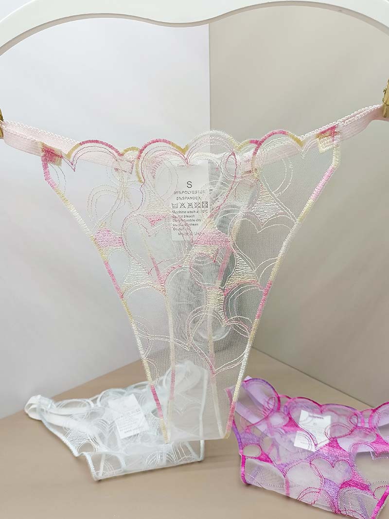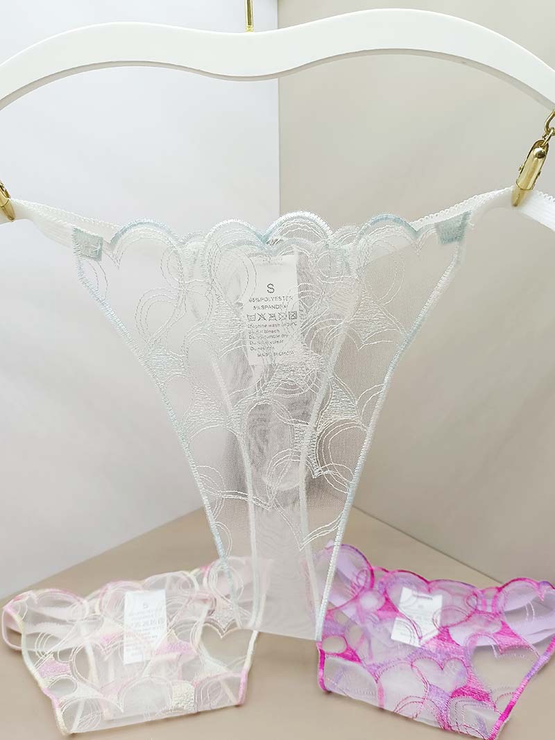 FREEDOMBEAUTY | Three-piece perspective mesh embroidery sexy lace sex thong panties love wrap embroidery cross-border