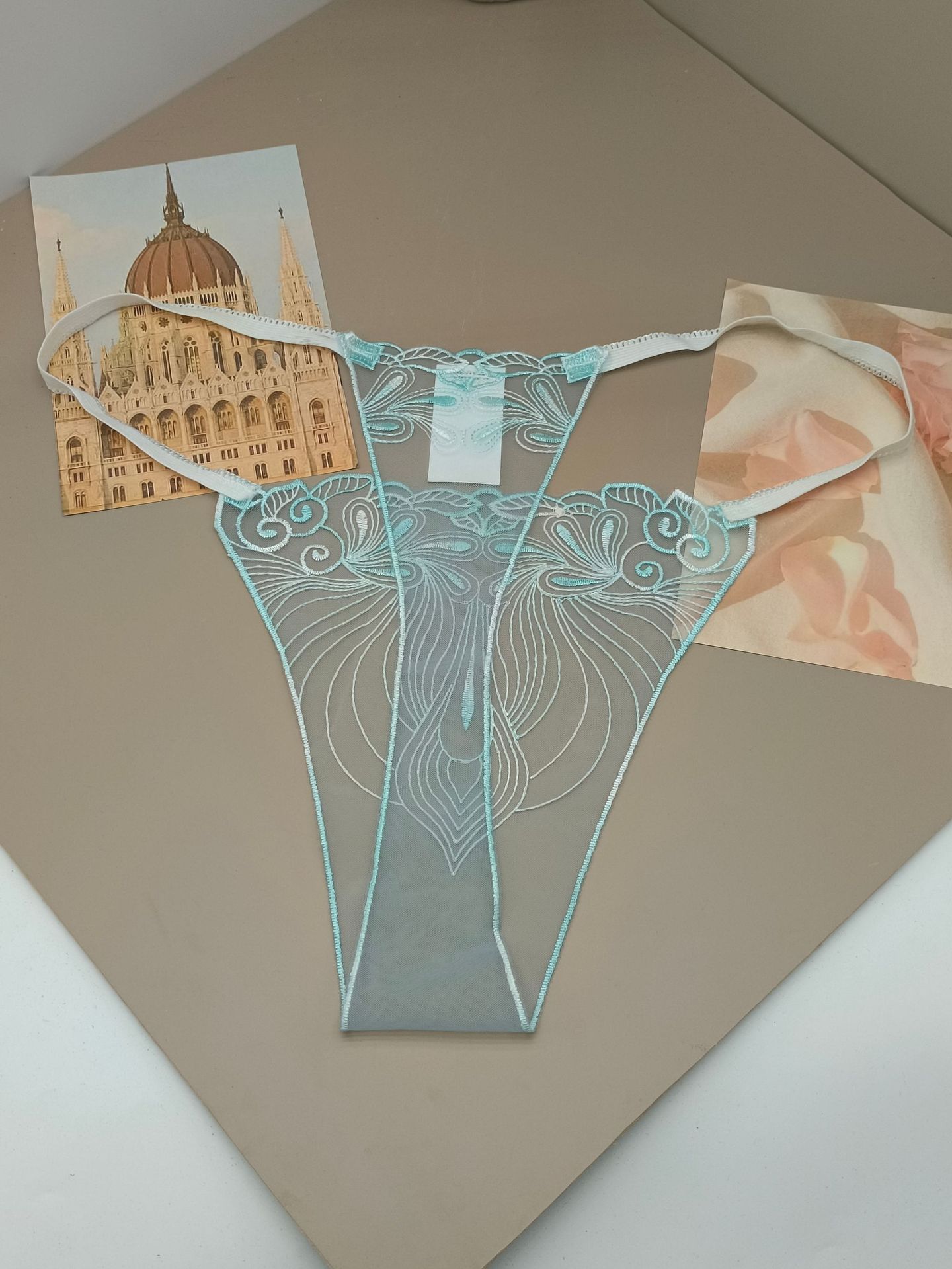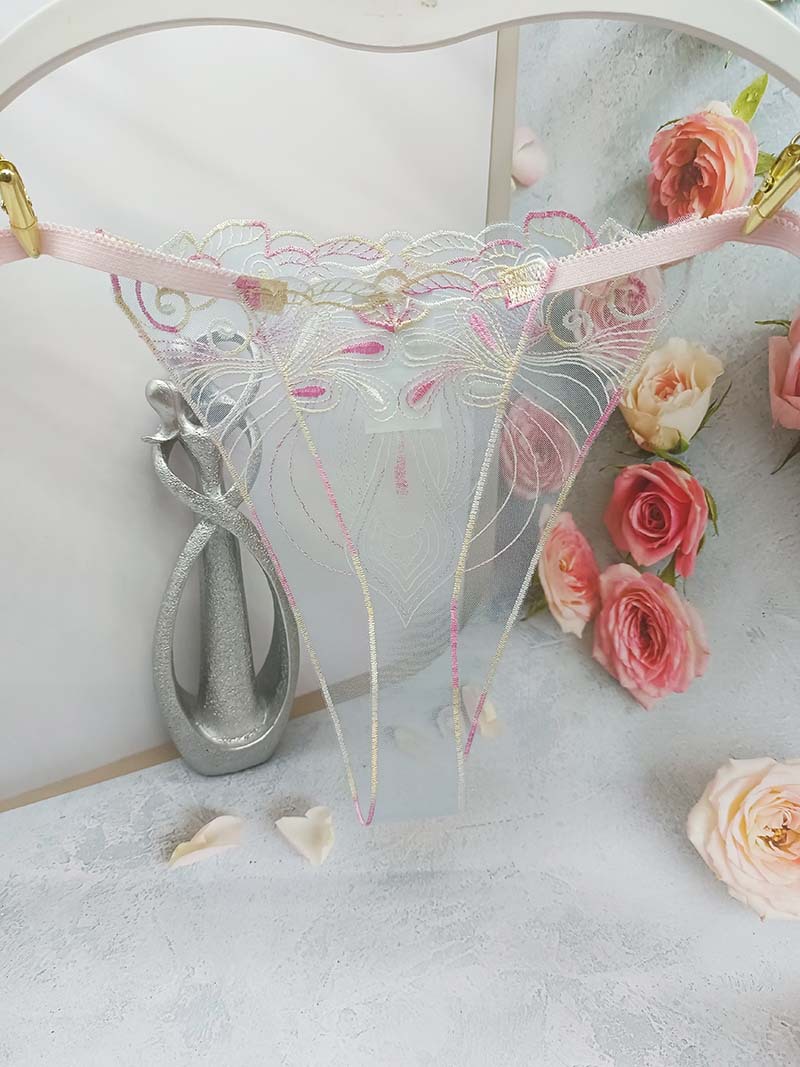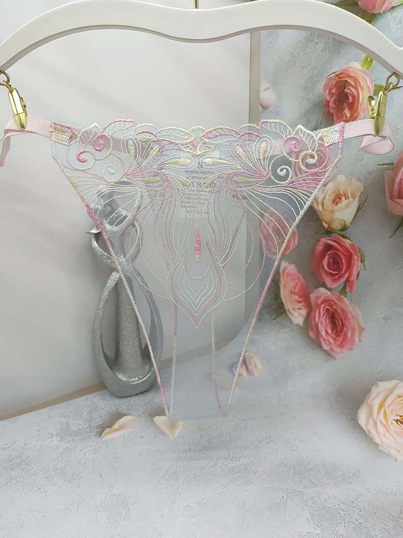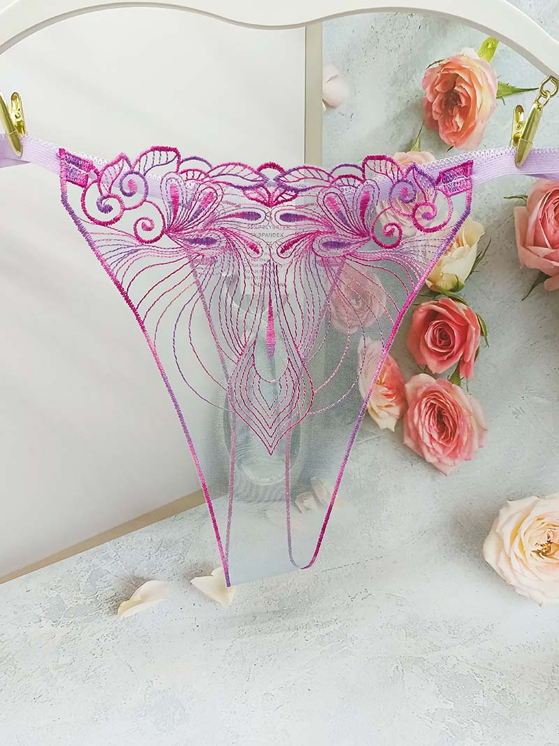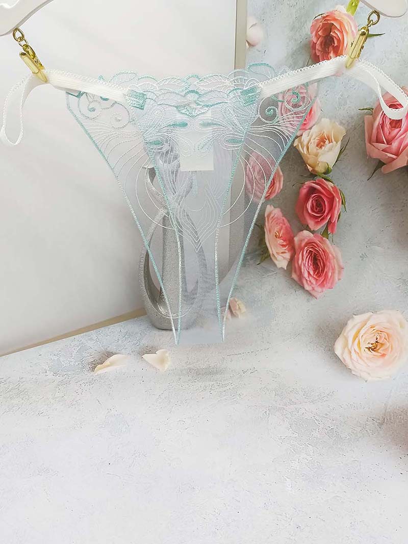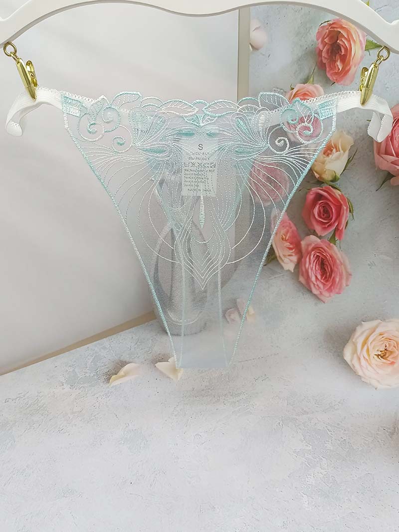 FREEDOMBEAUTY | Transparent mesh embroidery sexy perspective light women's sexy thong three-color optional pattern embroidery cross-border