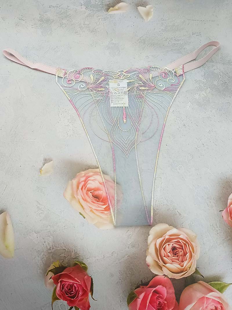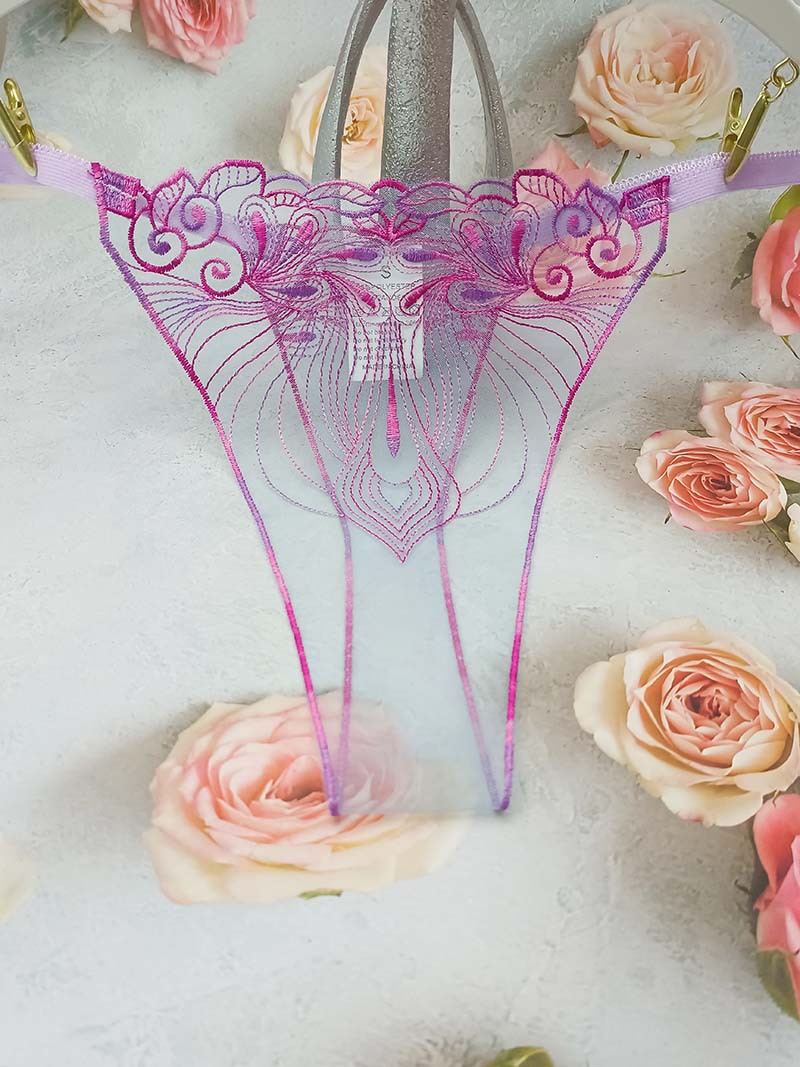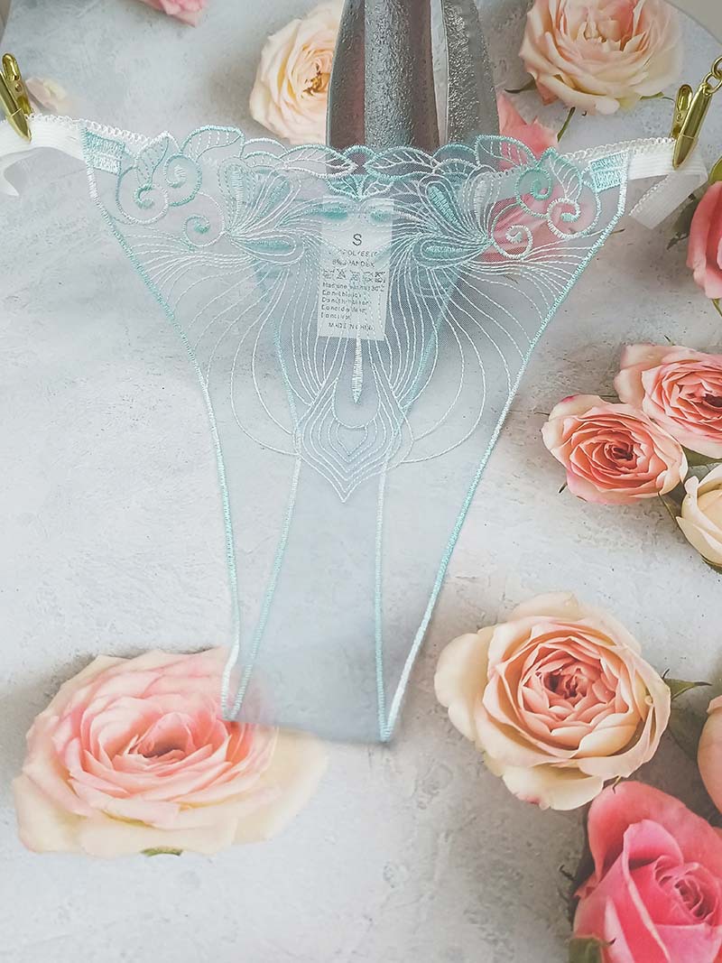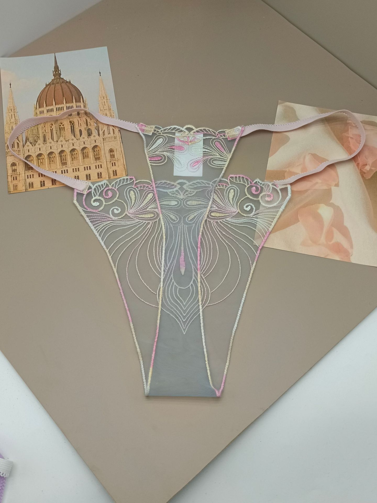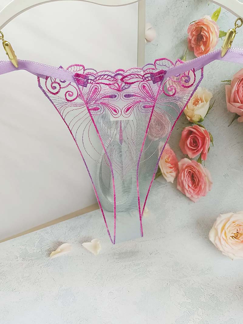 FREEDOMBEAUTY | Transparent mesh embroidery sexy perspective light women's sexy thong three-color optional pattern embroidery cross-border