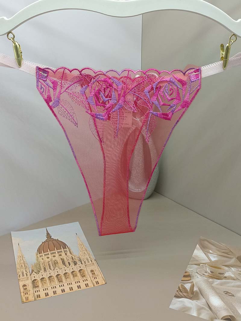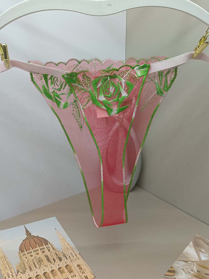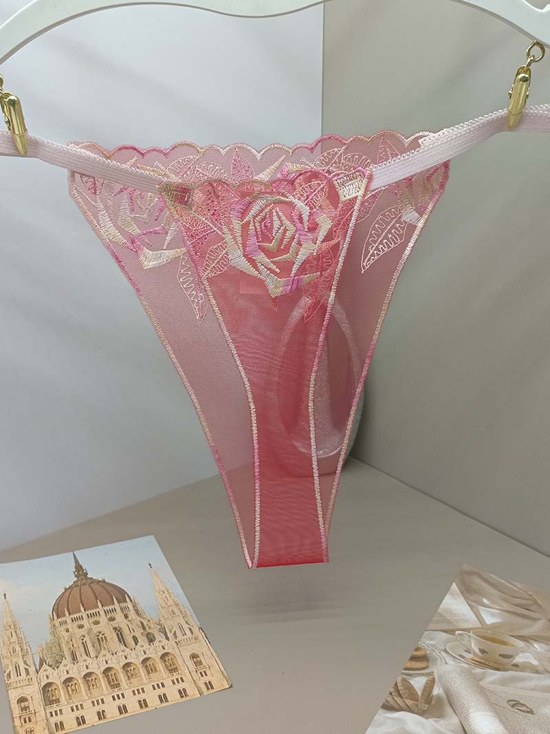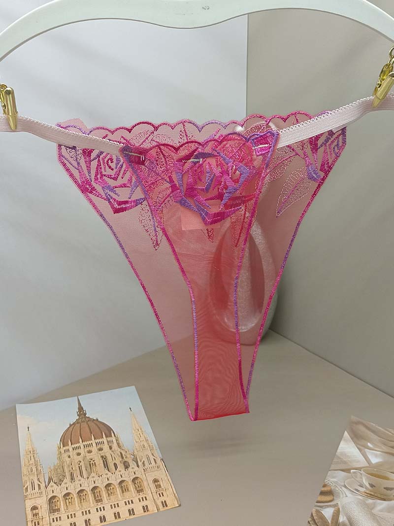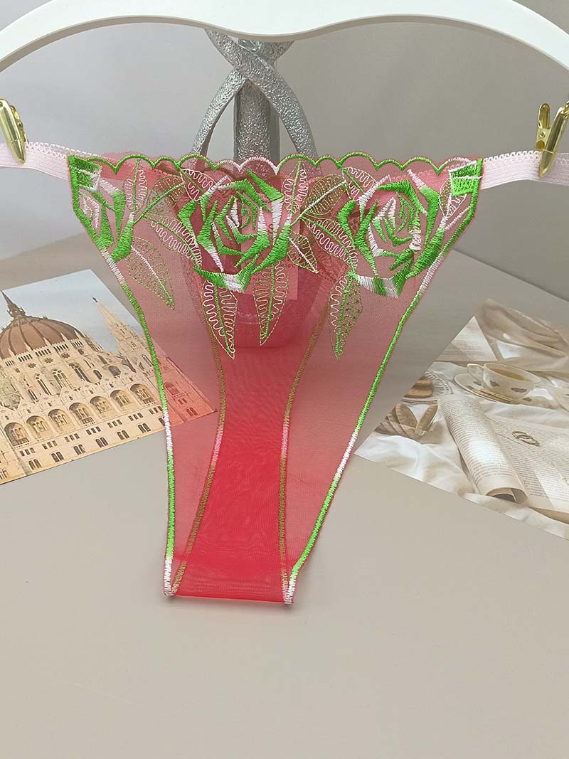 FREEDOMBEAUTY | Transparent red mesh embroidery hollowed-out sexy women's sex thong t-pants flower embroidery perspective panties cross-border
