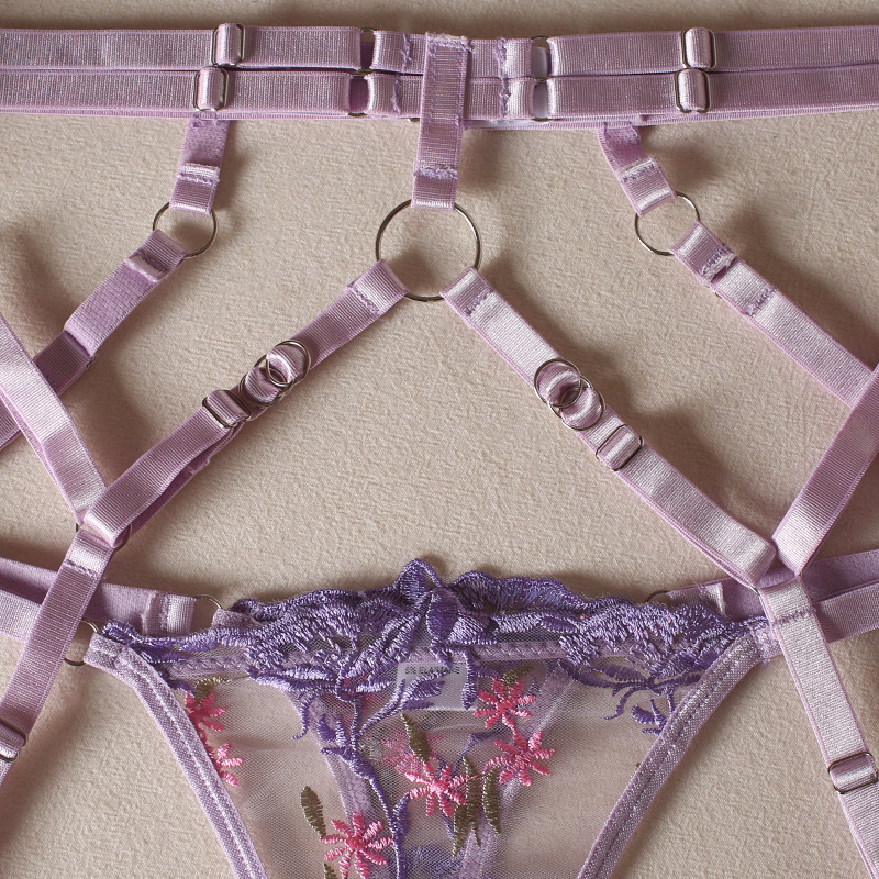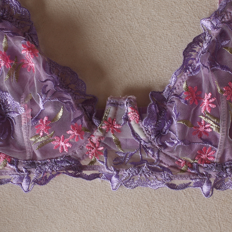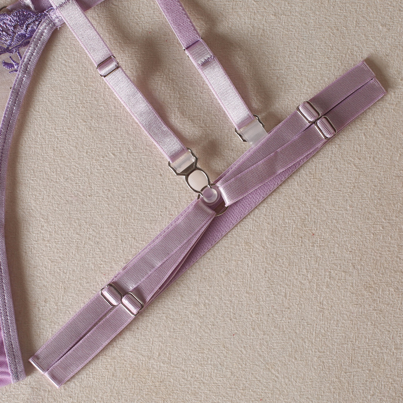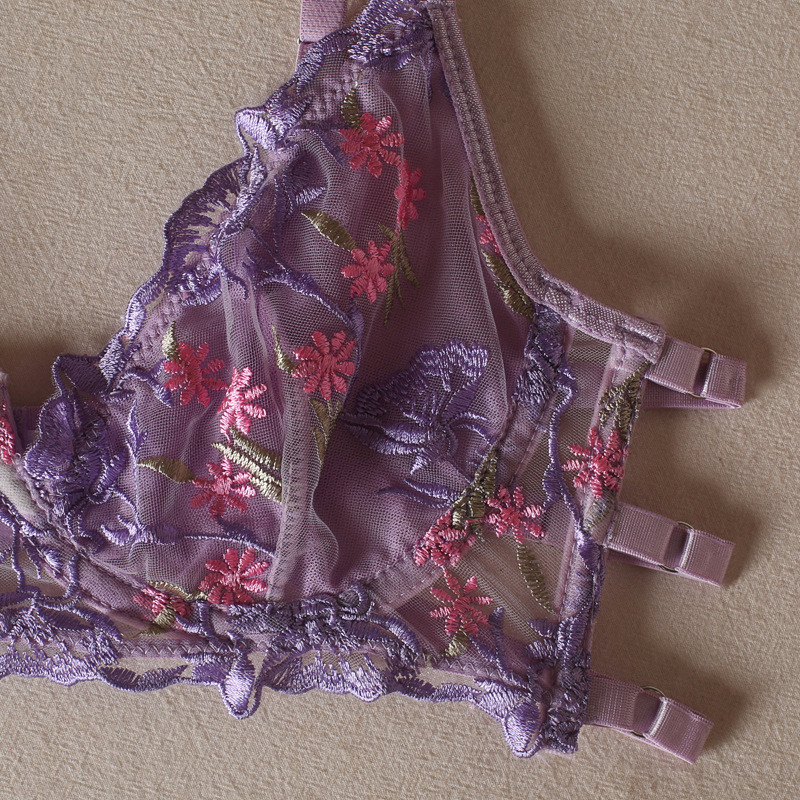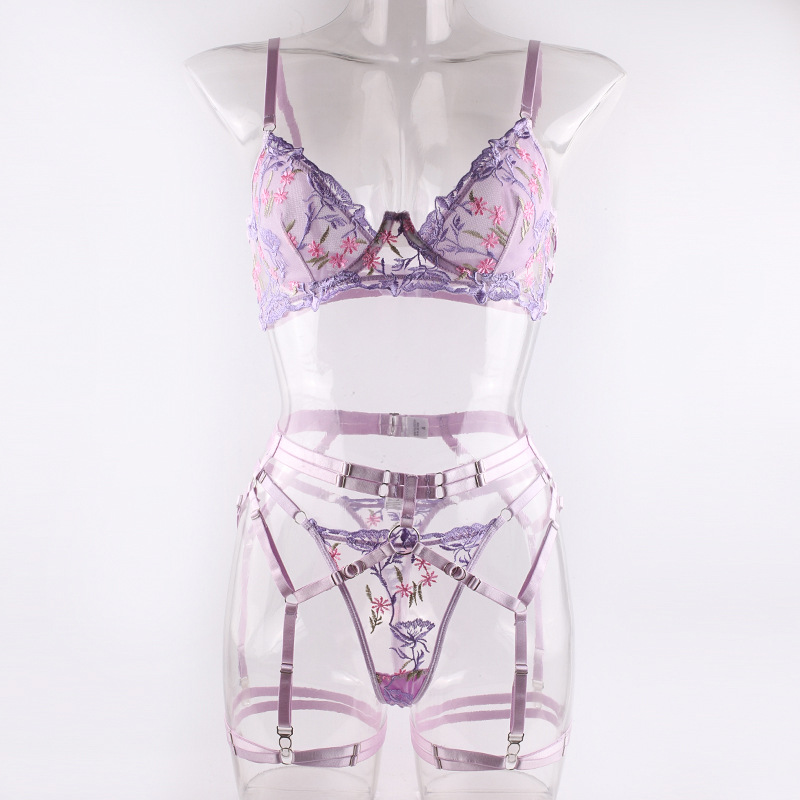 FREEDOMEBEAUTY | European and American popular AliExpress Amazon cross-border new product embroidery bra set Perspective sexy underwear three-piece women's set