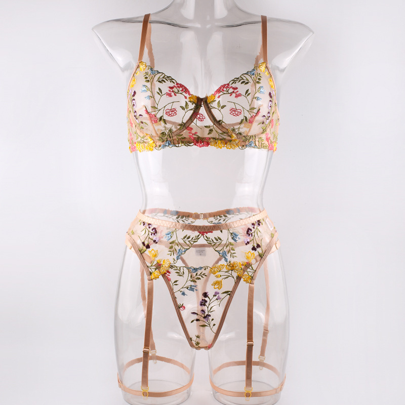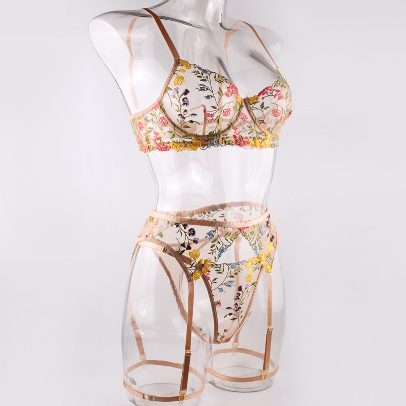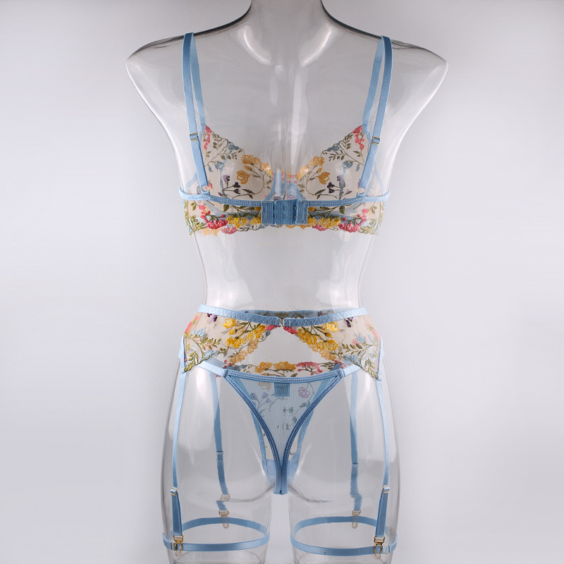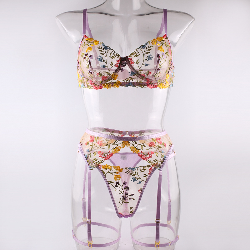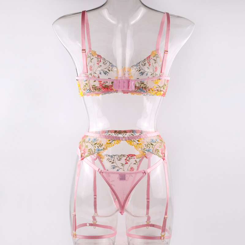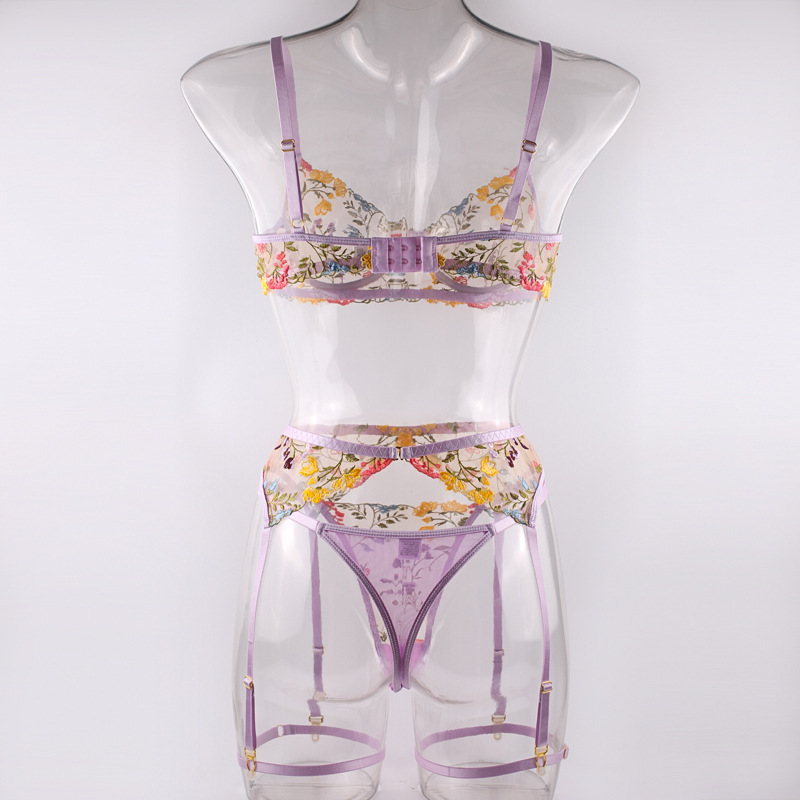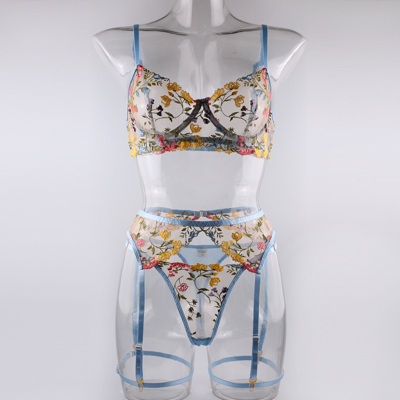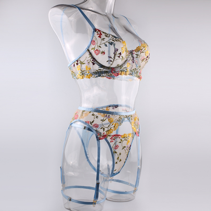 FREEDOMEBEAUTY | European and American three-point exposed milk hollow garter belt perspective package adjustable suspender sexy underwear leg rope waist rope set